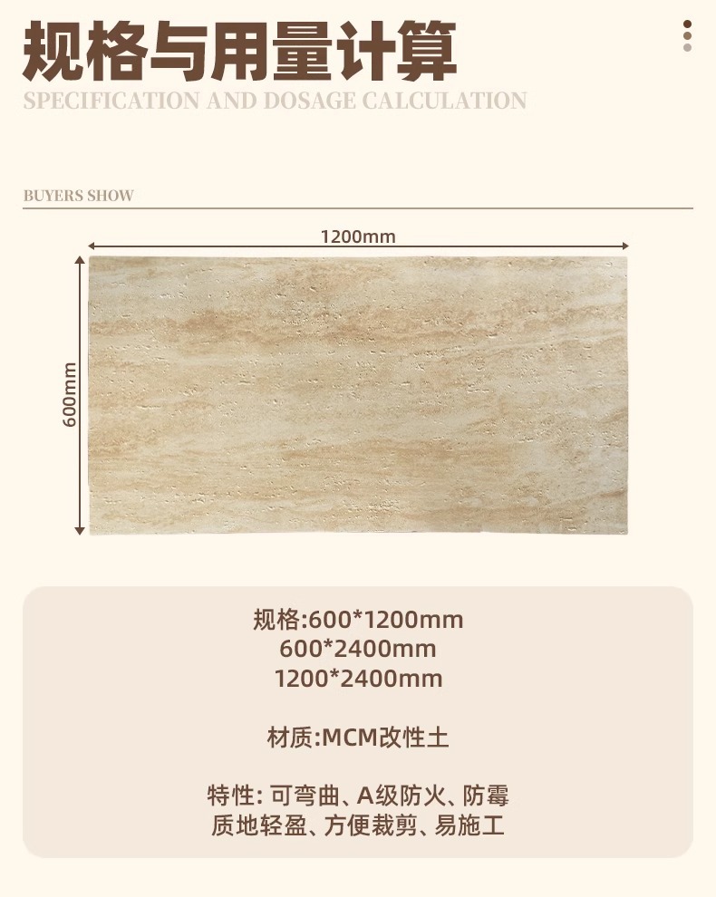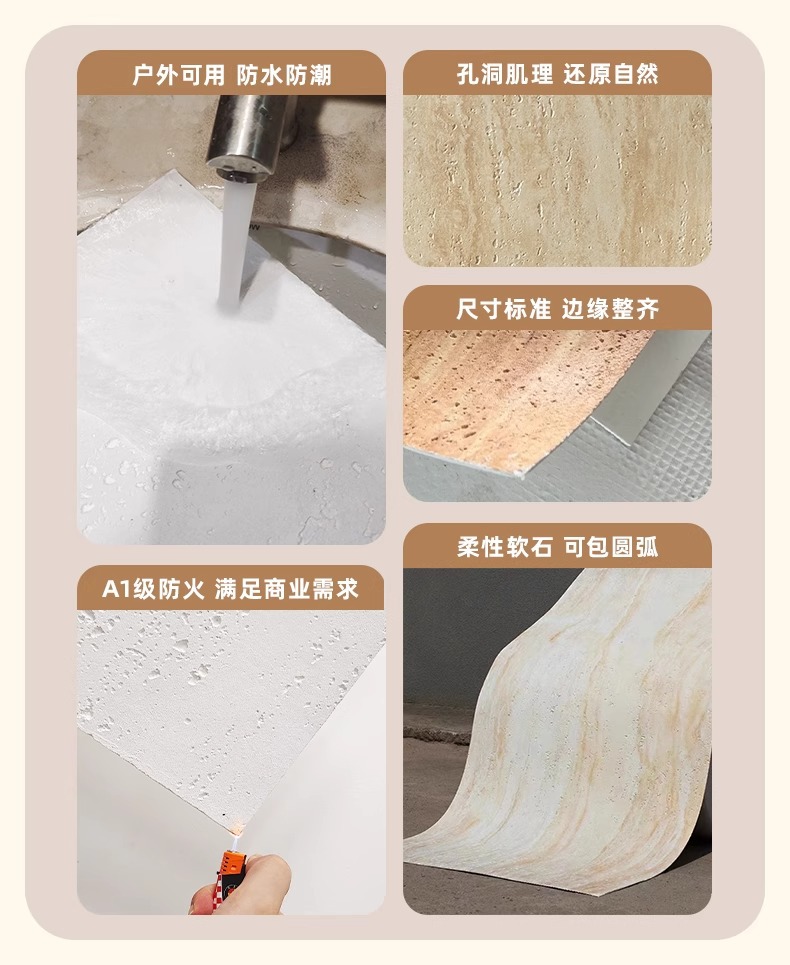 Plato de travertino de piedra blanda Tapones romanos Porcelana blanda Piedra de imitación suave Decoración de pared exterior Fabricante de baldosas de cerámica flexibles ultrafinas