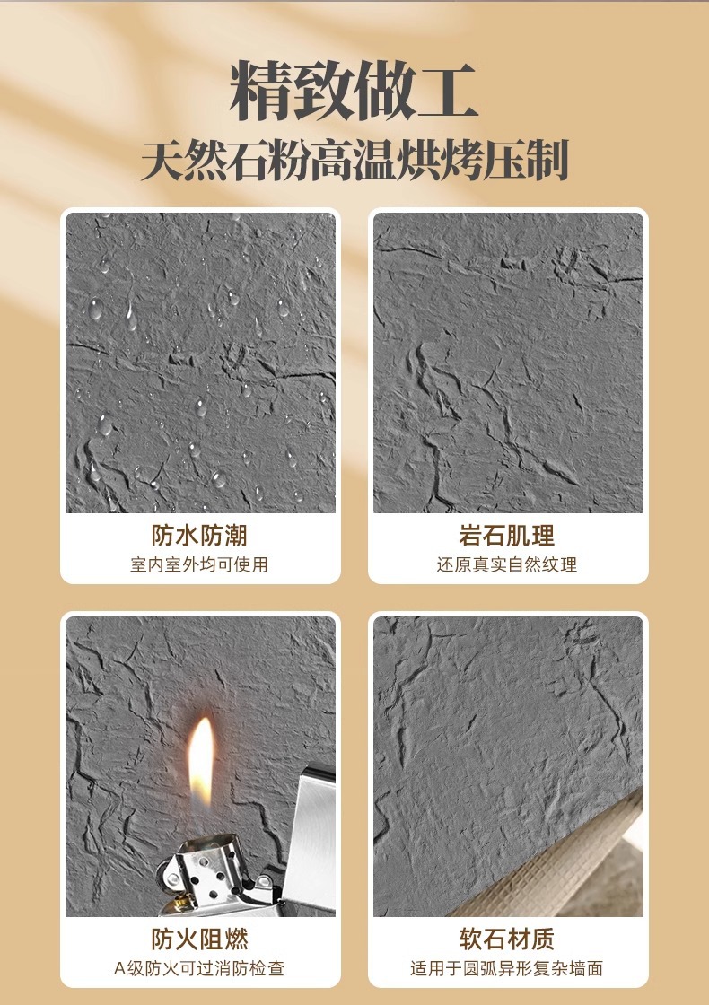 Tablero de pared de piedra de luna estrella de piedra blanda, hacha de cuero de imitación de piedra, porcelana blanda de piedra flexible ultrafina, granito de superficie rugosa, placa de roca Ying'an