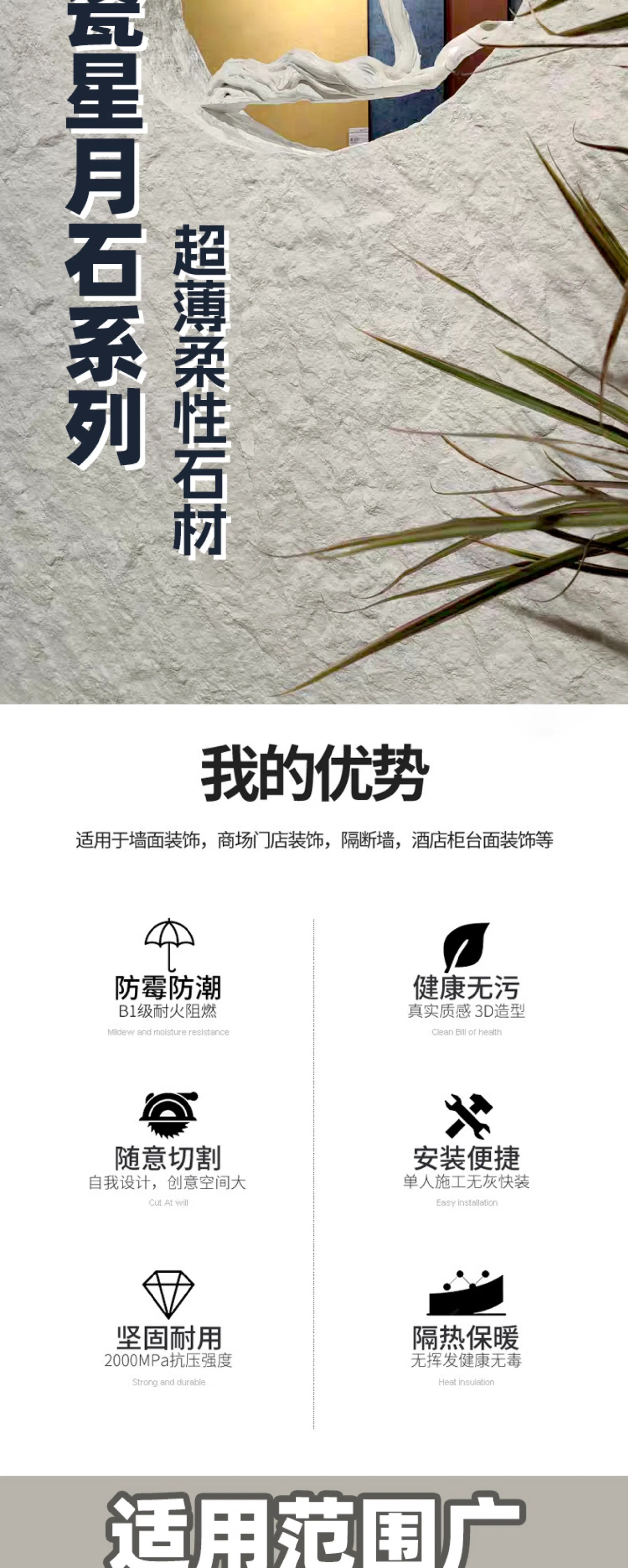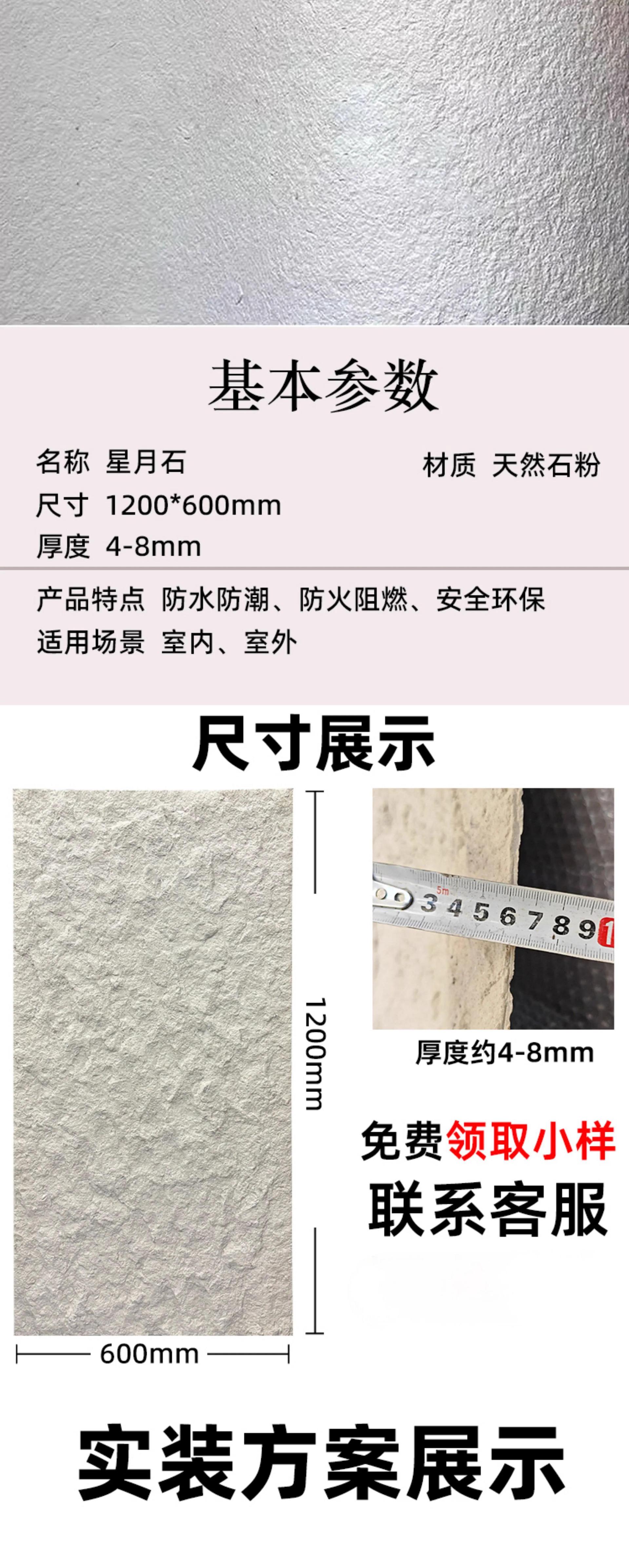 Piedra flexible Piedra de luna estrella Piedra de luna Piedra de luna blanda Tablero decorativo de pared Piedra de valle de luna La pared de fondo se puede doblar Piedra de Yingan