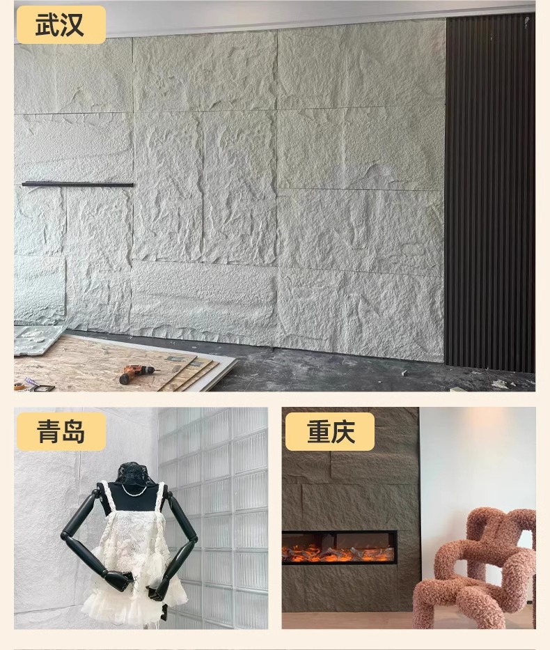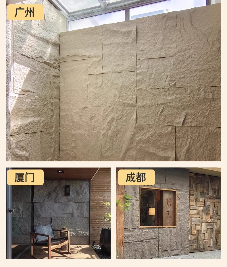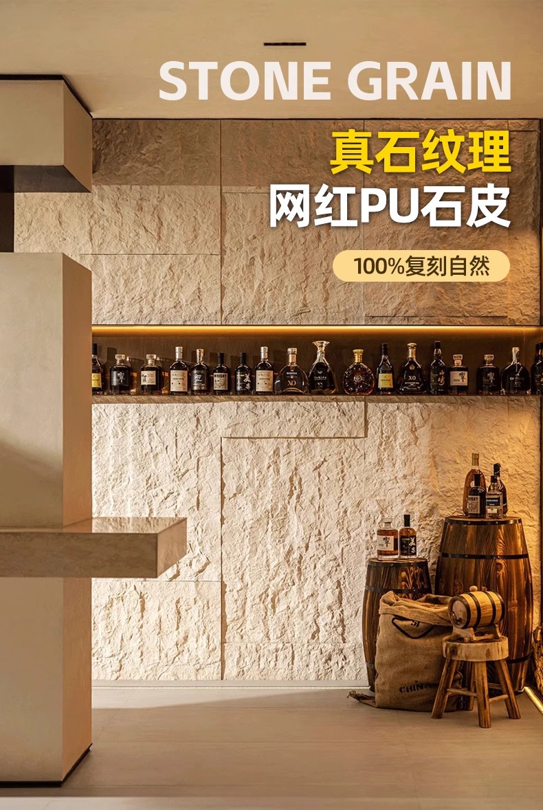 Pared de fondo de piel de piedra de pu piedra de hongo PU piedra de imitación losa de roca losa grande piedra blanda ultrafina travertino piedra cultural ladrillo de pared exterior