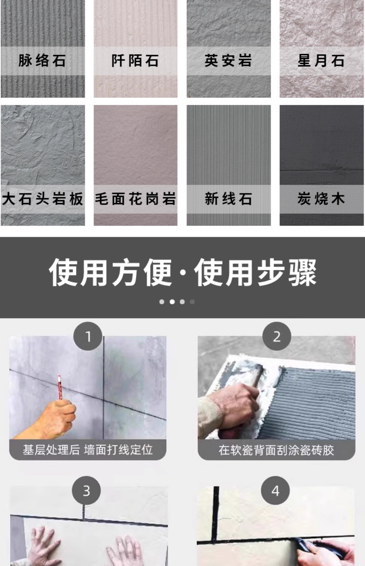 Patrón de tela de porcelana suave, estrella y luna, travertino romano, cultura blanda doblada, piedra de imitación flexible, fondo de pared interior y exterior, decoración de pared, tablero de roca