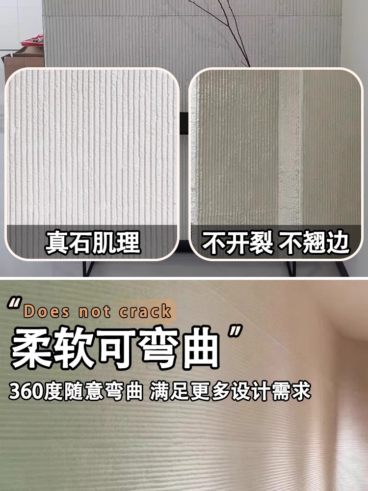 Tablero decorativo de pared de fondo de piedra de línea gruesa de piedra blanda Tablero decorativo de piedra flexible de porcelana blanda