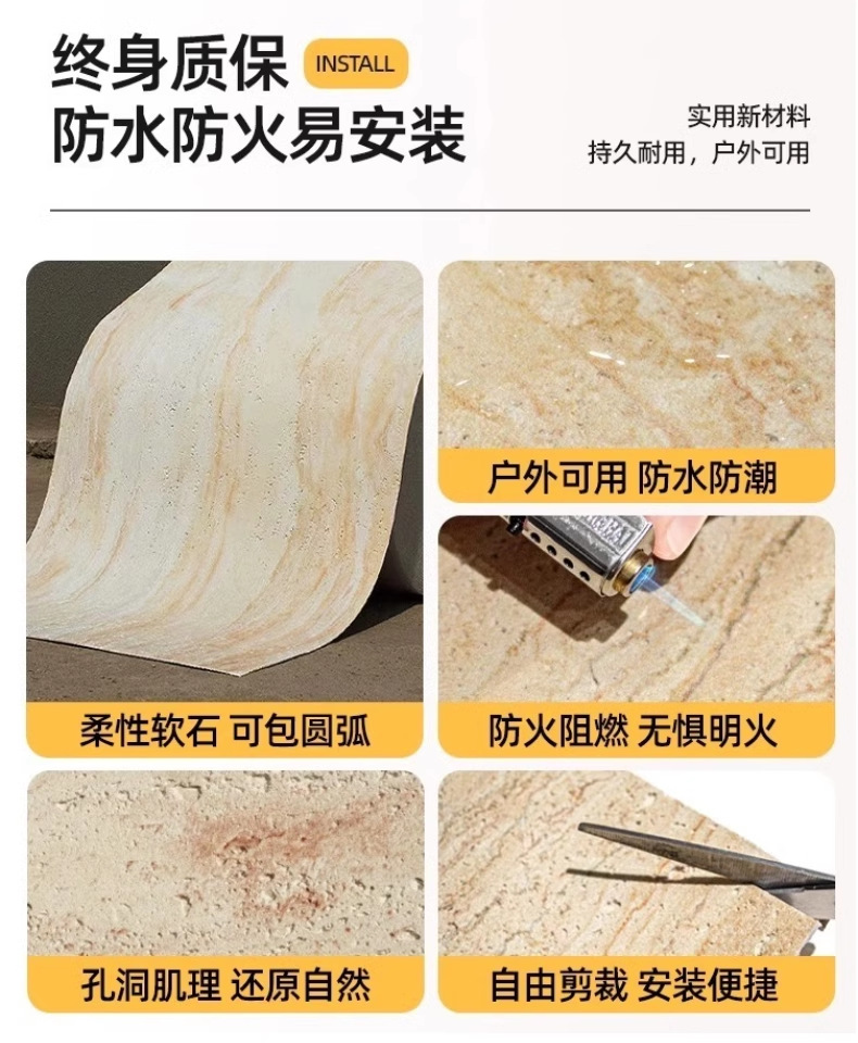 Porcelana suave Piedra flexible Tablero decorativo de travertino romano ligero Azulejos de exterior Tablero de pared de piedra Xingyue Panel decorativo de piedra de imitación