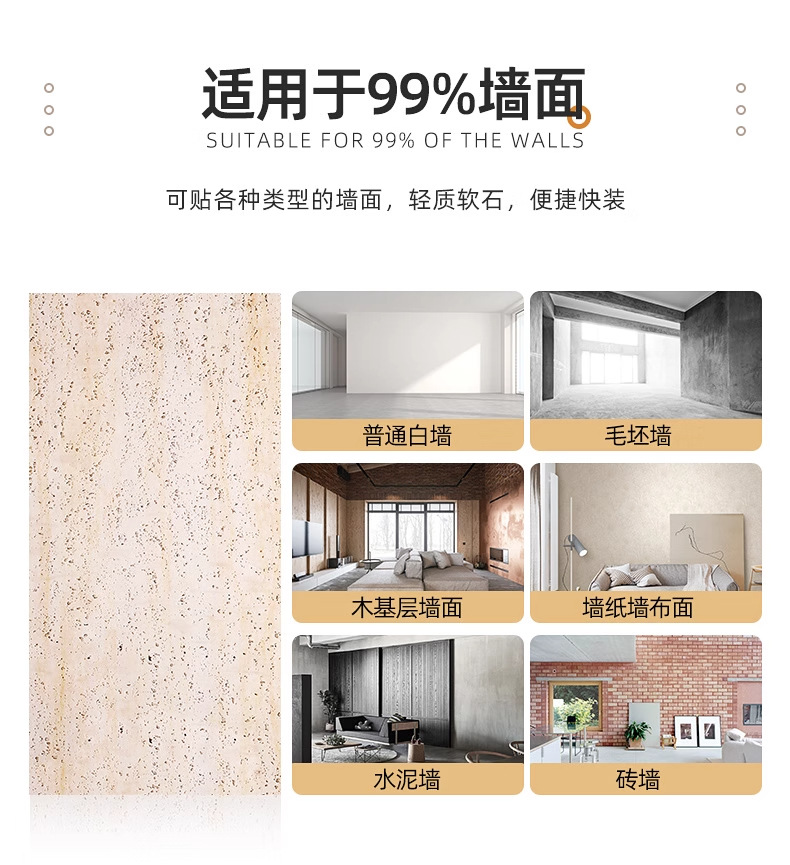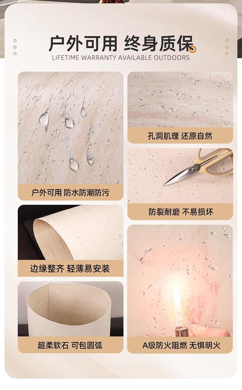 Tablero de travertino 3D suave porcelana suave piedra flexible ultrafina revestimiento de pared exterior de piedra blanda imitación azulejos de cuero de travertino romano
