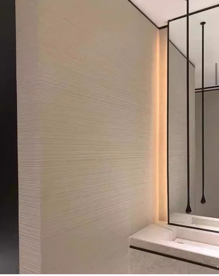La nueva pared de fondo de piedra flexible de piedra de línea de porcelana blanda se puede instalar en la pared curva.