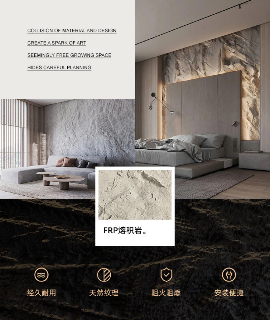 FRP roca fundida roca dividida panel de acabado de piedra de imitación PU roca pizarra pared de fondo panel de la cabeza de la puerta al aire libre