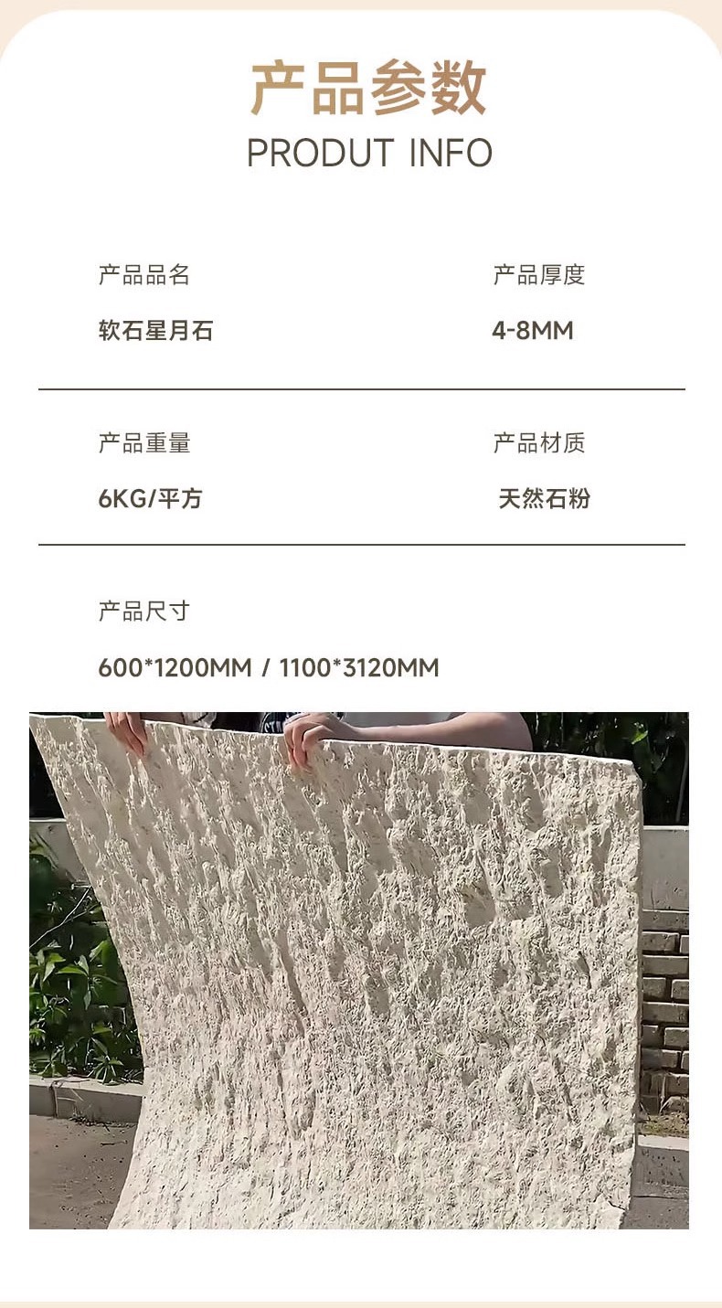El panel de pared de piedra blanda Ying'an se puede doblar, pared de fondo de piedra flexible ultrafina, decoración de pared exterior de porcelana suave, tablero de piedra Xingyue