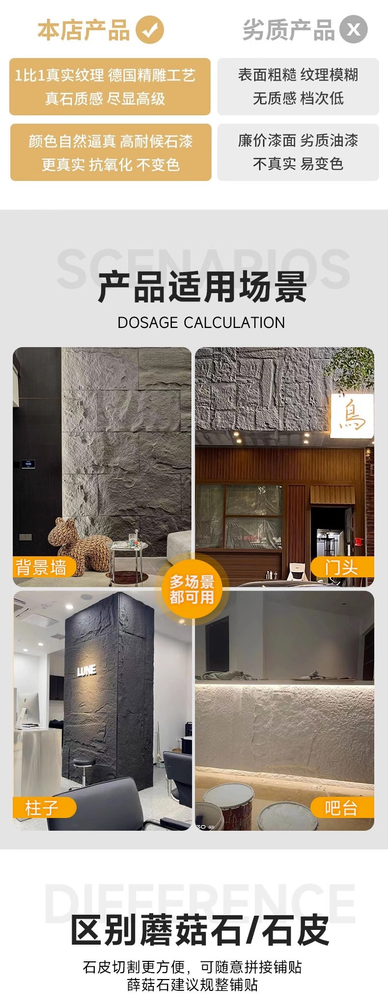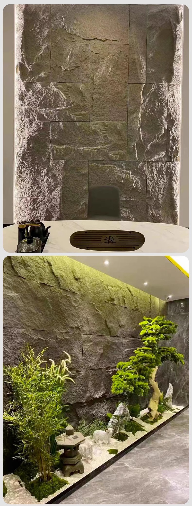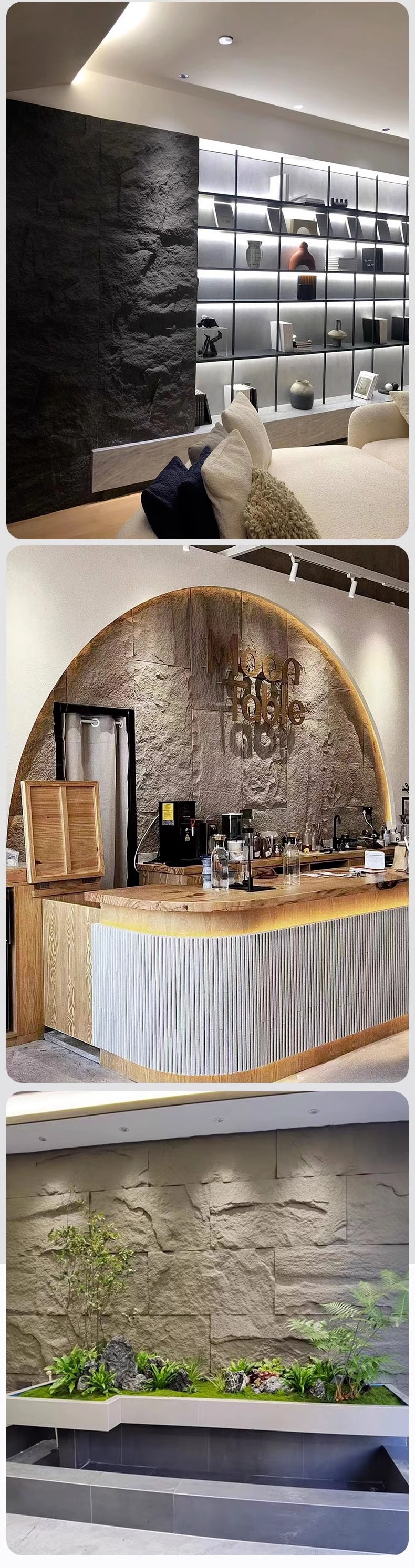 Pu Piel de piedra Fondo de patio Piedra de hongo Piedra cultural ligera Pintura de pared exterior Pintura de piedra de simulación de arte Losa grande Estilo ultrafino
