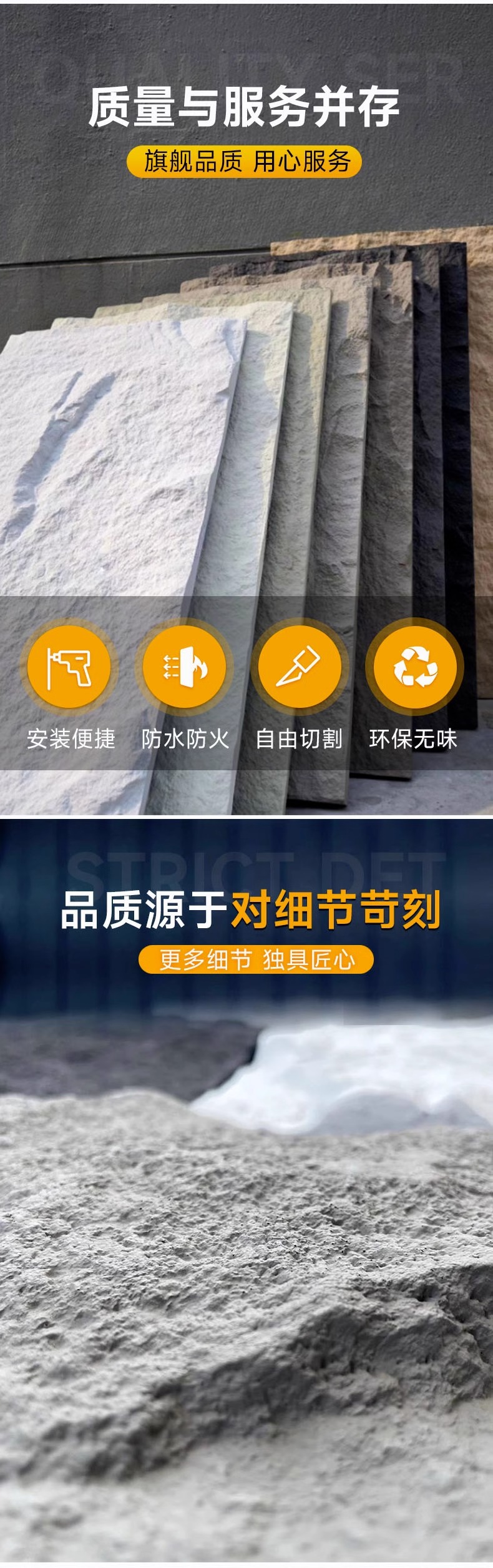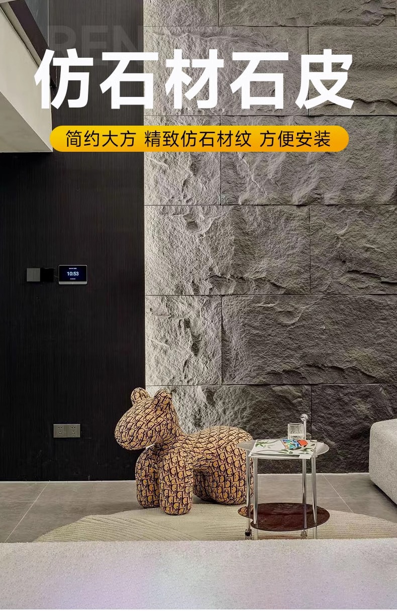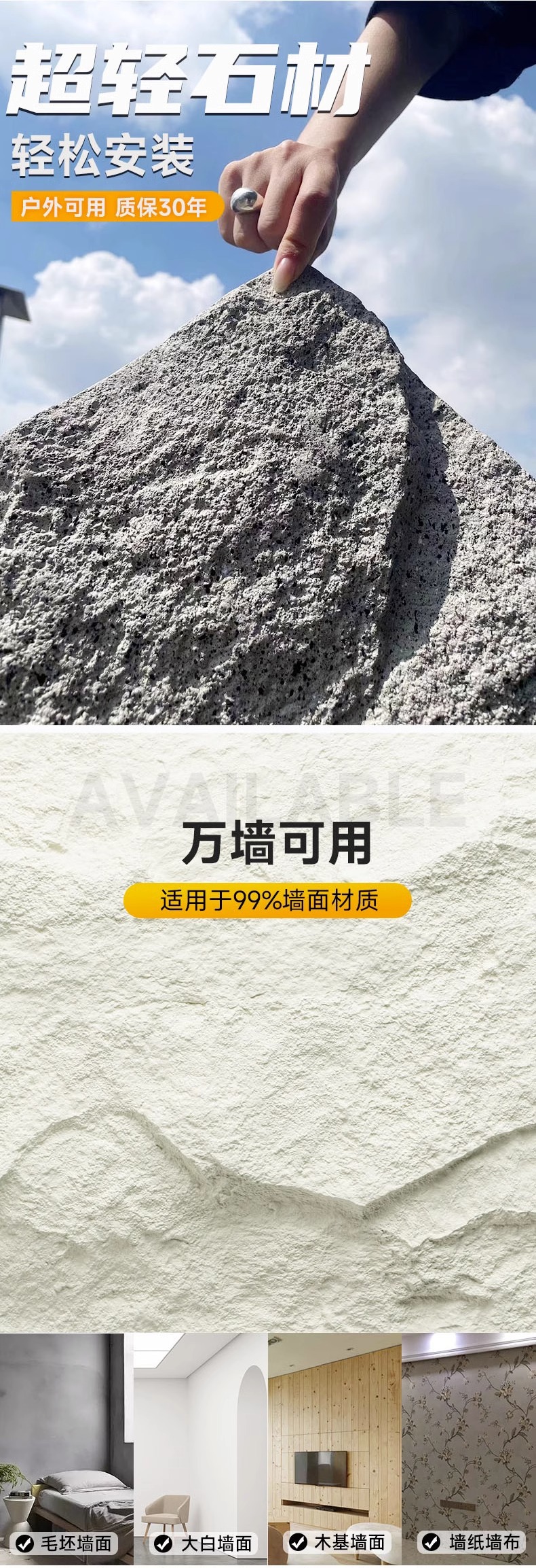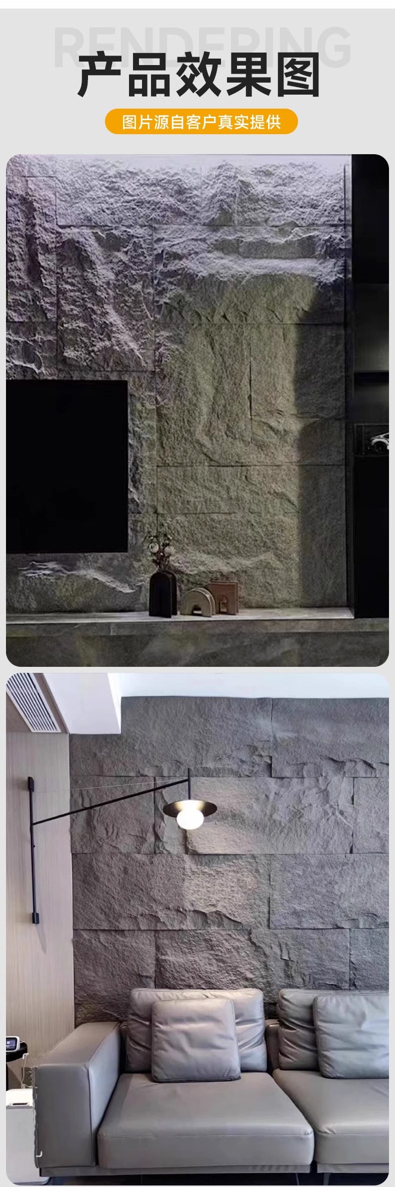 Pu Piel de piedra Fondo de patio Piedra de hongo Piedra cultural ligera Pintura de pared exterior Pintura de piedra de simulación de arte Losa grande Estilo ultrafino