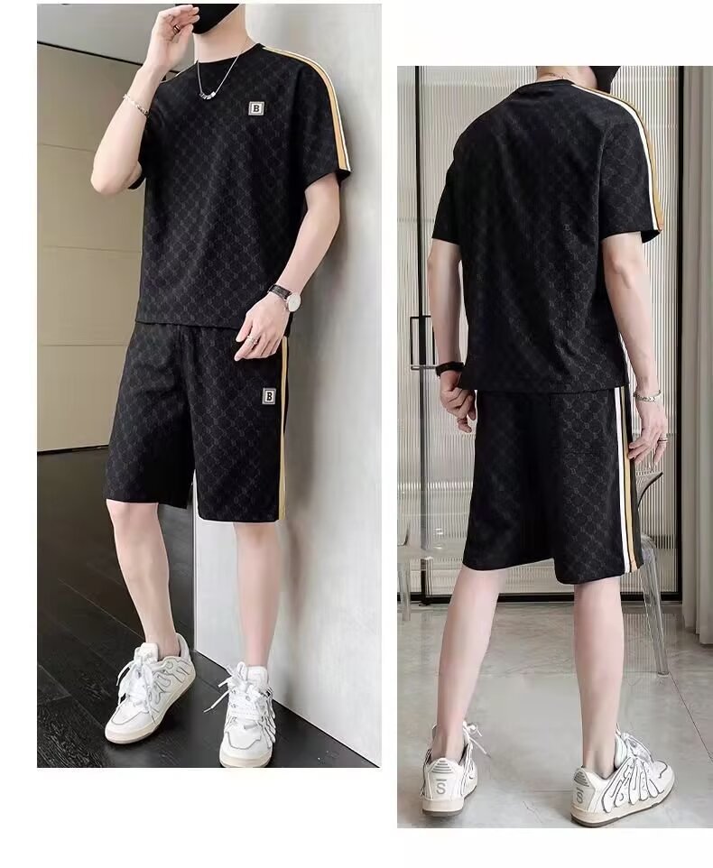 Traje casual de dos piezas para hombres de verano nuevo estilo delgado traje de seda de hielo camiseta de moda hermoso conjunto de pantalones cortos de manga corta