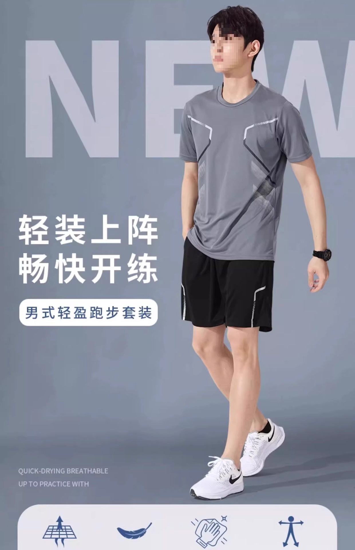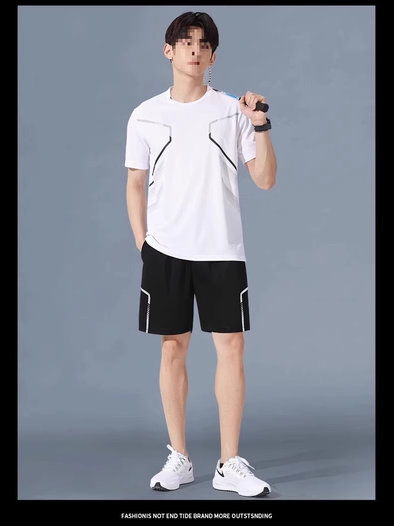 Traje de ropa deportiva para hombres corriendo manga corta seda de hielo ropa de secado rápido de verano ropa de baloncesto ropa de fitness de plumas pantalones cortos de verano