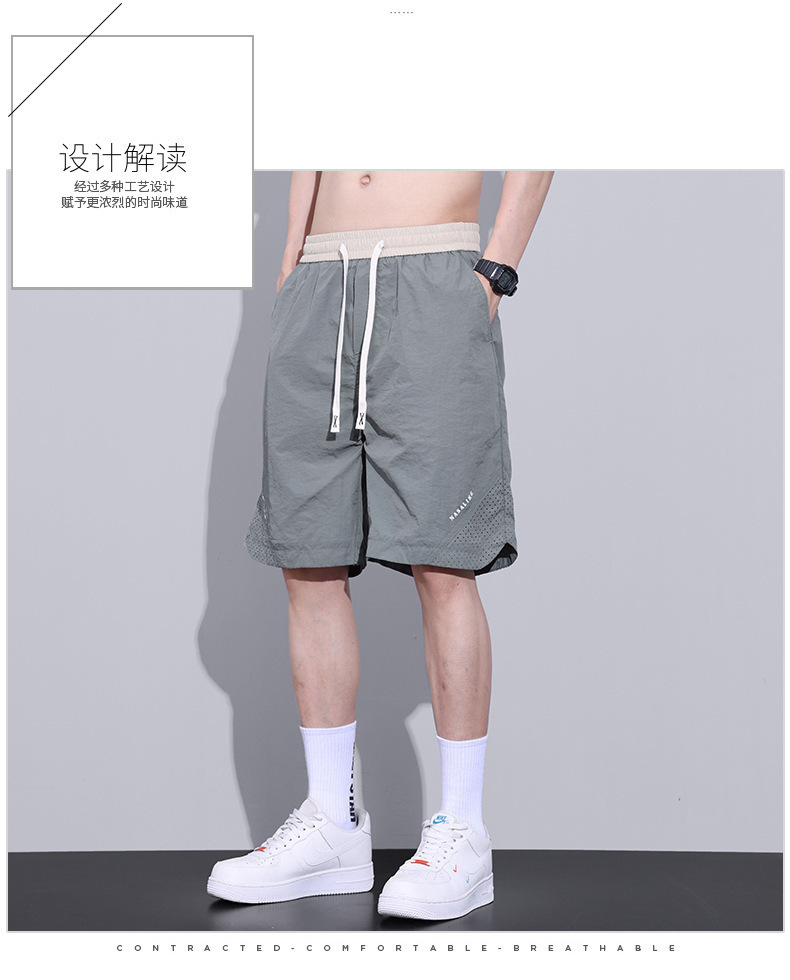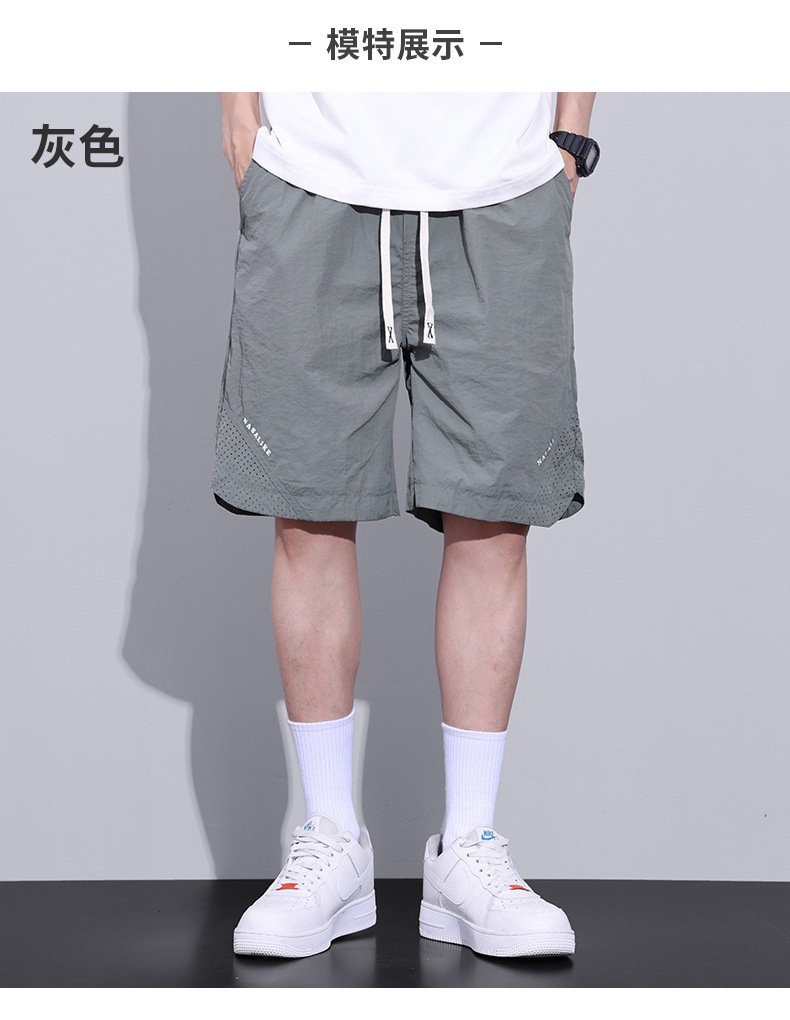 Pantalones cortos de seda de hielo para hombre, pantalones de playa de malla de secado rápido sueltos casuales delgados de verano, ropa exterior, pantalones deportivos de cinco puntos
