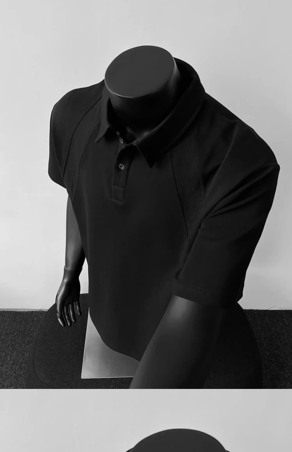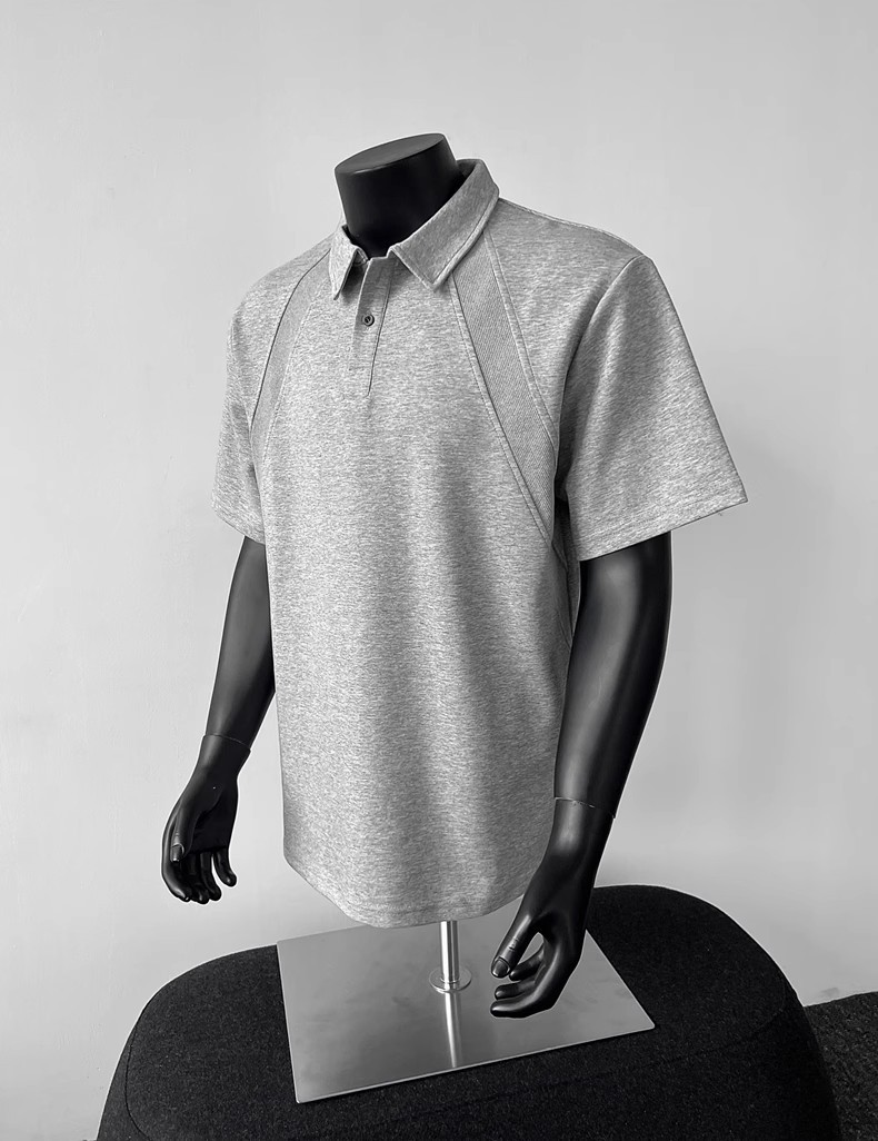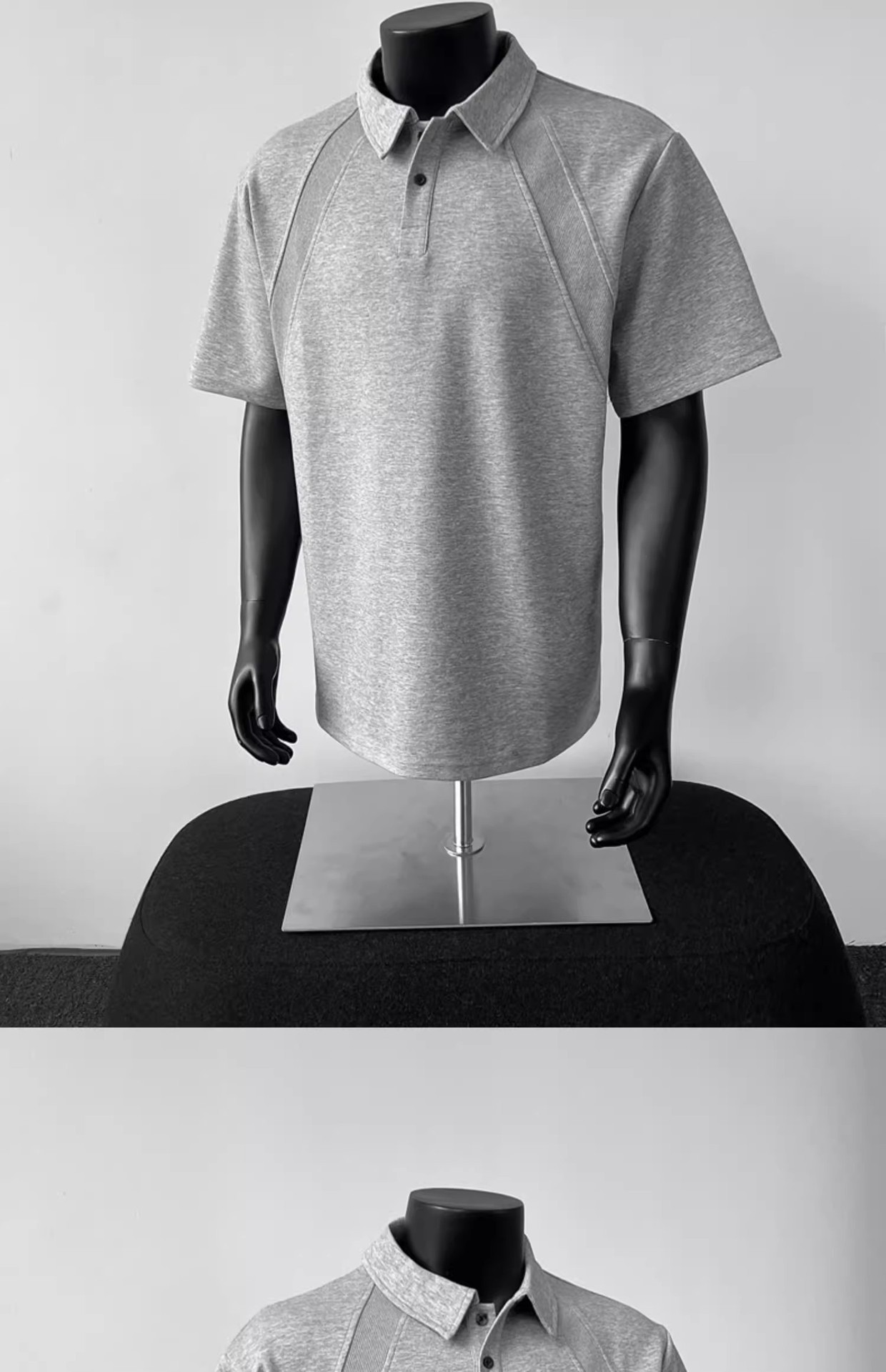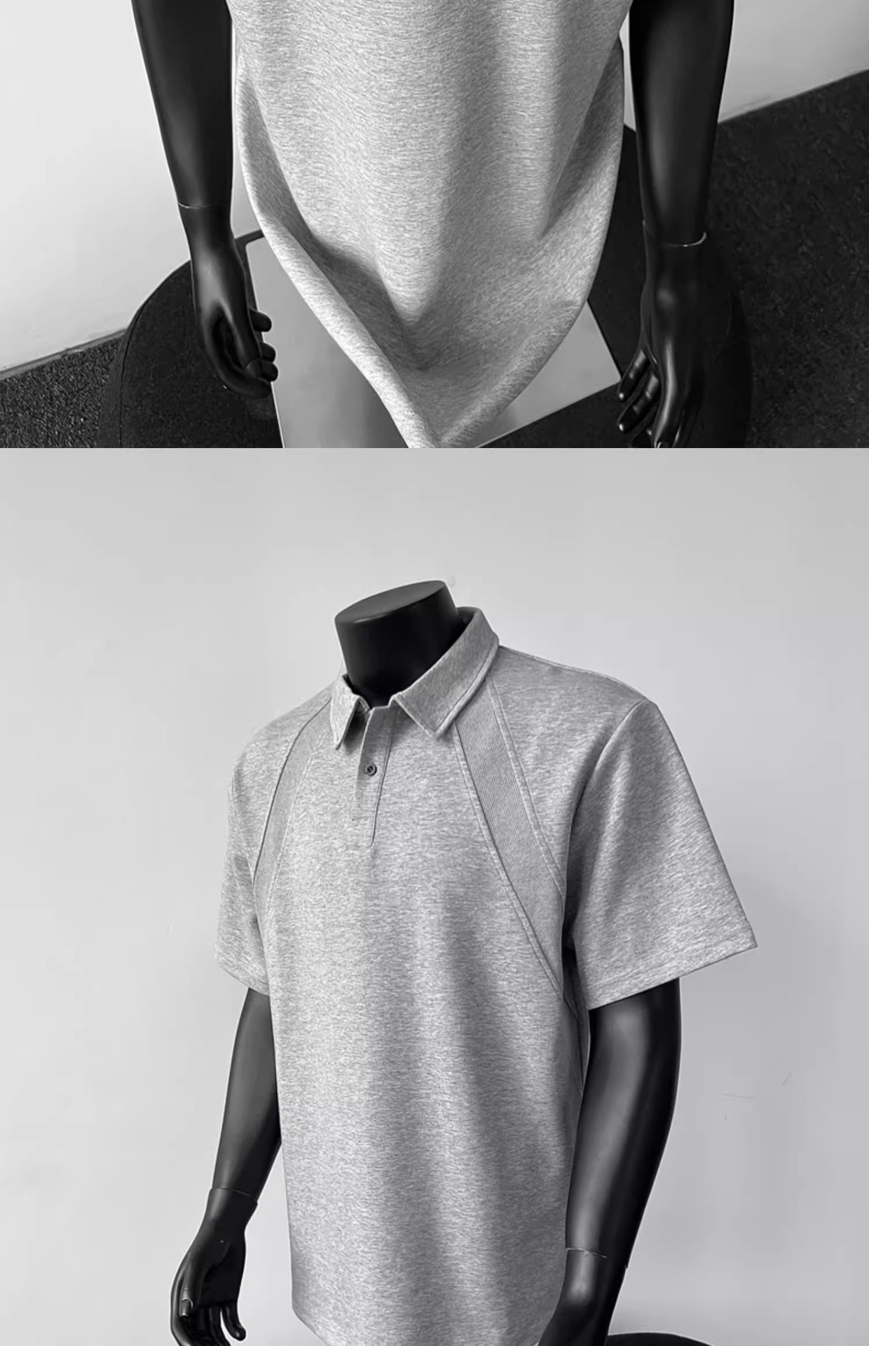 Camisa tipo polo de manga corta de hombro recto americano Camisa pesada de verano para hombre Camiseta de solapa Manga raglán cleanfit media manga