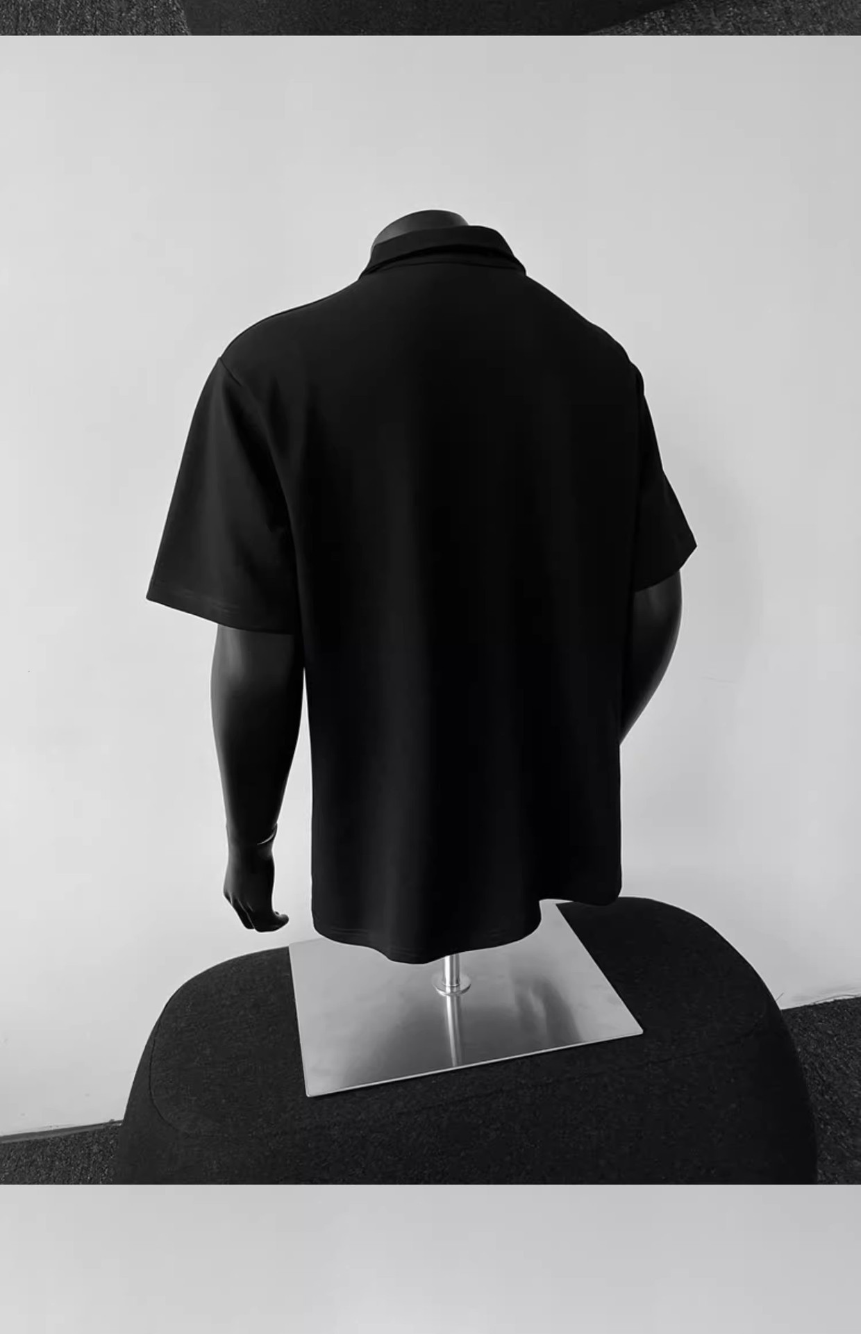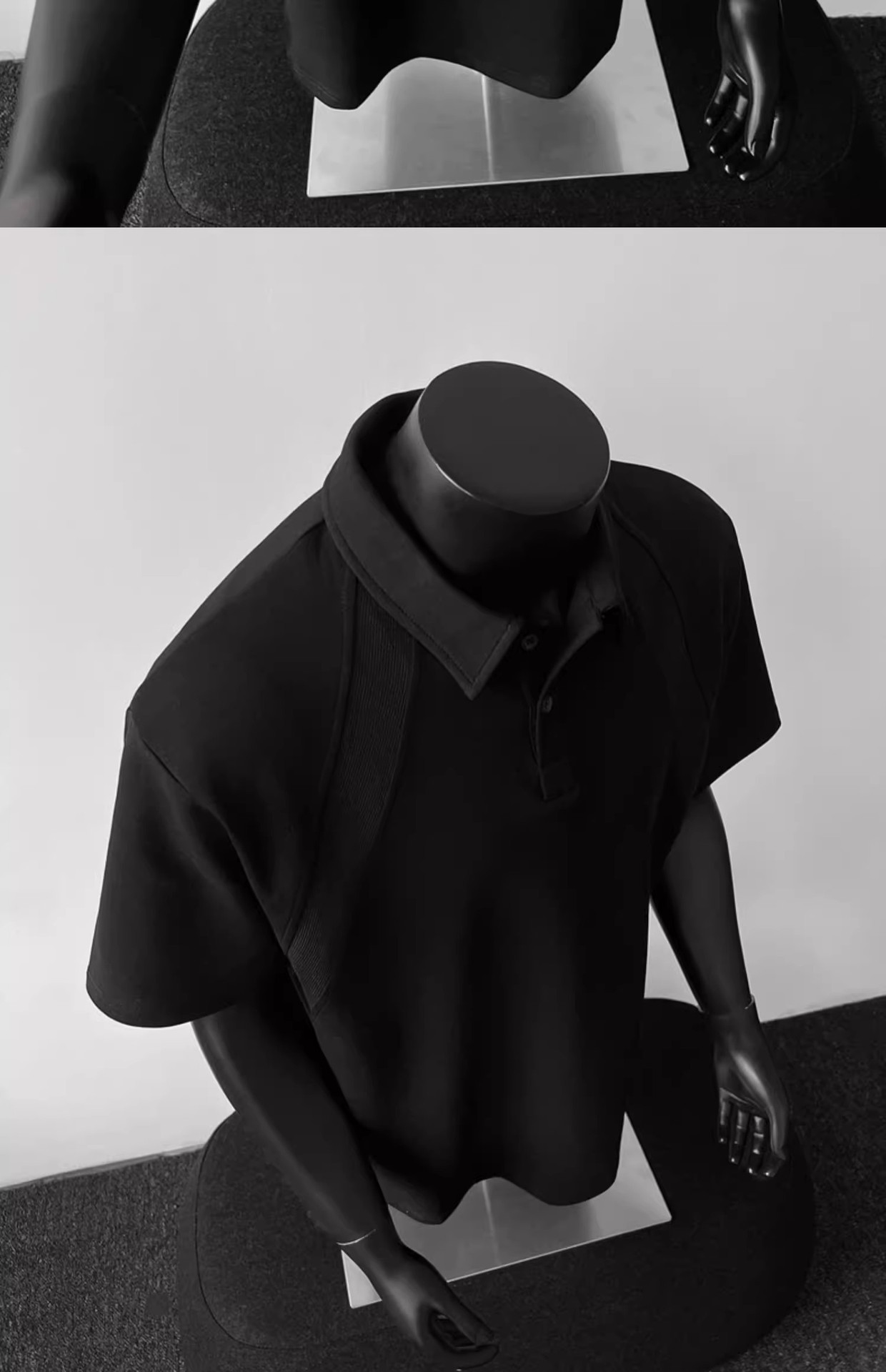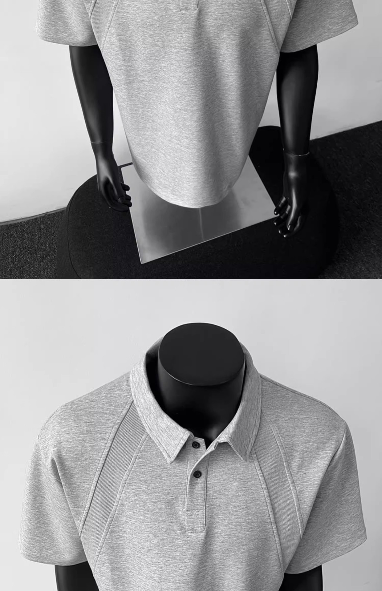Camisa tipo polo de manga corta de hombro recto americano Camisa pesada de verano para hombre Camiseta de solapa Manga raglán cleanfit media manga