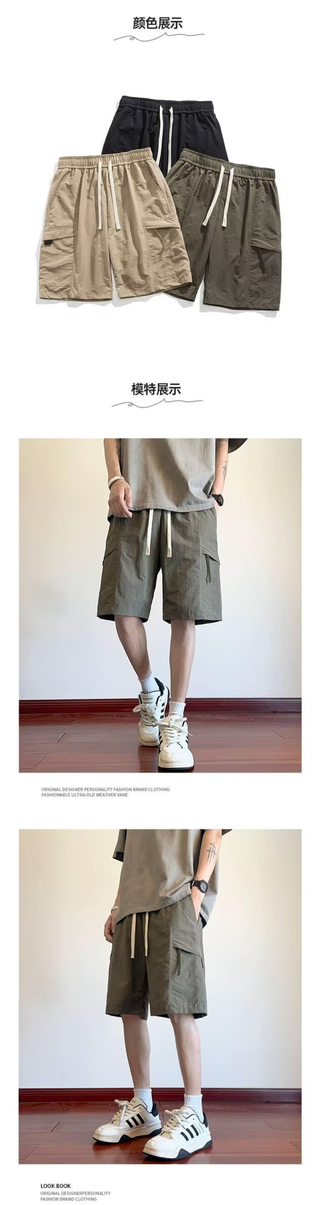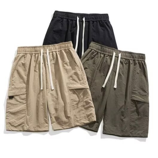 Pantalones cortos de herramientas de verano para hombres nuevos pantalones rectos casuales deportivos de seda de hielo marca de moda pantalones de cinco puntos de color sólido estilo fino de moda