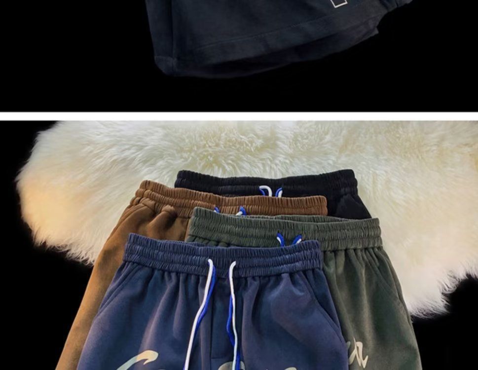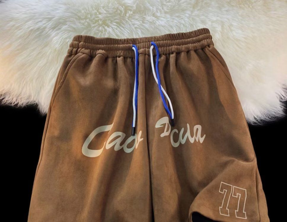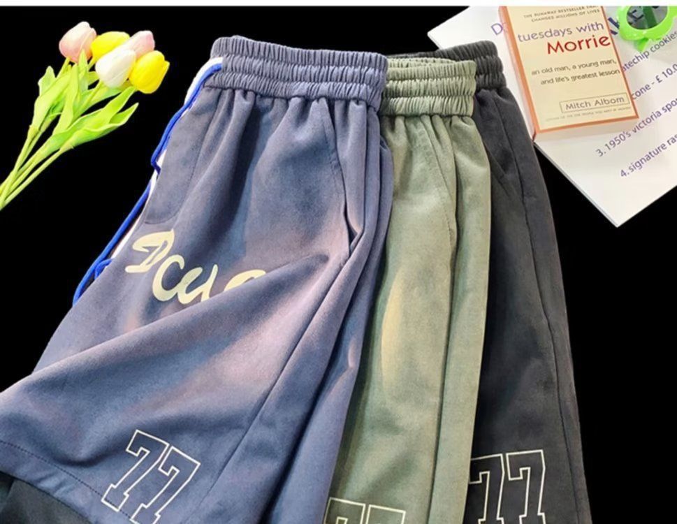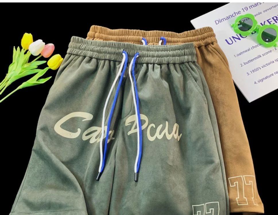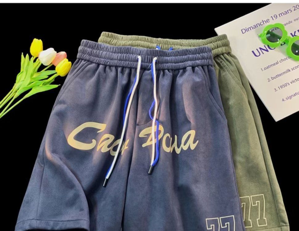 Pantalones cortos de gamuza retro para hombres, estilo fino de verano, estilo americano de moda, pantalones de cinco puntos de uso deportivo suelto casual