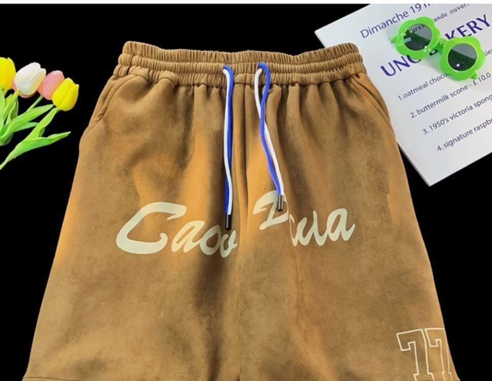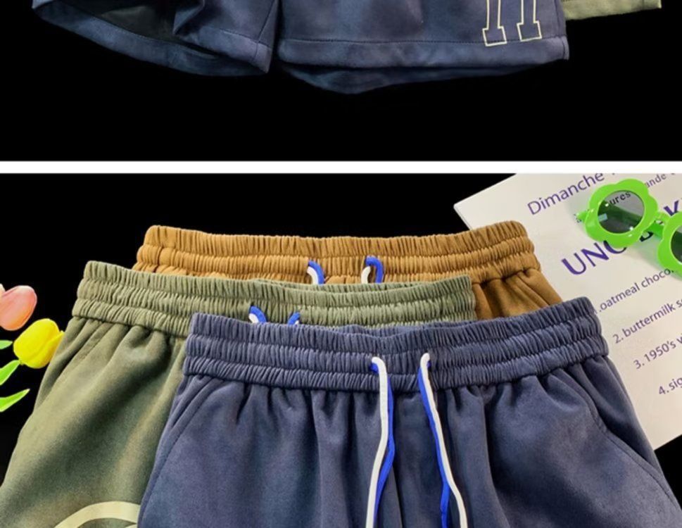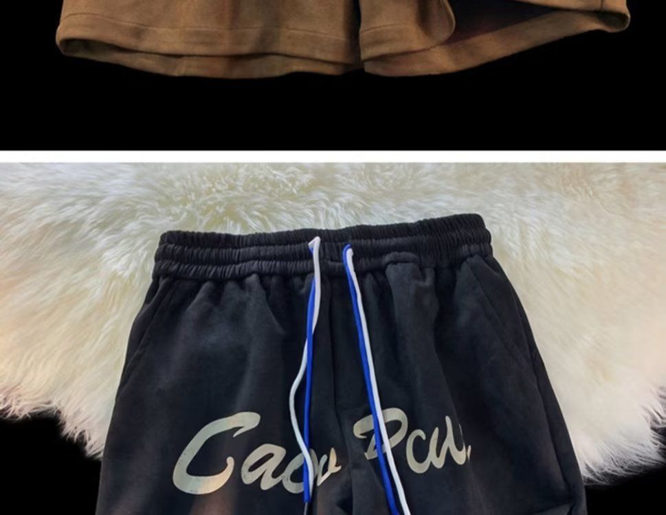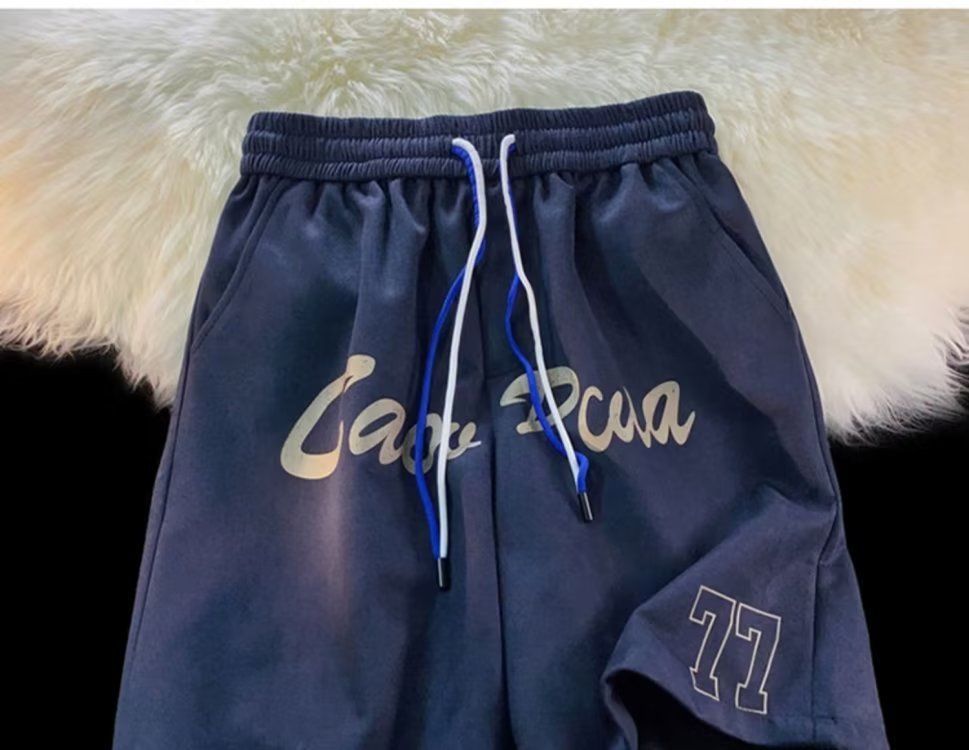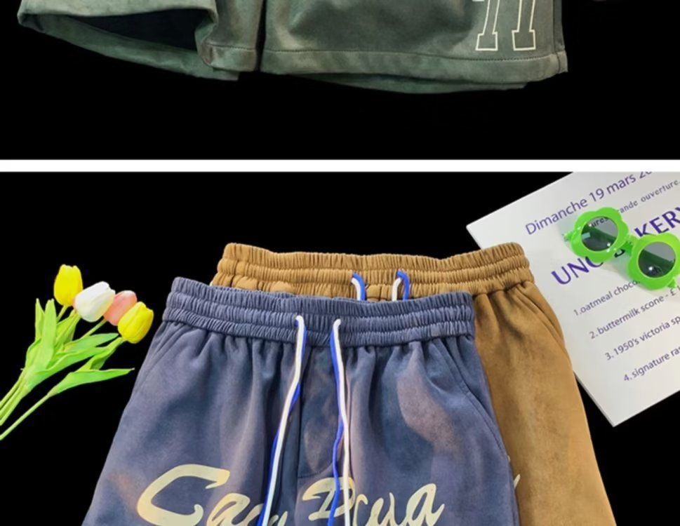 Pantalones cortos de gamuza retro para hombres, estilo fino de verano, estilo americano de moda, pantalones de cinco puntos de uso deportivo suelto casual