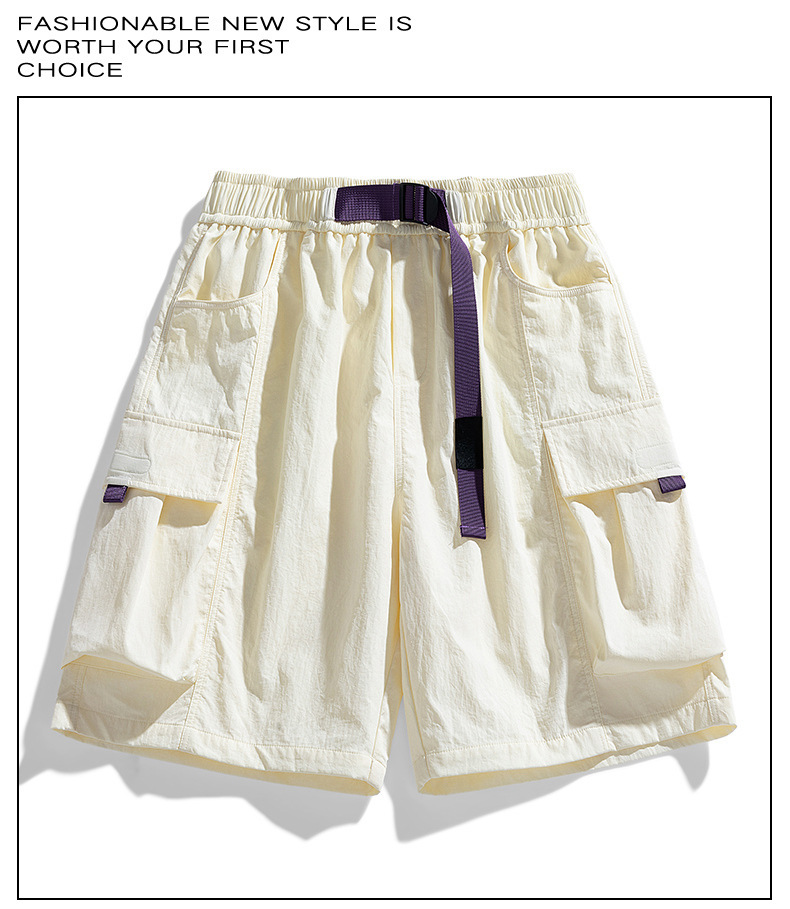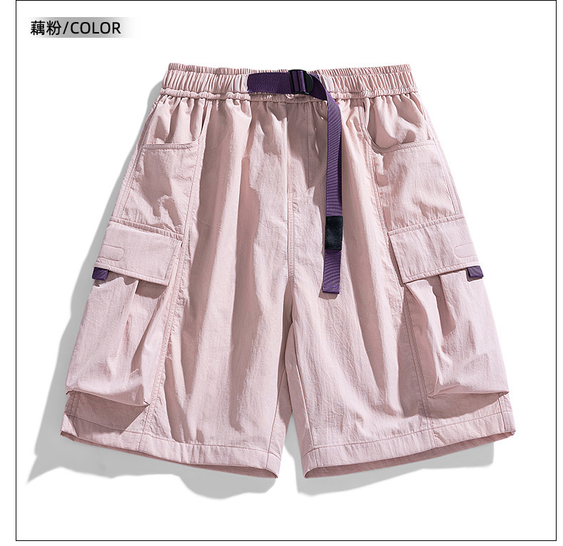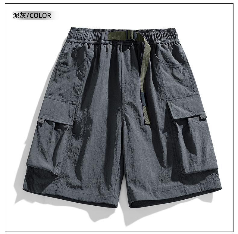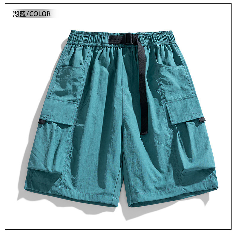 Pantalones cortos de herramientas estadounidenses de pájaro carpintero, nuevos modelos de verano para hombres y mujeres, bolsillos grandes, pantalones deportivos de seda de hielo de gran tamaño sueltos