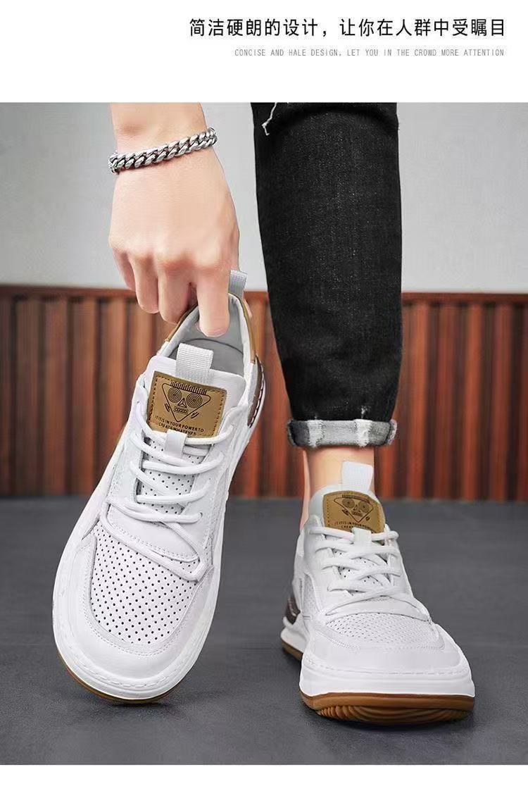 2025 nuevos zapatos blancos, suela suave, pies no cansados, huecos, transpirables, suela suave, zapatos de moda coreanos, zapatos planos, sensación de alta gama para hombres