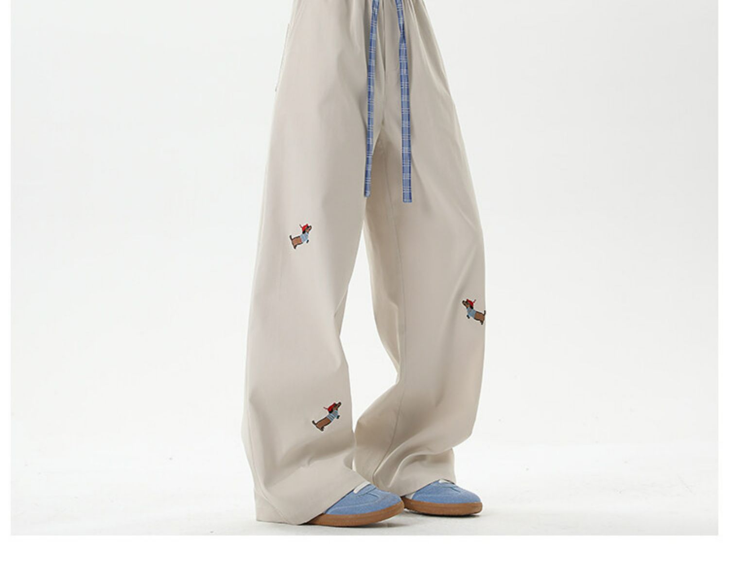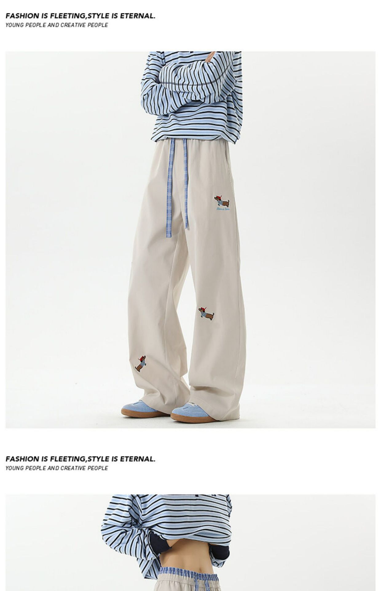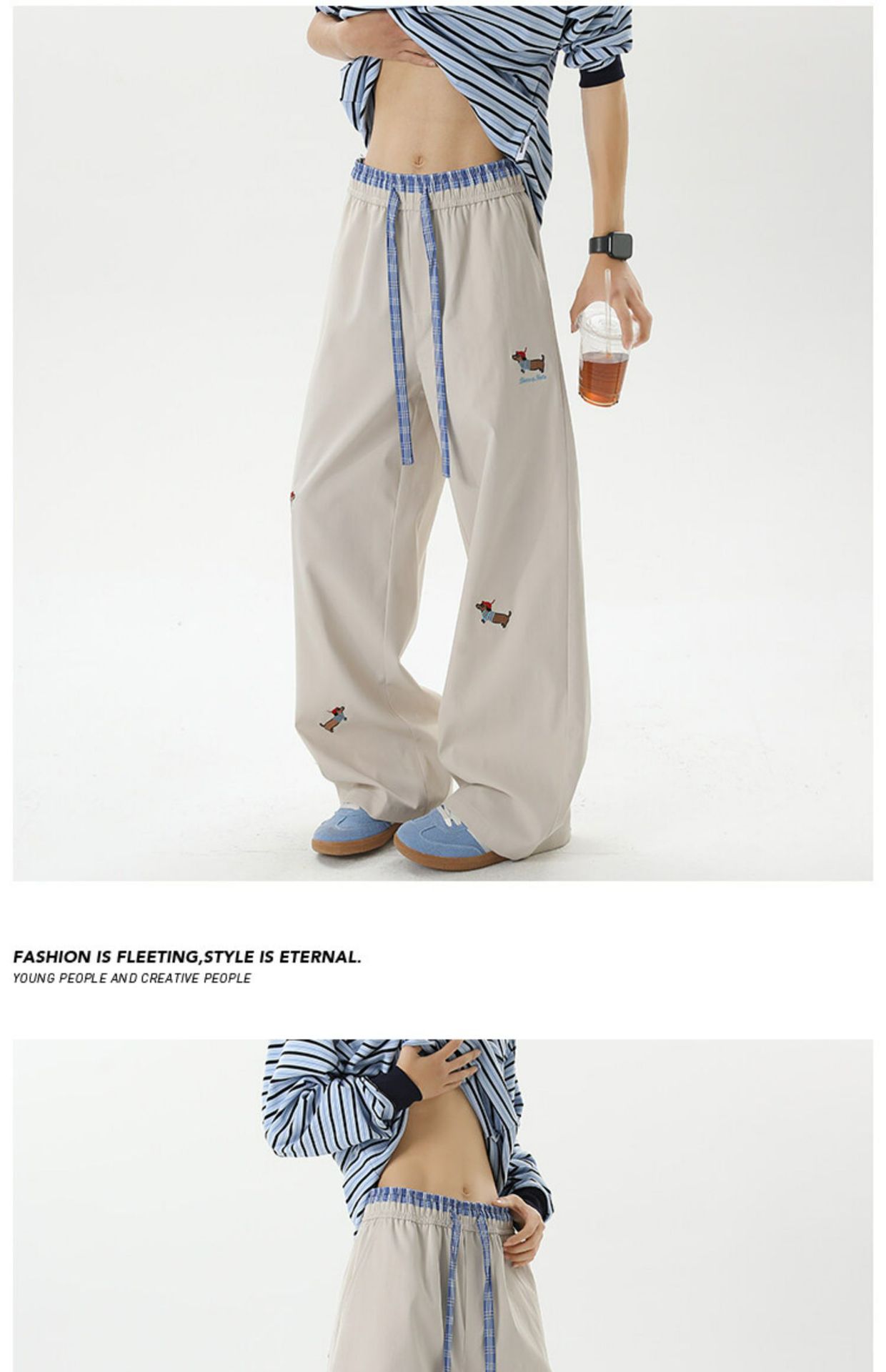 Pantalones bordados de perro salchicha pantalones casuales de primavera para hombres americanos pantalones deportivos para niños adolescentes rectos sueltos