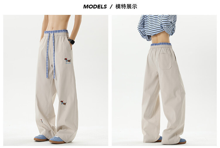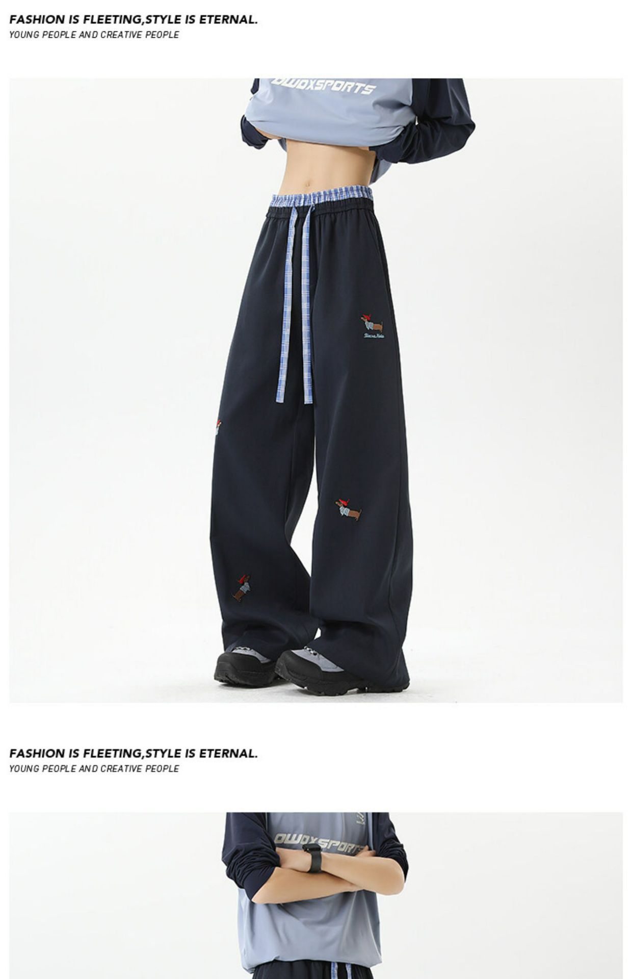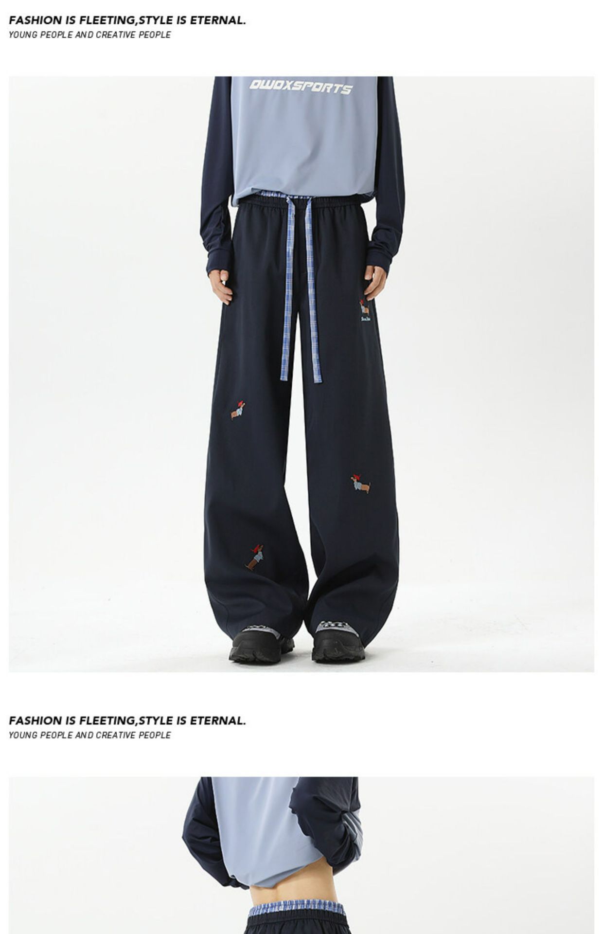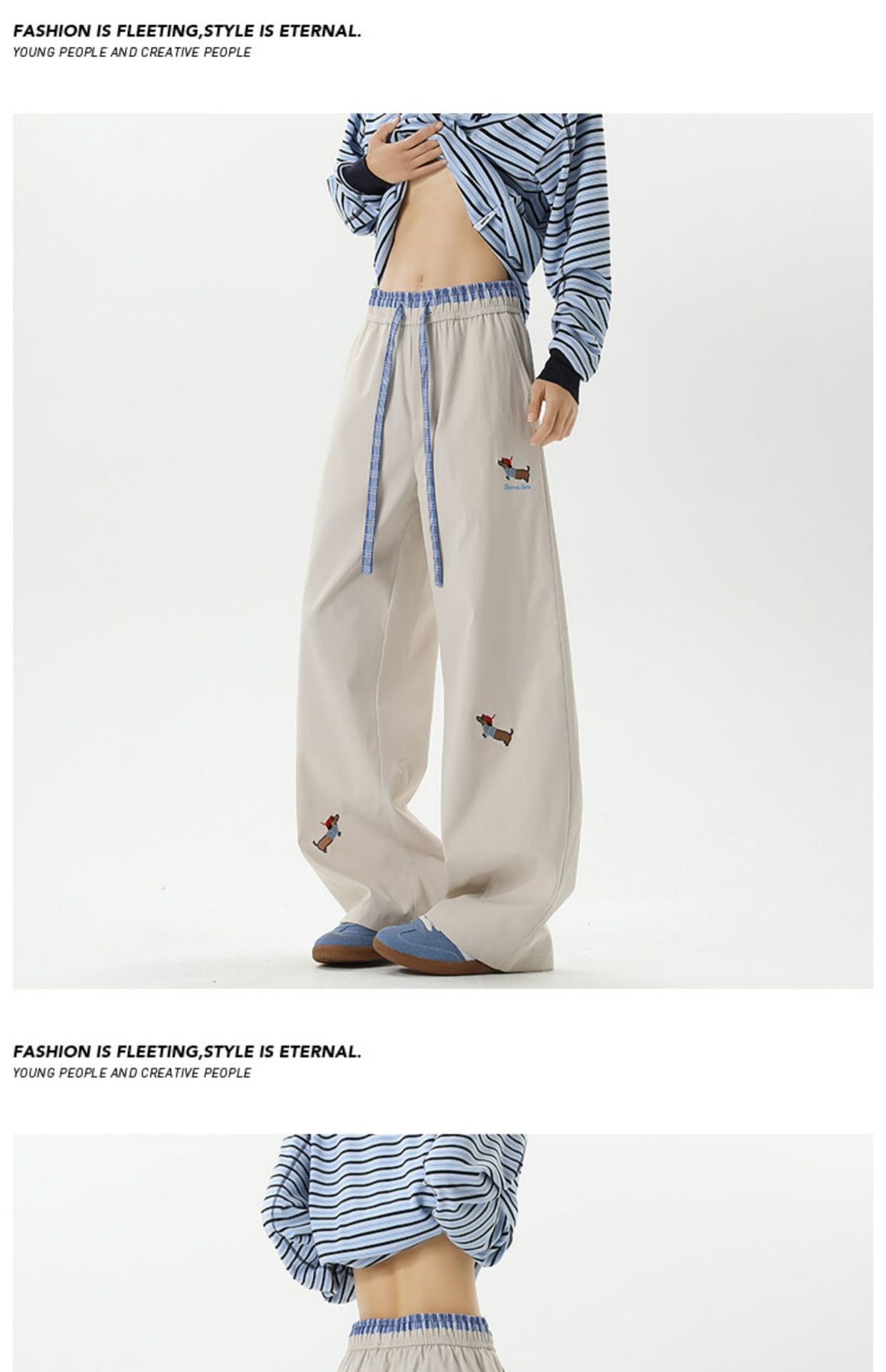 Pantalones bordados de perro salchicha pantalones casuales de primavera para hombres americanos pantalones deportivos para niños adolescentes rectos sueltos