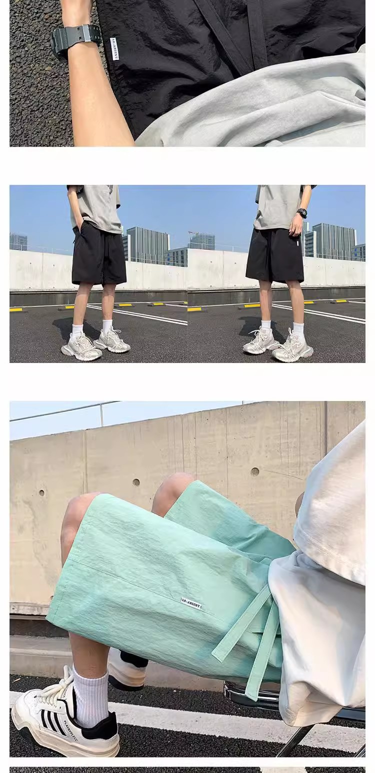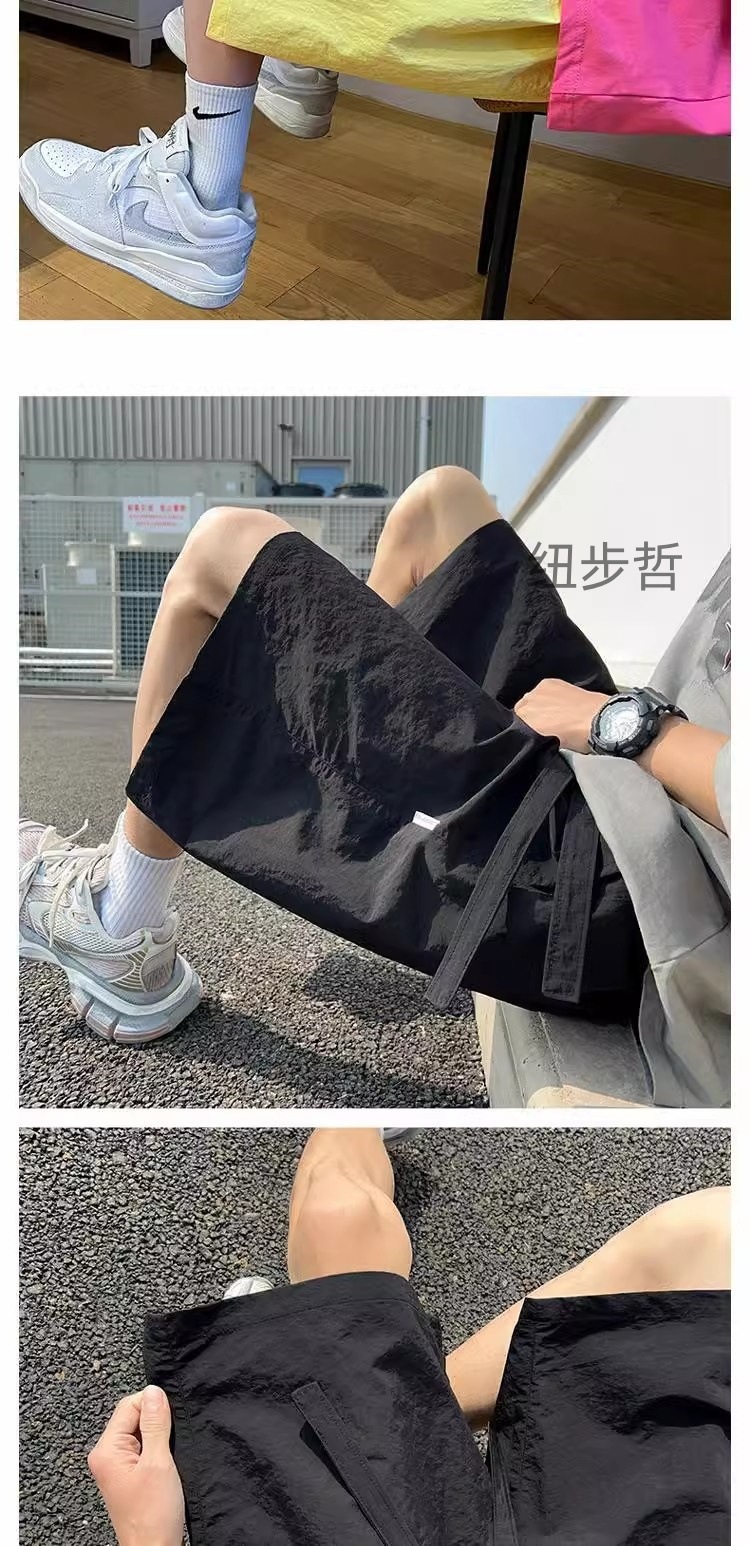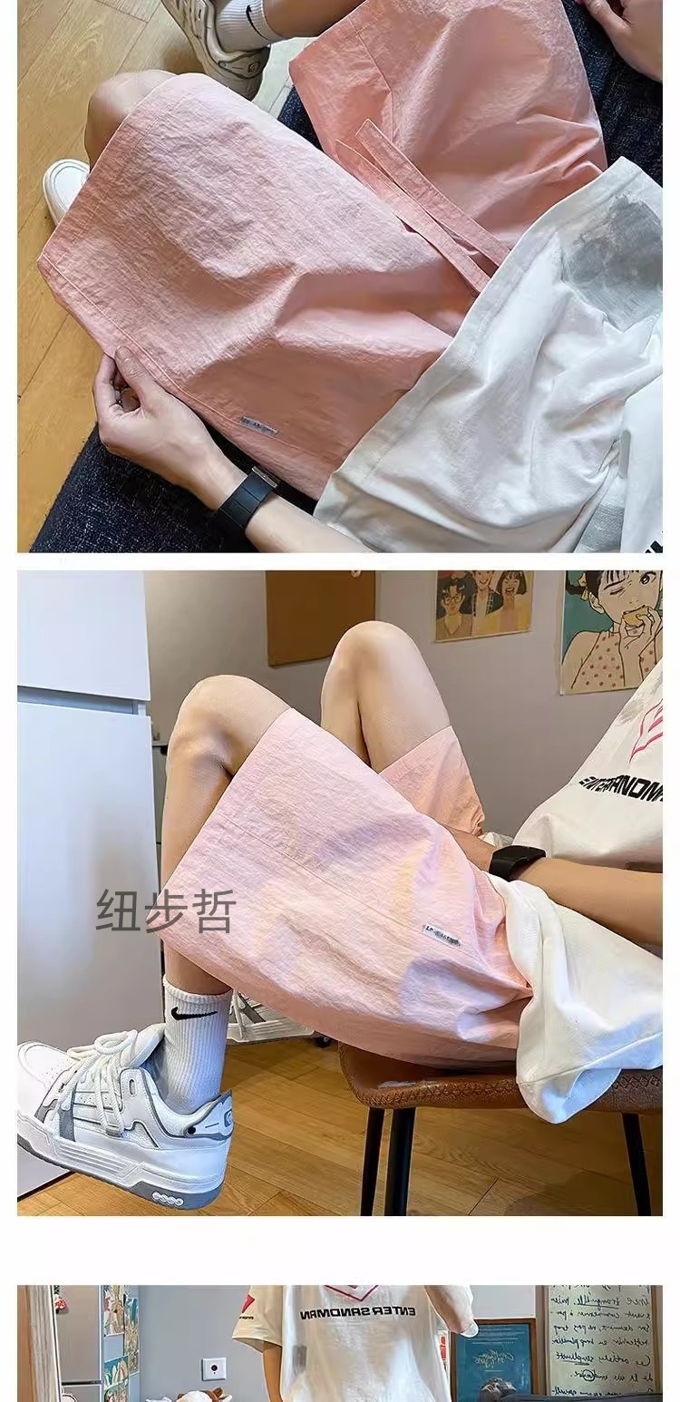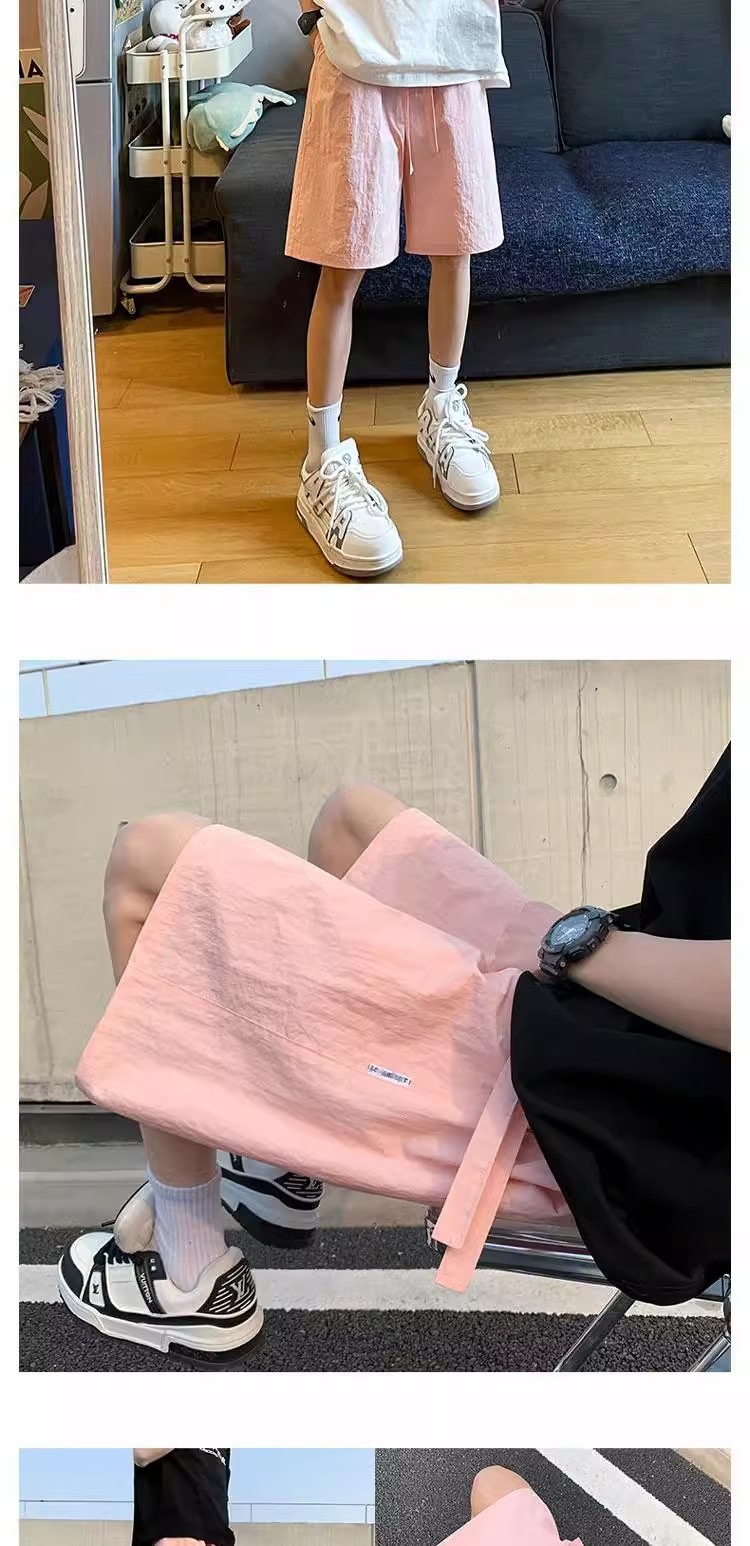 Pantalones cortos deportivos de secado rápido rosa dopamina para hombres 2025 nuevos pantalones de verano de talla grande pantalones sueltos casuales de cinco puntos