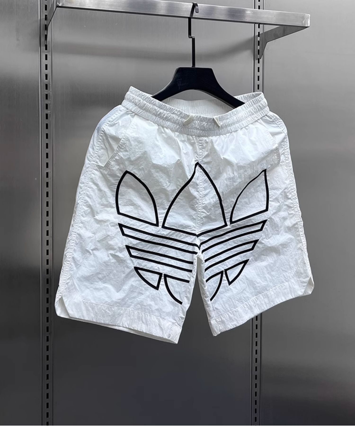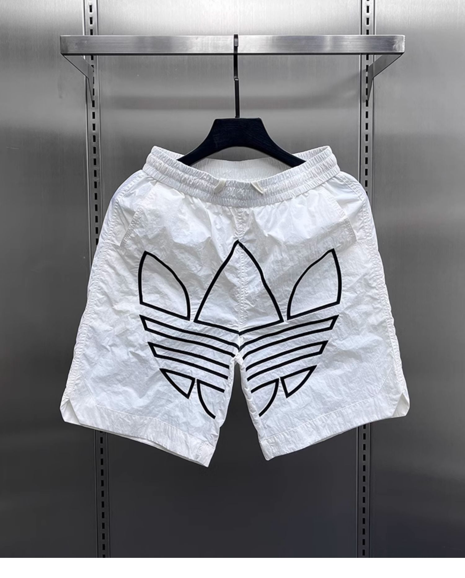 Pantalones de cinco puntos para hombres de verano, pantalones cortos deportivos sueltos casuales de secado rápido, pantalones de playa de color de contraste de bordado de la industria pesada de estilo delgado