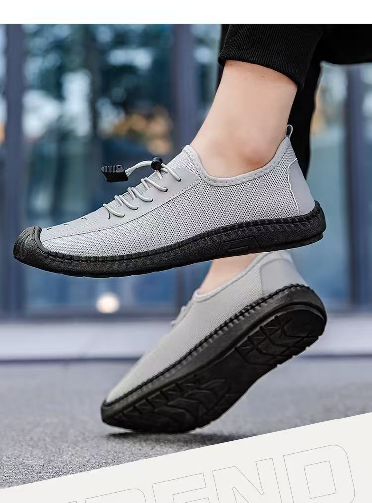 2025 verano nuevo estilo zapatos casuales de suela blanda para hombre zapatos de papá de mediana edad suela de tendón de vaca zapatos de malla tejidos transpirables perezosos