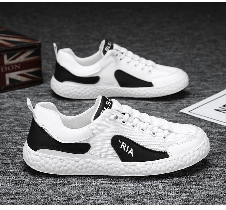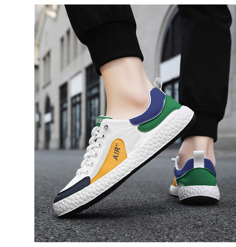Nuevos zapatos de hombre con superficie de malla de tejido volador, zapatos casuales de hombre transpirables de moda de palomitas de maíz, zapatos de tabla coreanos de todo fósforo de comercio exterior de moda