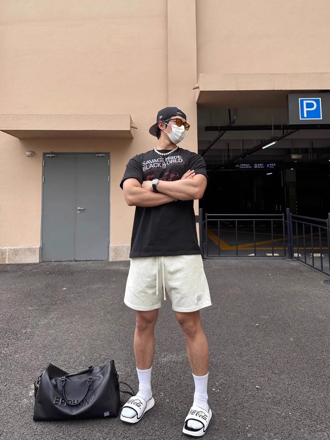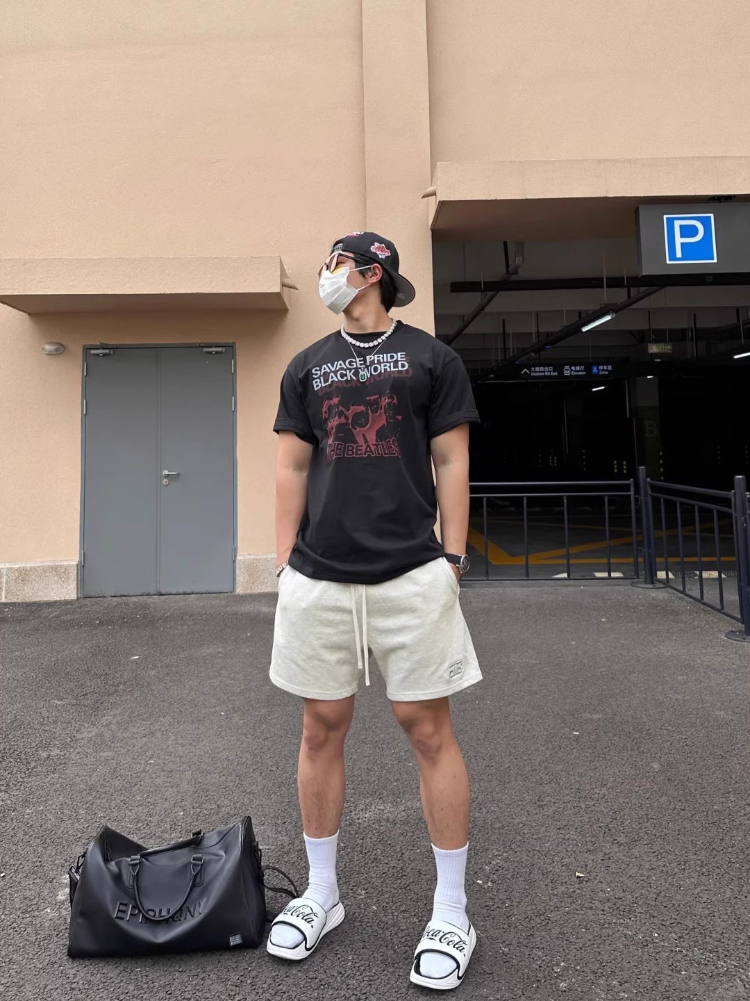 Pantalones cortos deportivos con bordado de letras de marca de moda de verano para hombres, casual americano, cintura elástica de algodón guapo, pantalones harem, marea fina
