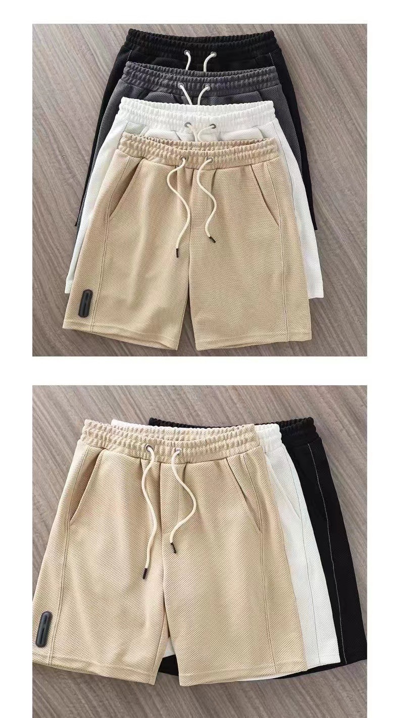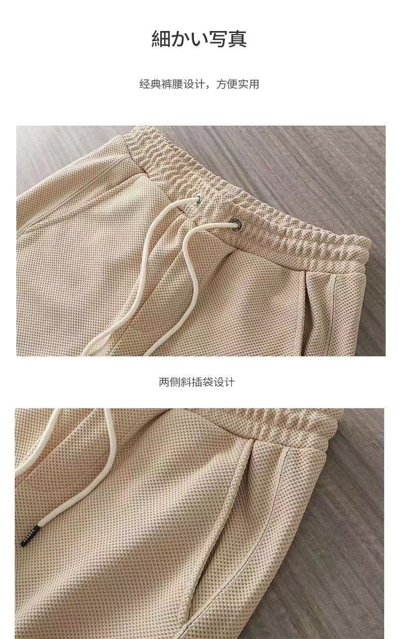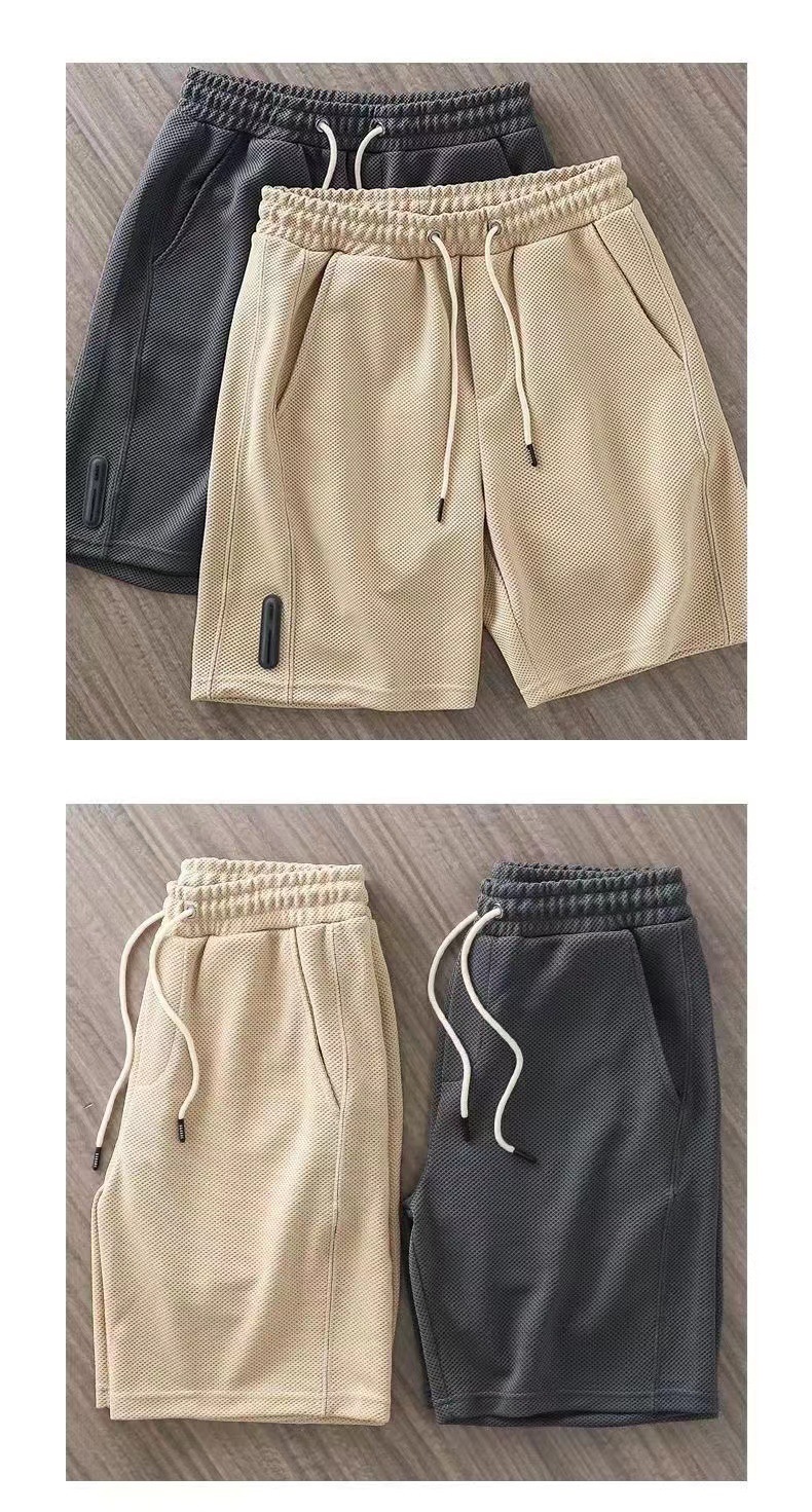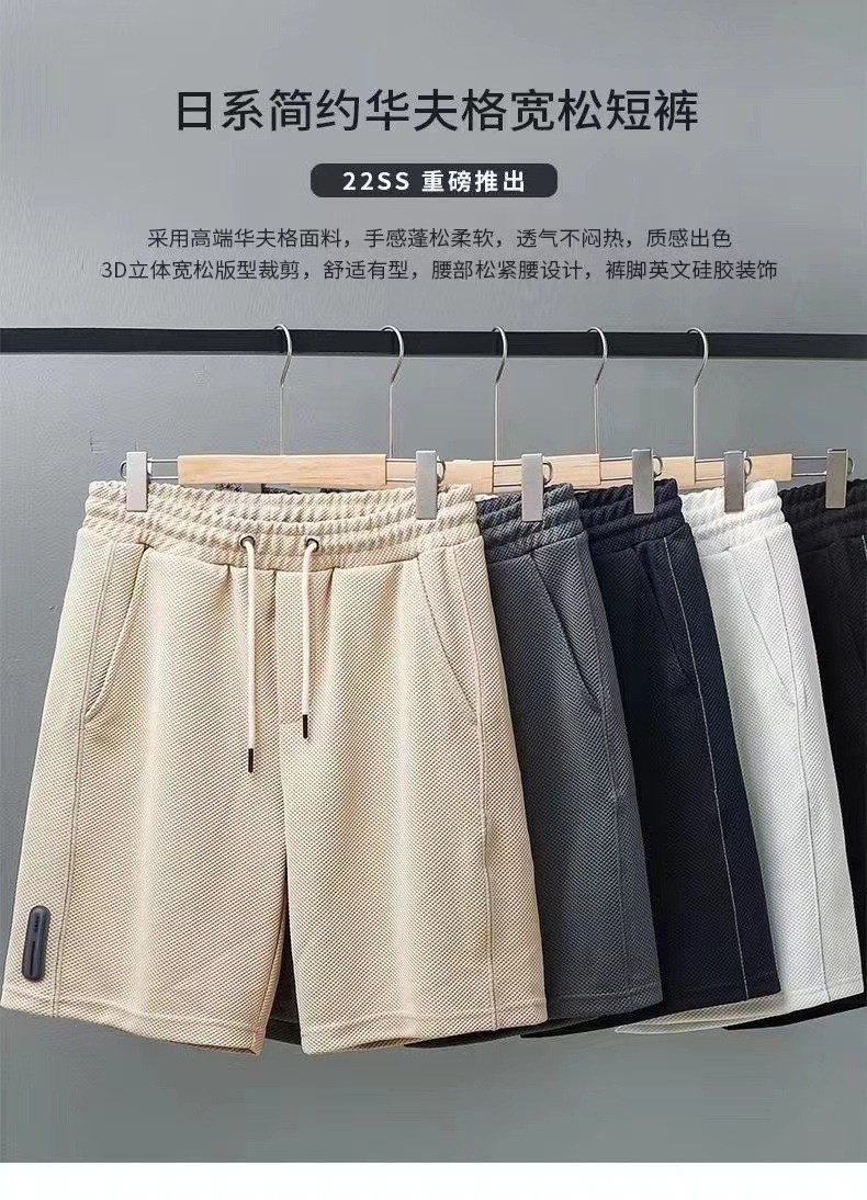 Shorts Waffle para hombres, verano, todo fósforo, estilo de Hong Kong, nueva tendencia, transpirable, deportes, hombres de moda, rectos, casuales y cómodos