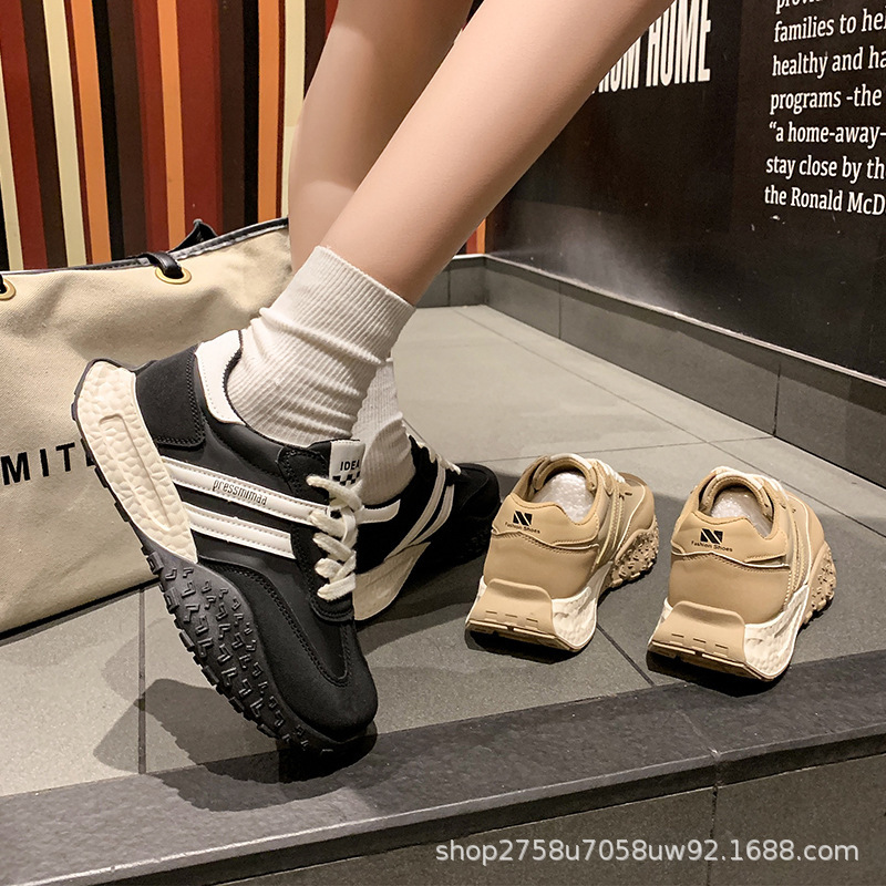Zapatos de papá de estilo caliente para mujer, primavera y otoño de 2025, nuevos zapatos de entrenamiento de súper fuego, suela gruesa, zapatos deportivos casuales para mujer