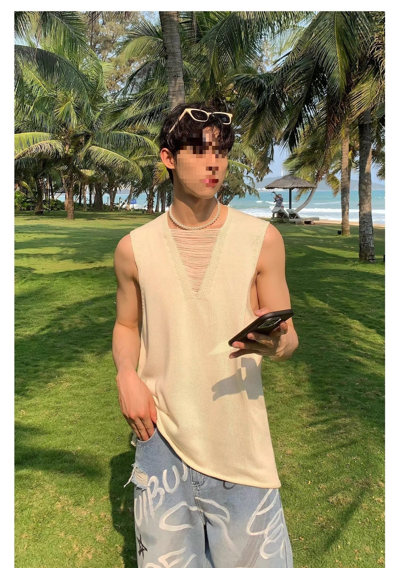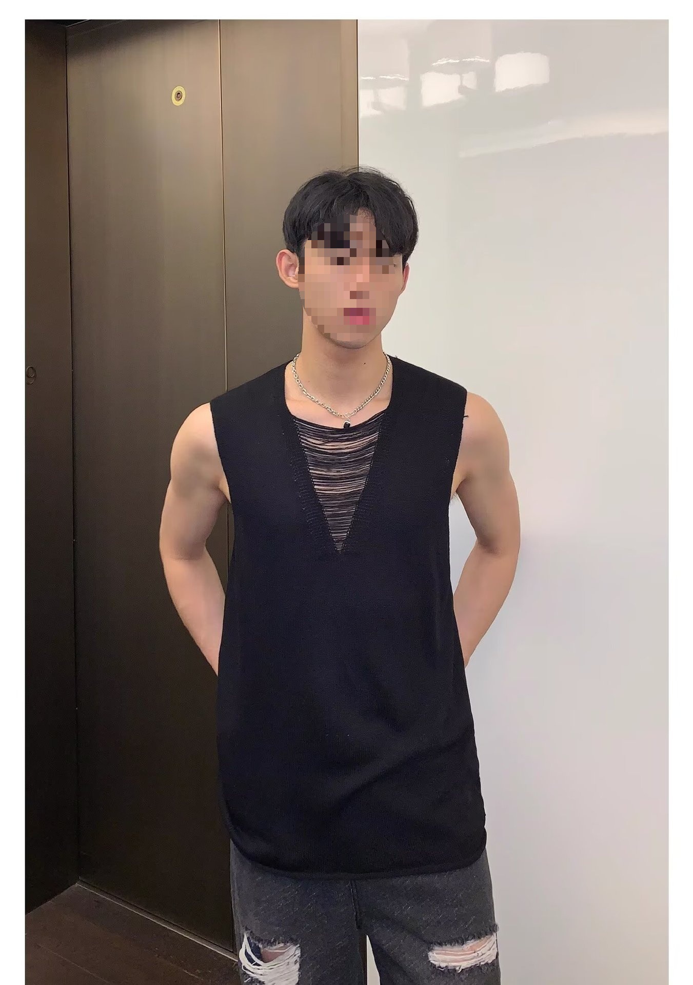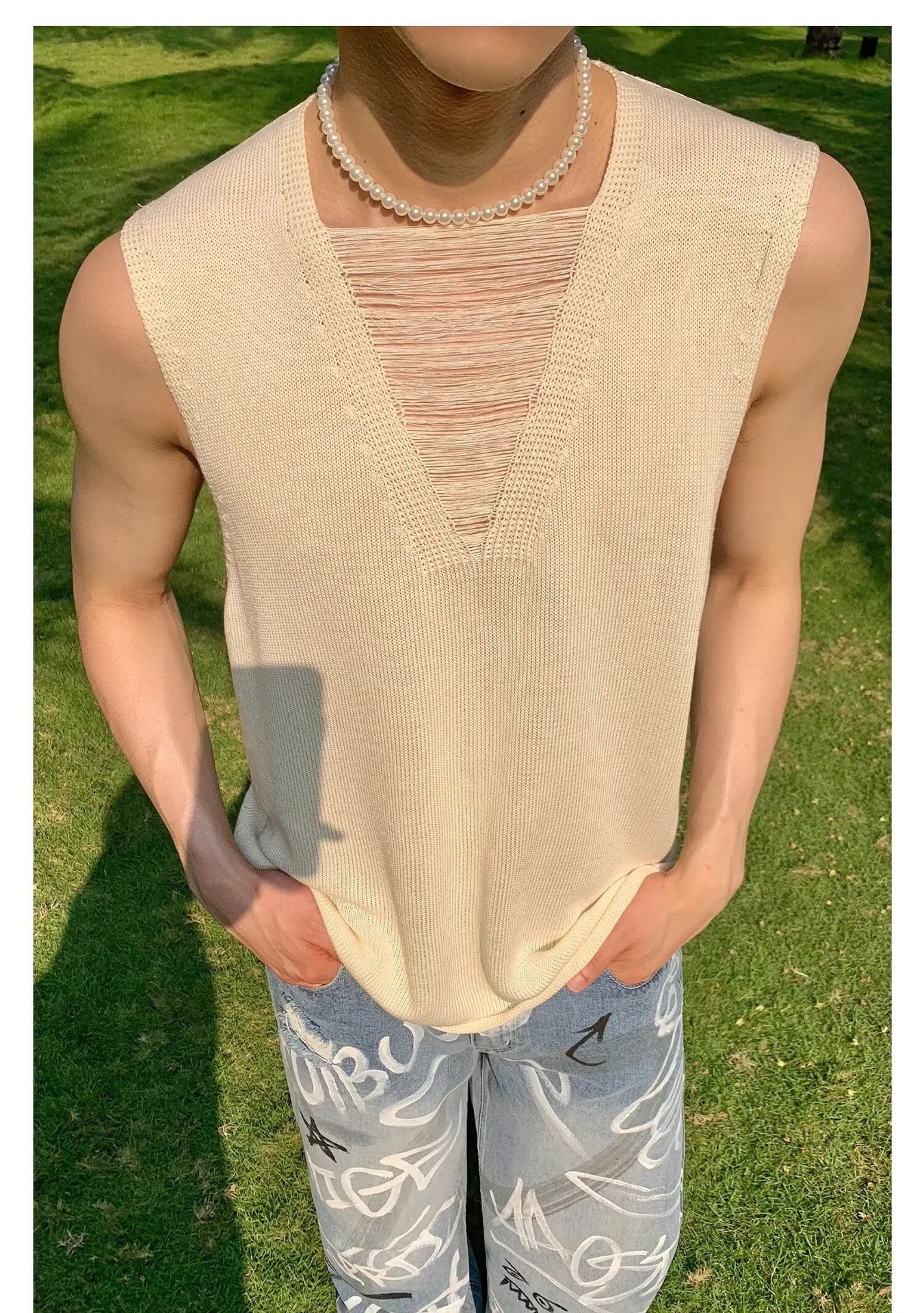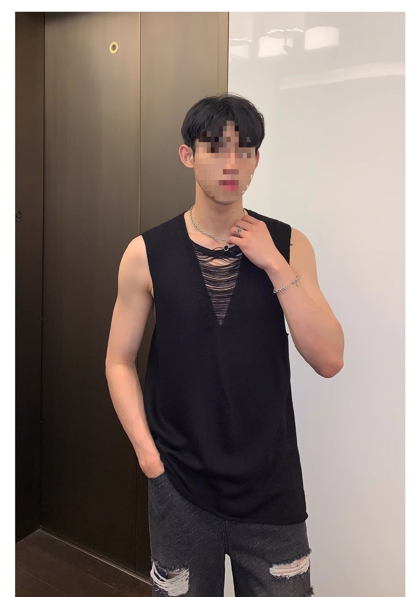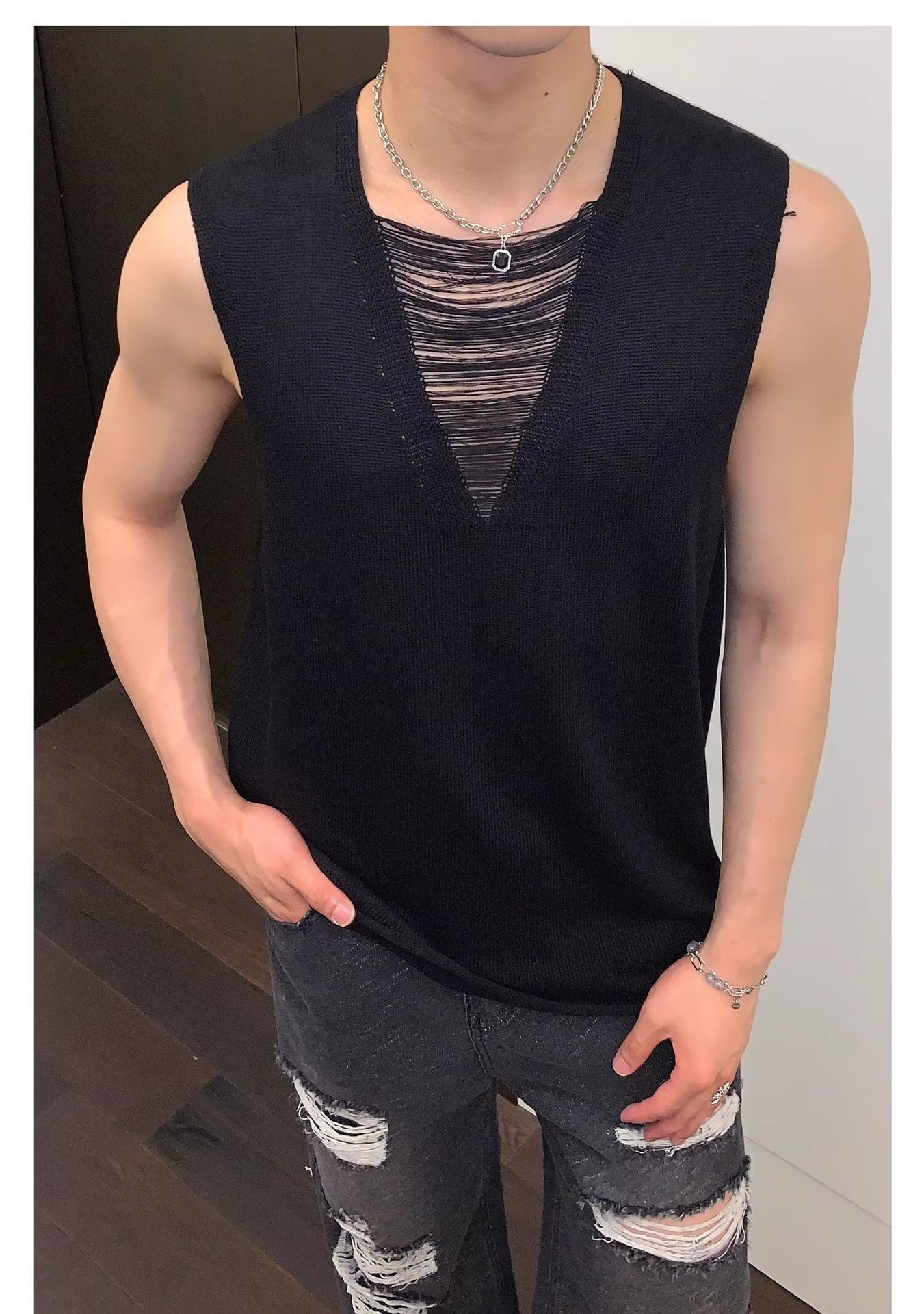 2025 nuevos productos de verano, estilo juvenil de Hong Kong, moda, manga corta sin mangas, chaleco de punto simple y versátil, chaleco, hombre