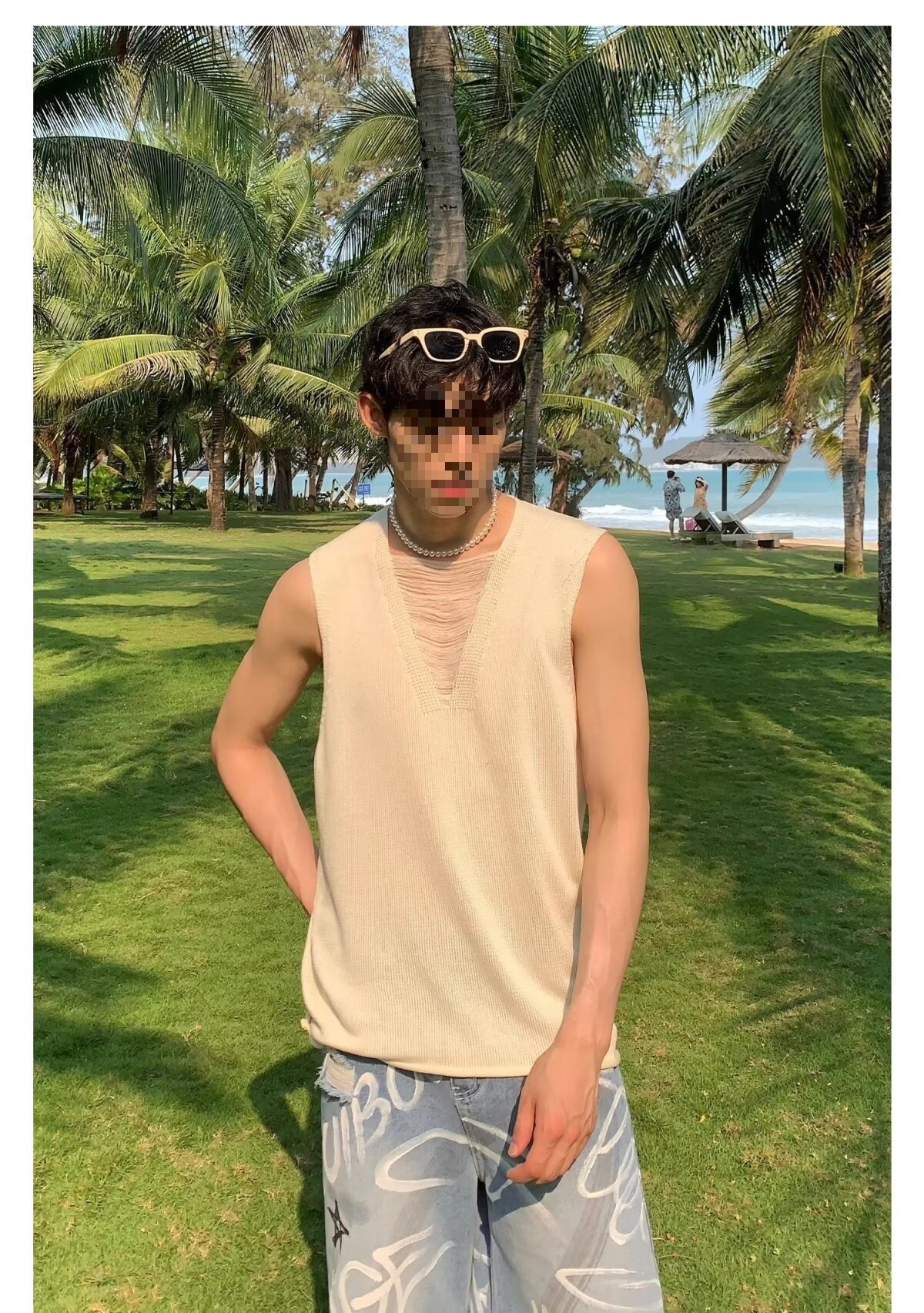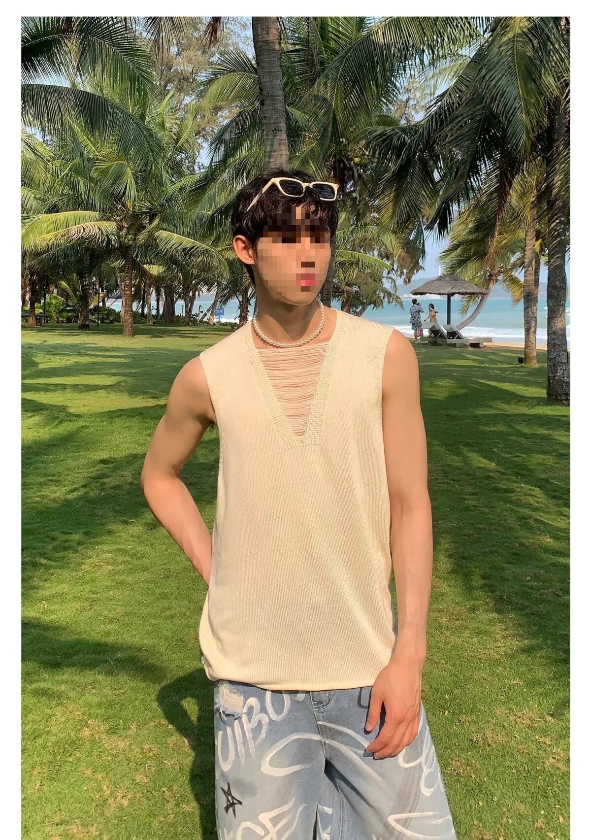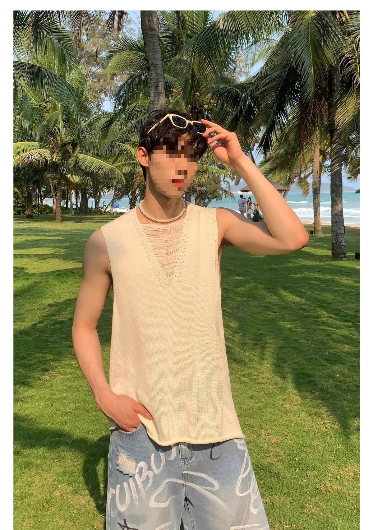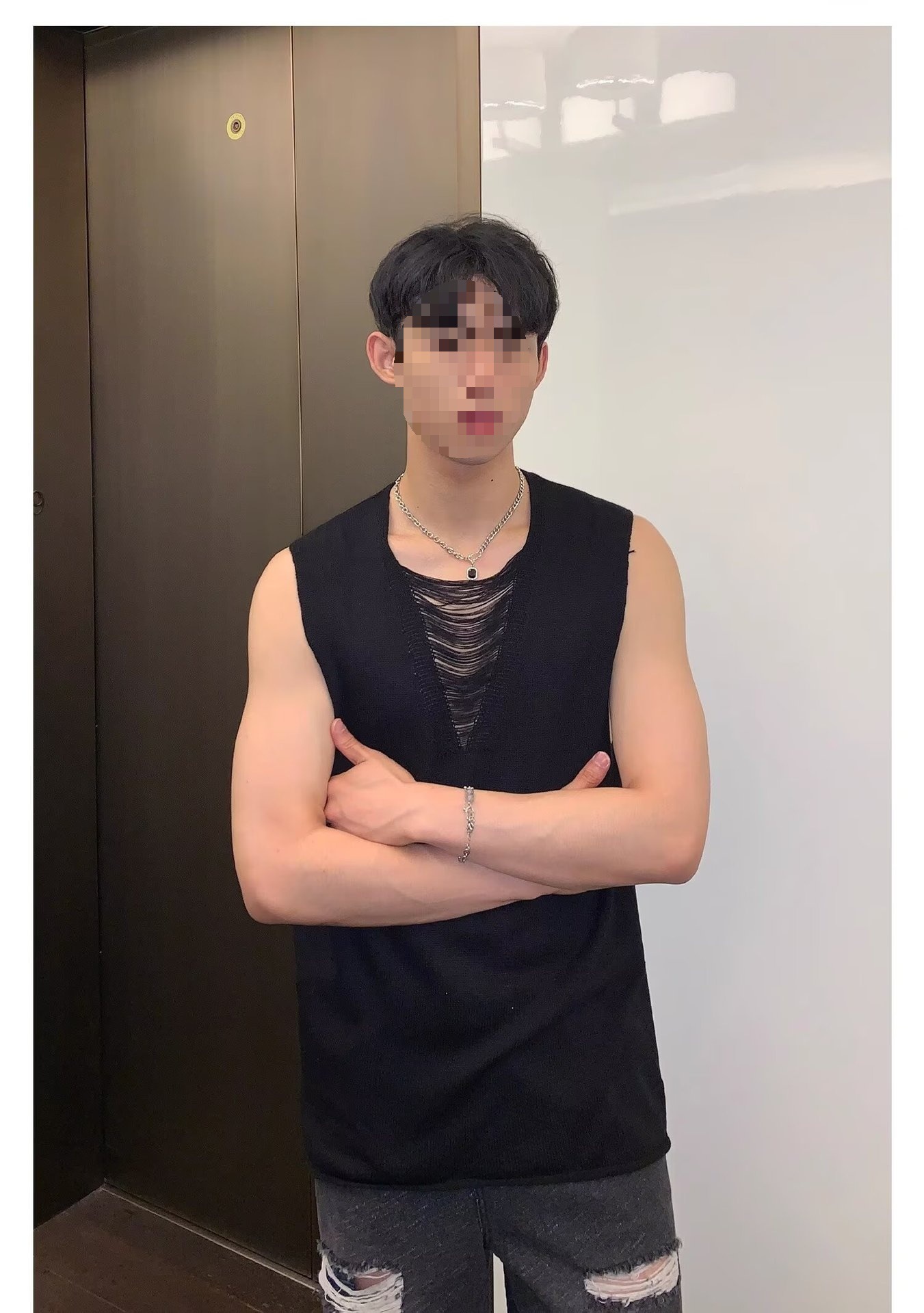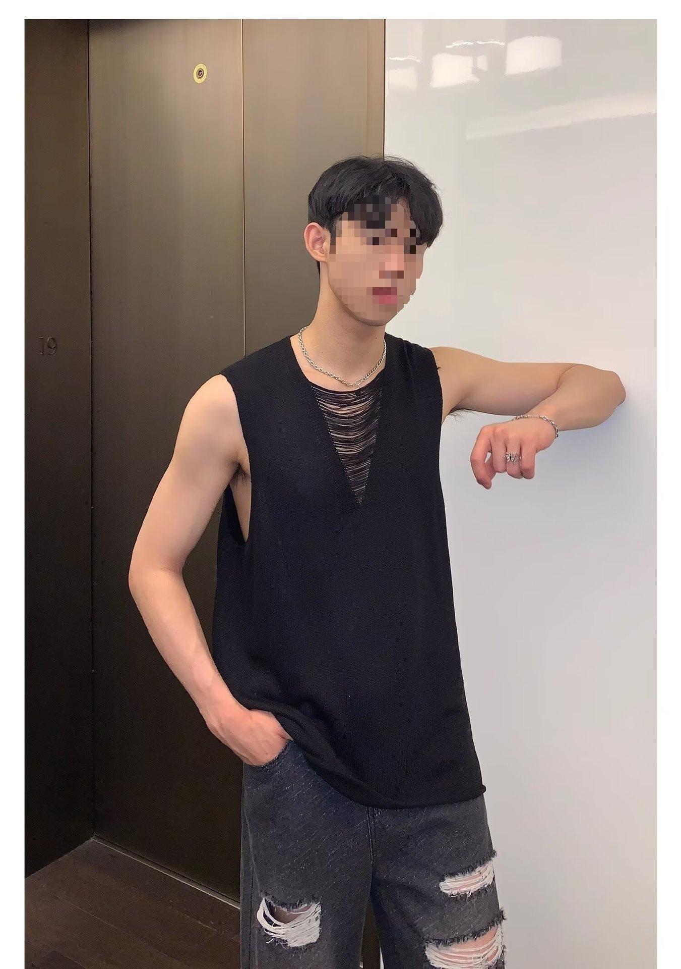 2025 nuevos productos de verano, estilo juvenil de Hong Kong, moda, manga corta sin mangas, chaleco de punto simple y versátil, chaleco, hombre