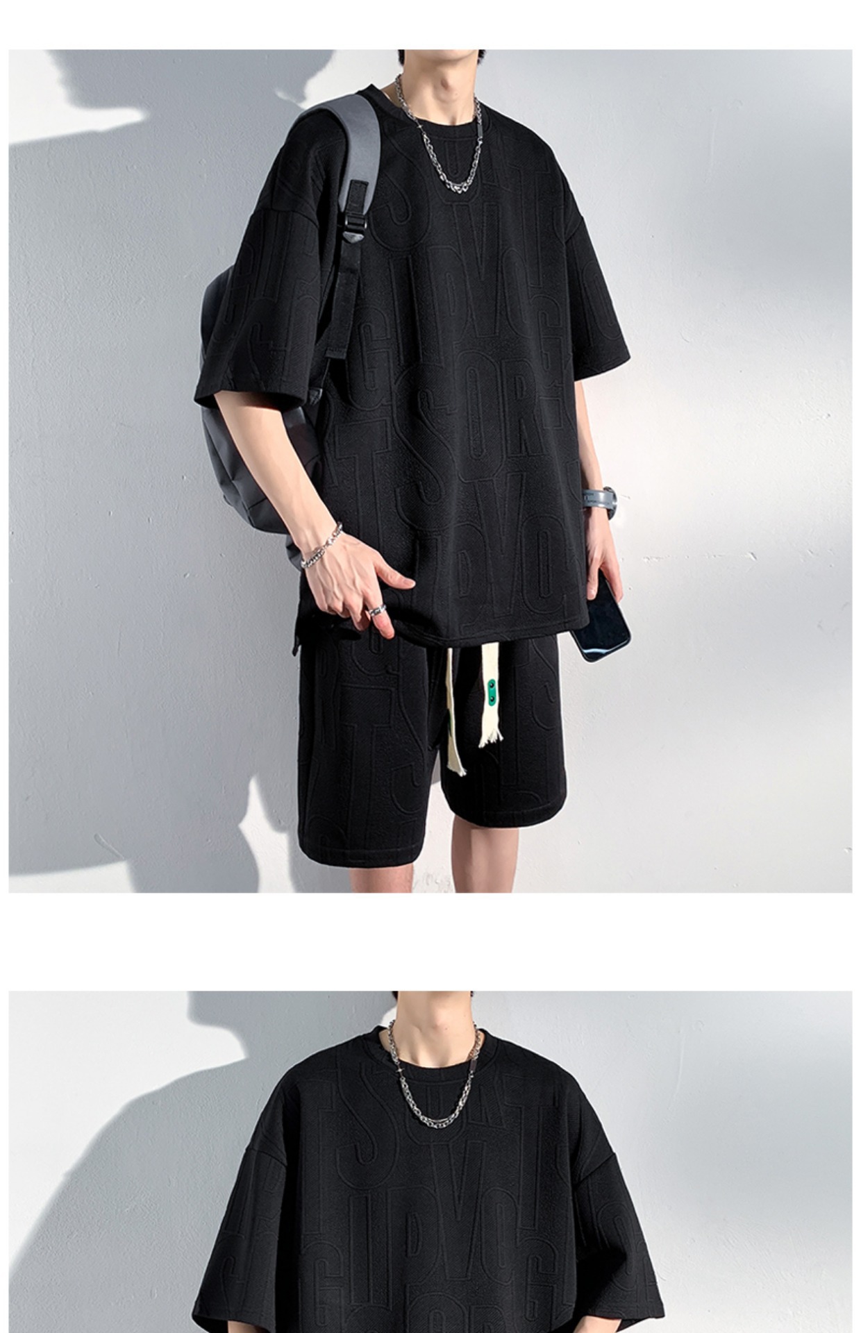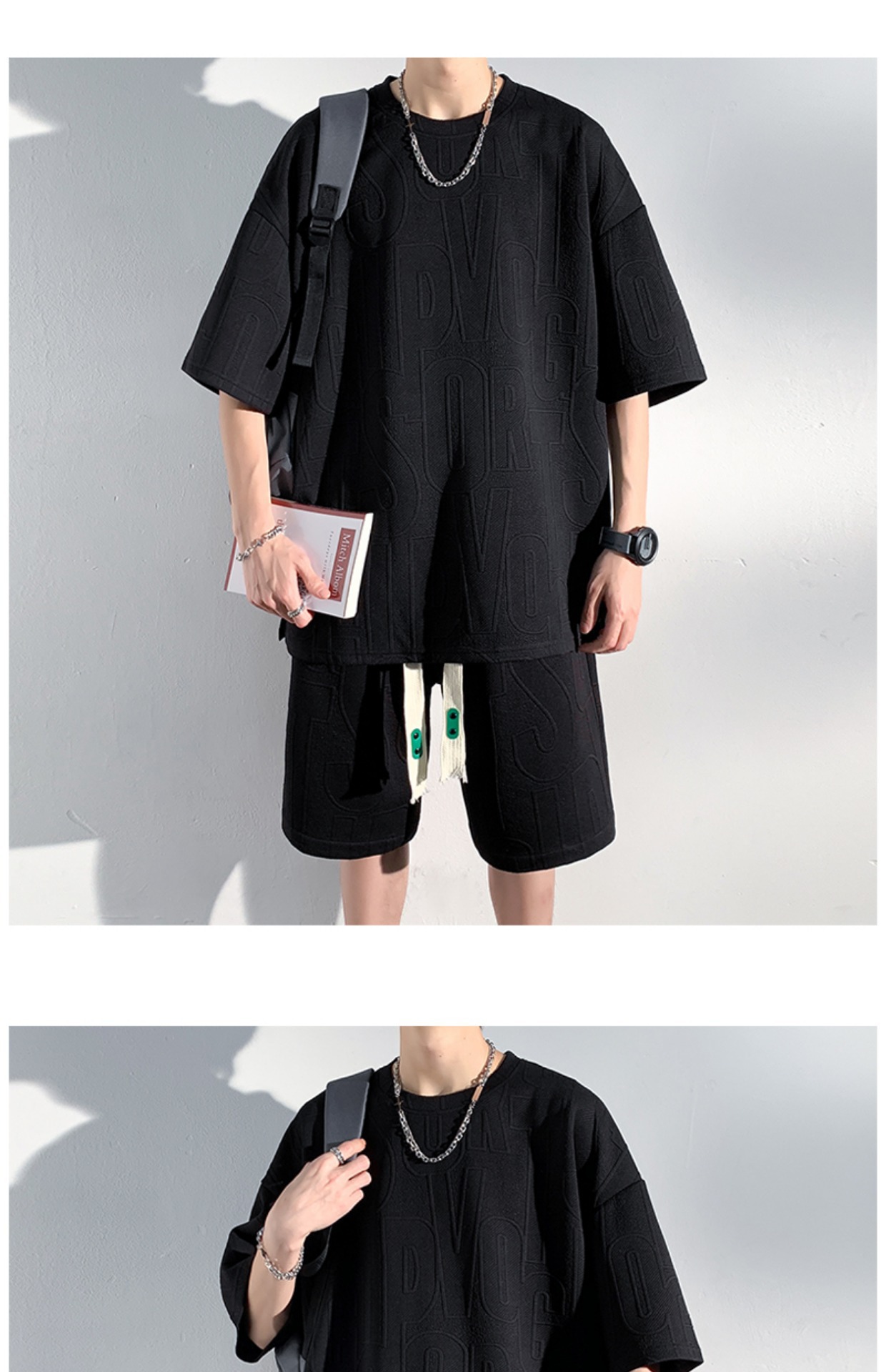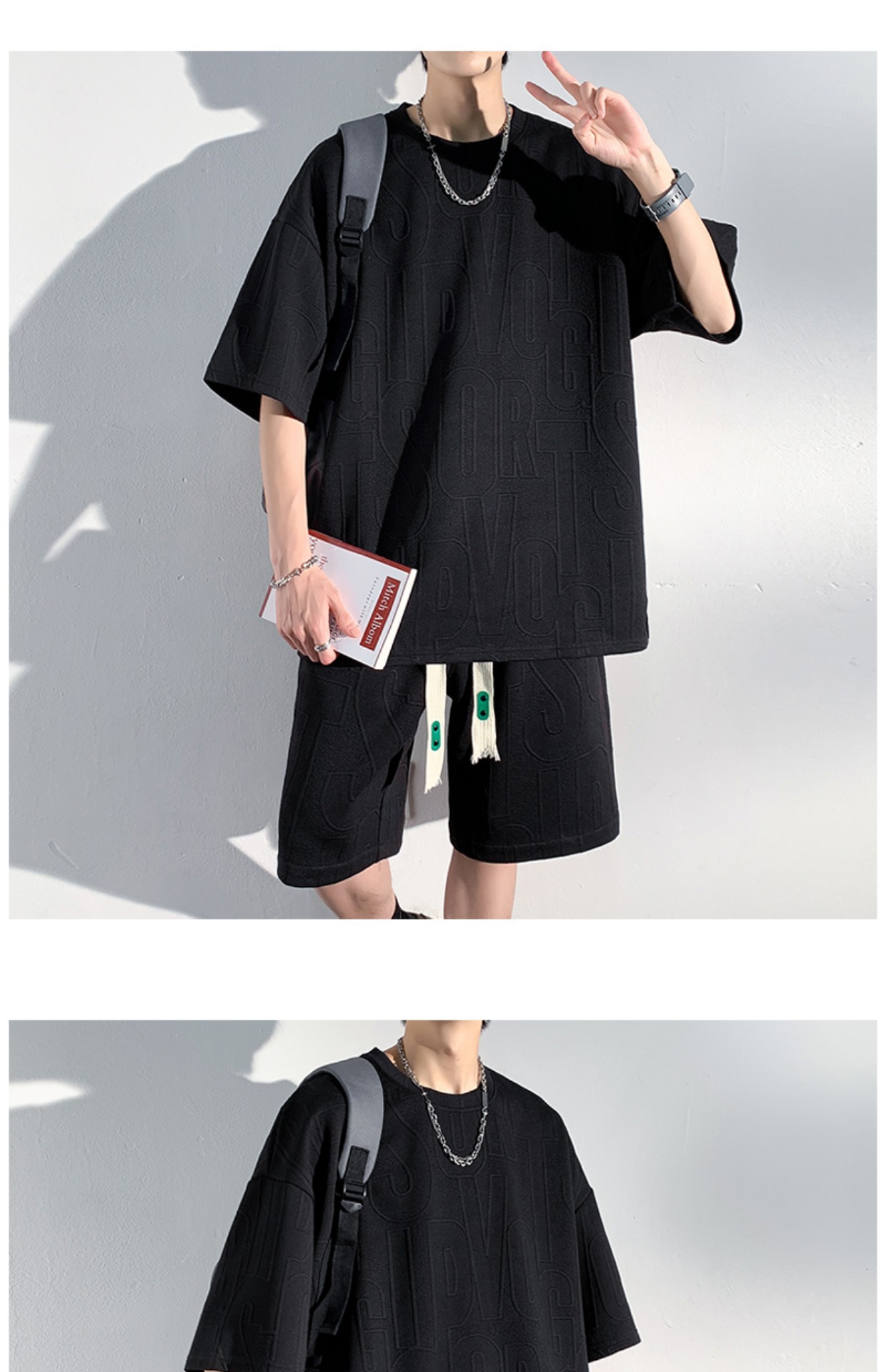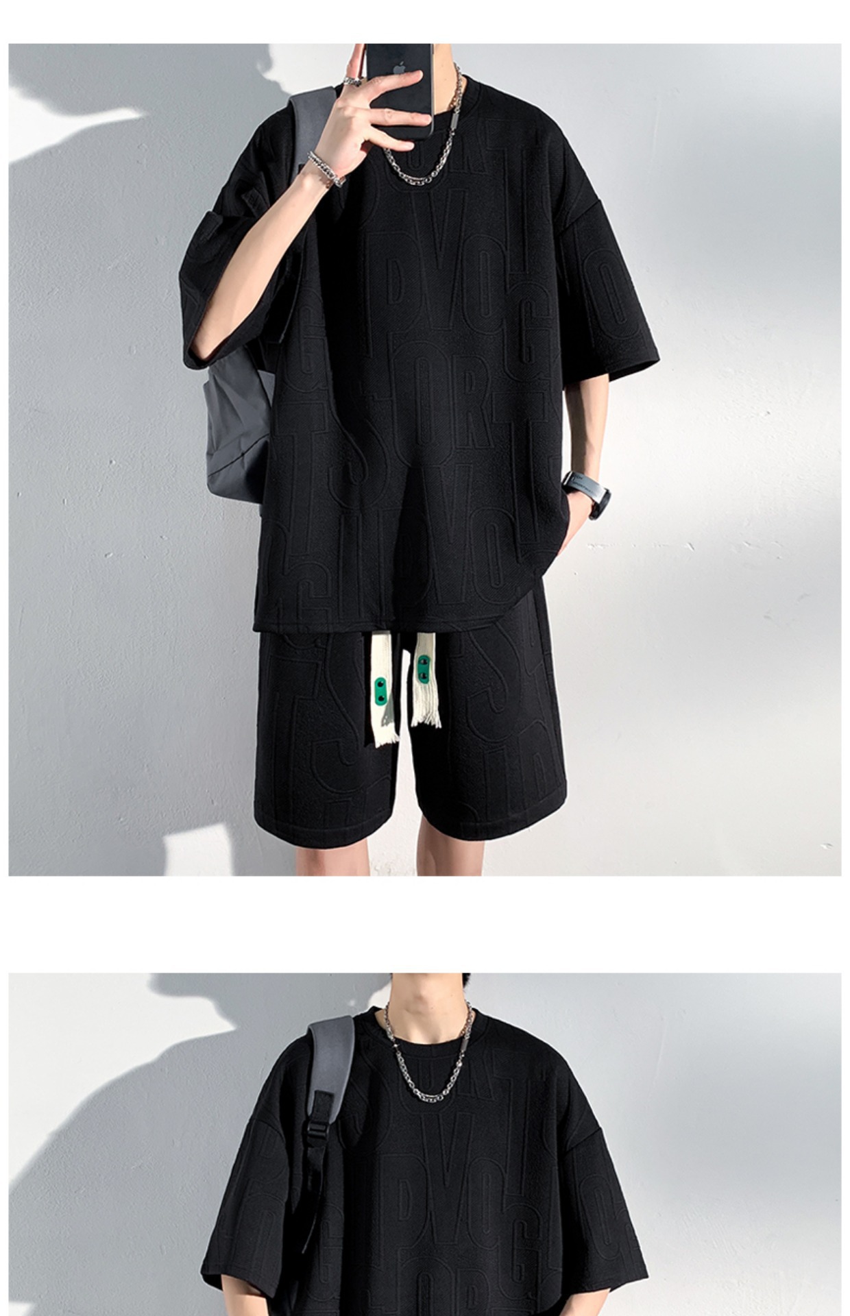 Camiseta de manga corta traje de pantalones cortos para hombres tendencia de verano suelto casual más gordo talla grande ropa de hombre gordo