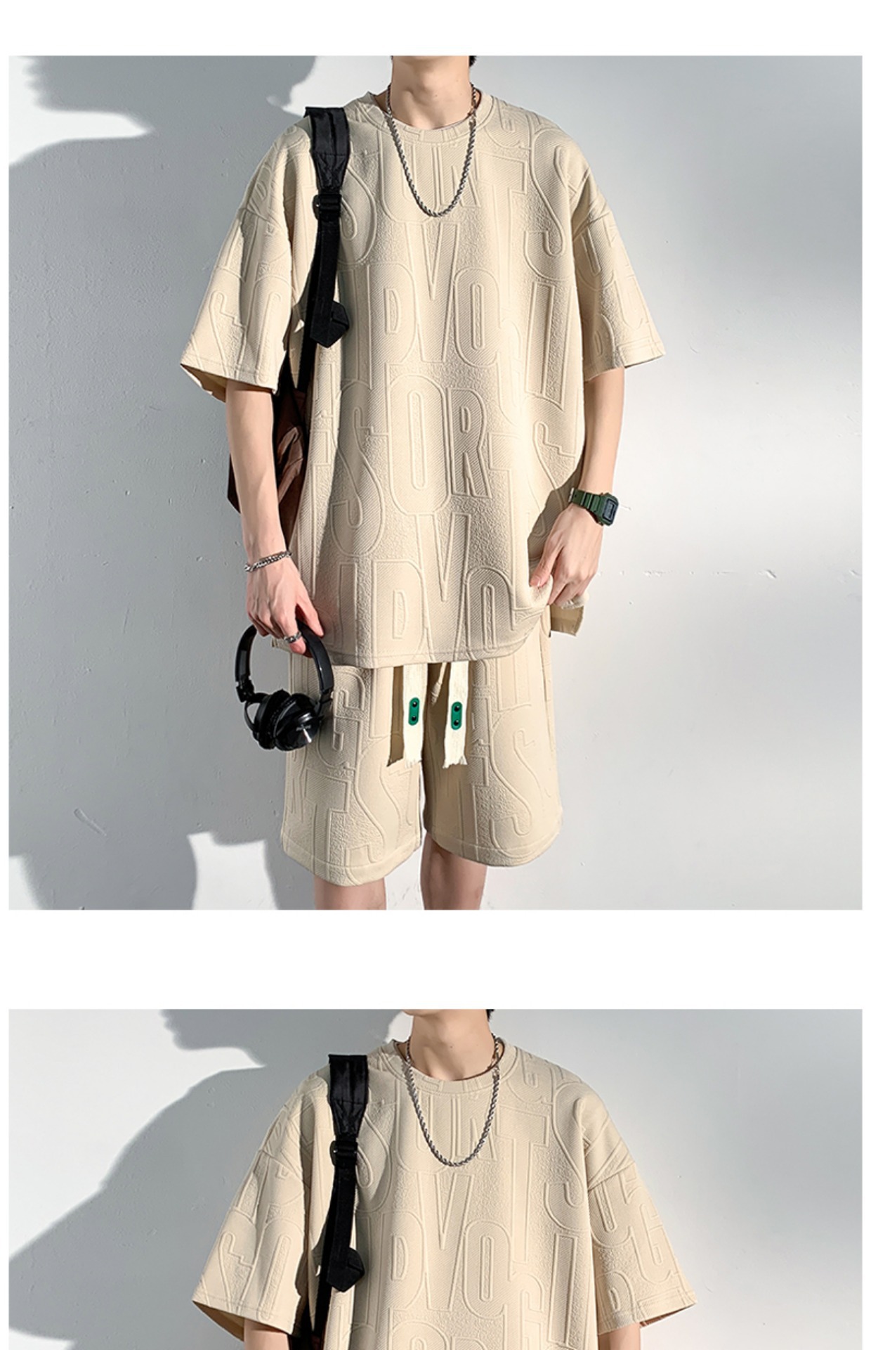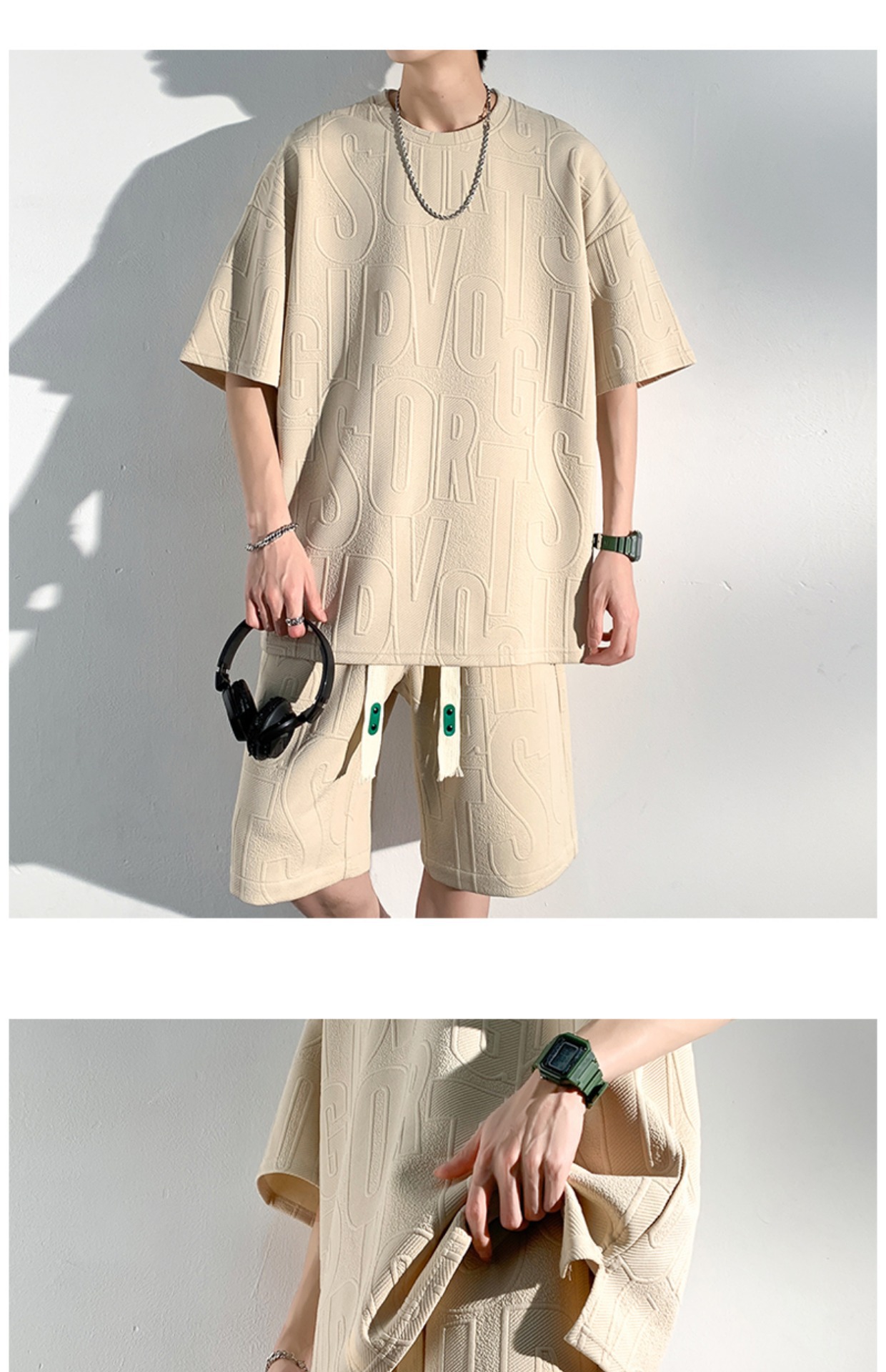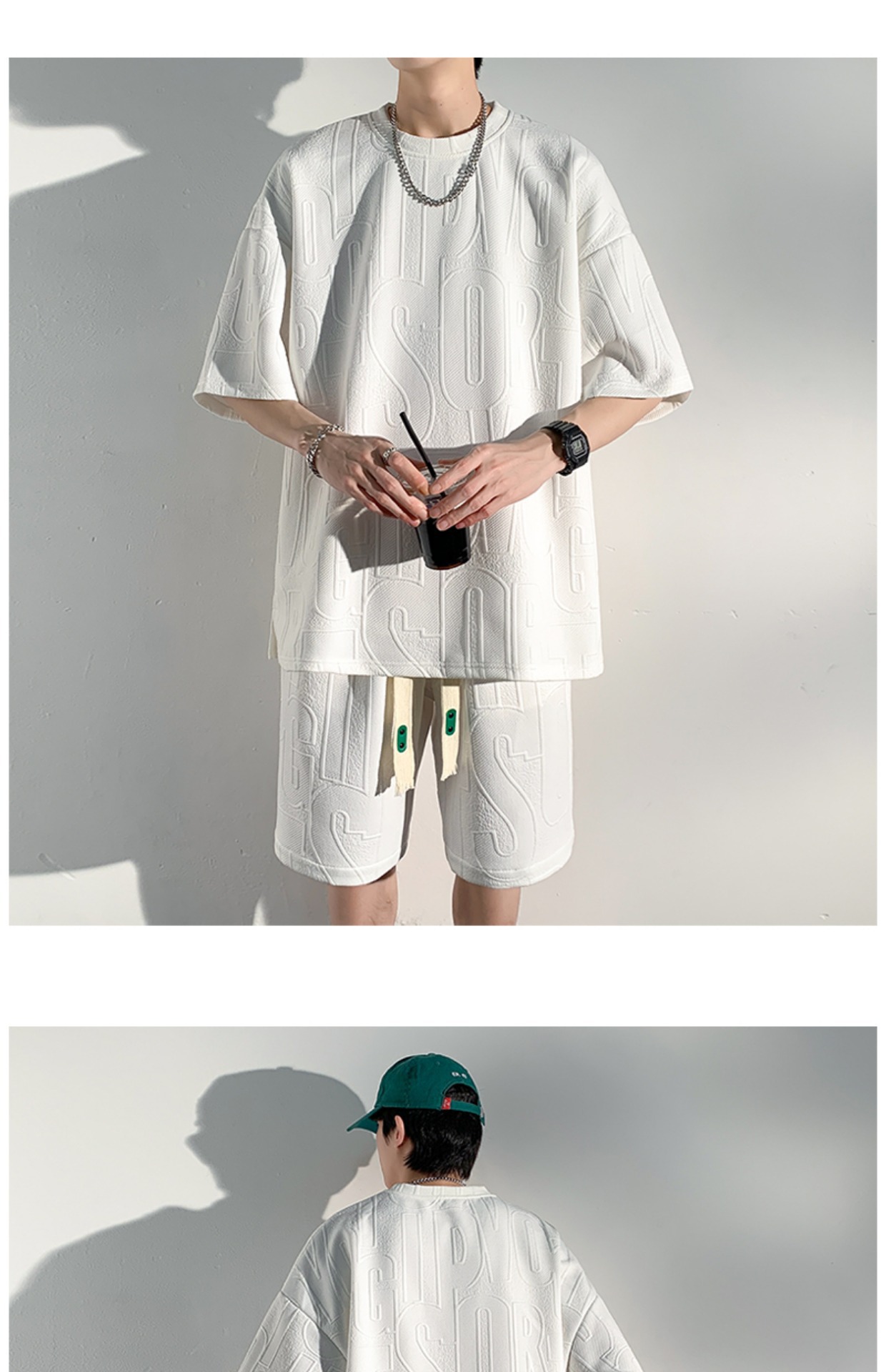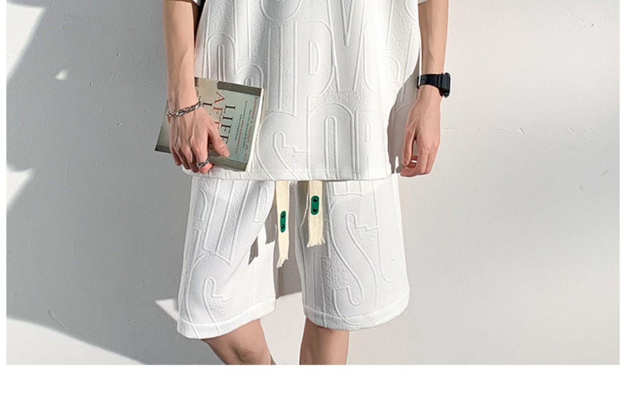 Camiseta de manga corta traje de pantalones cortos para hombres tendencia de verano suelto casual más gordo talla grande ropa de hombre gordo