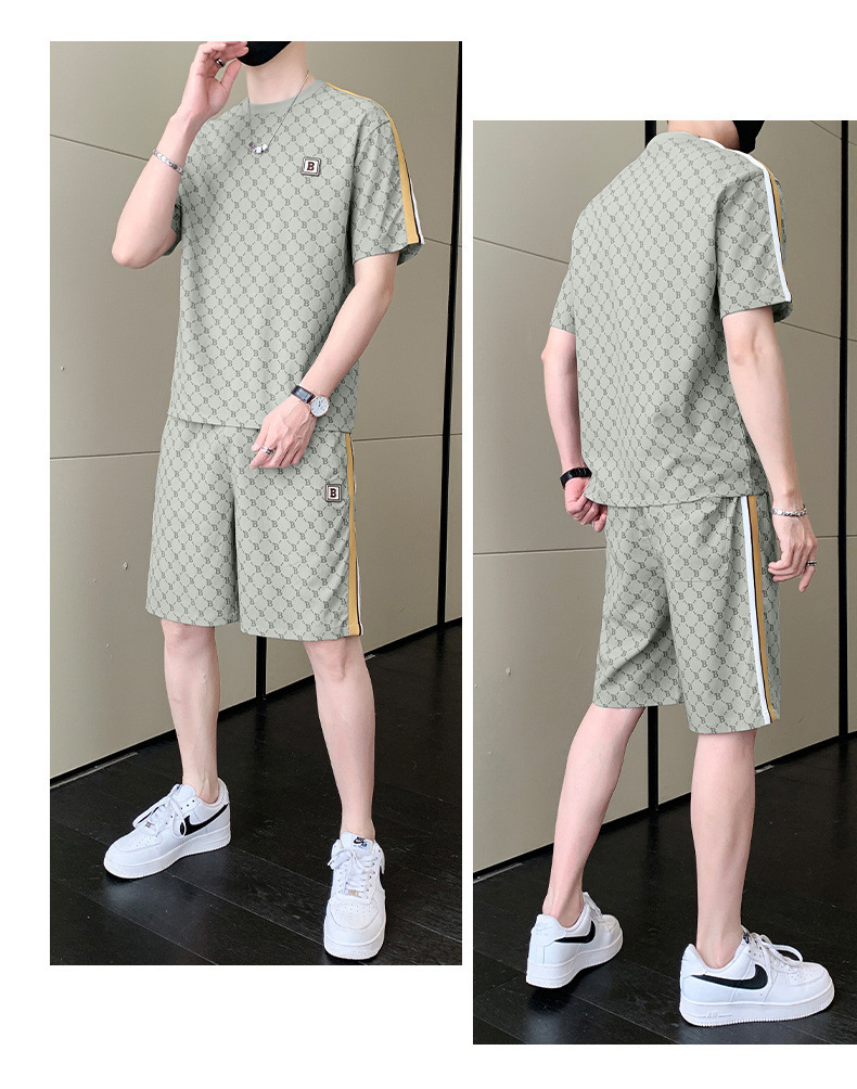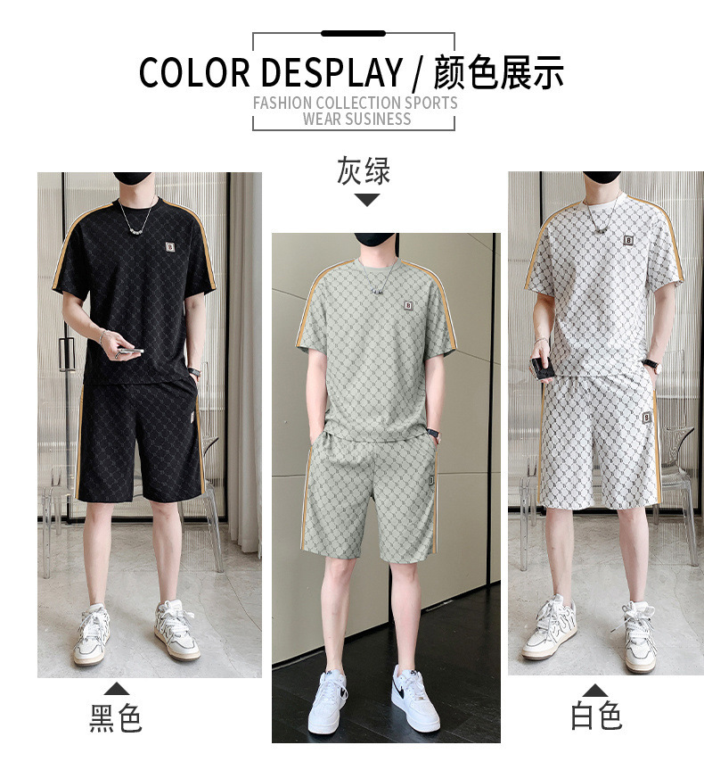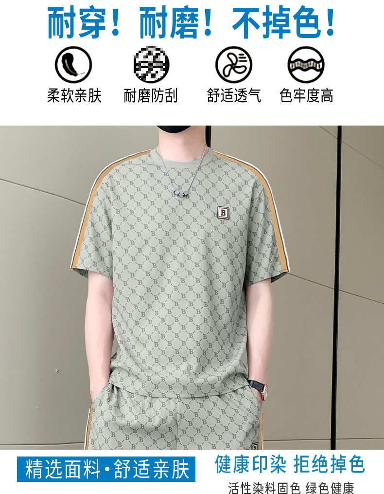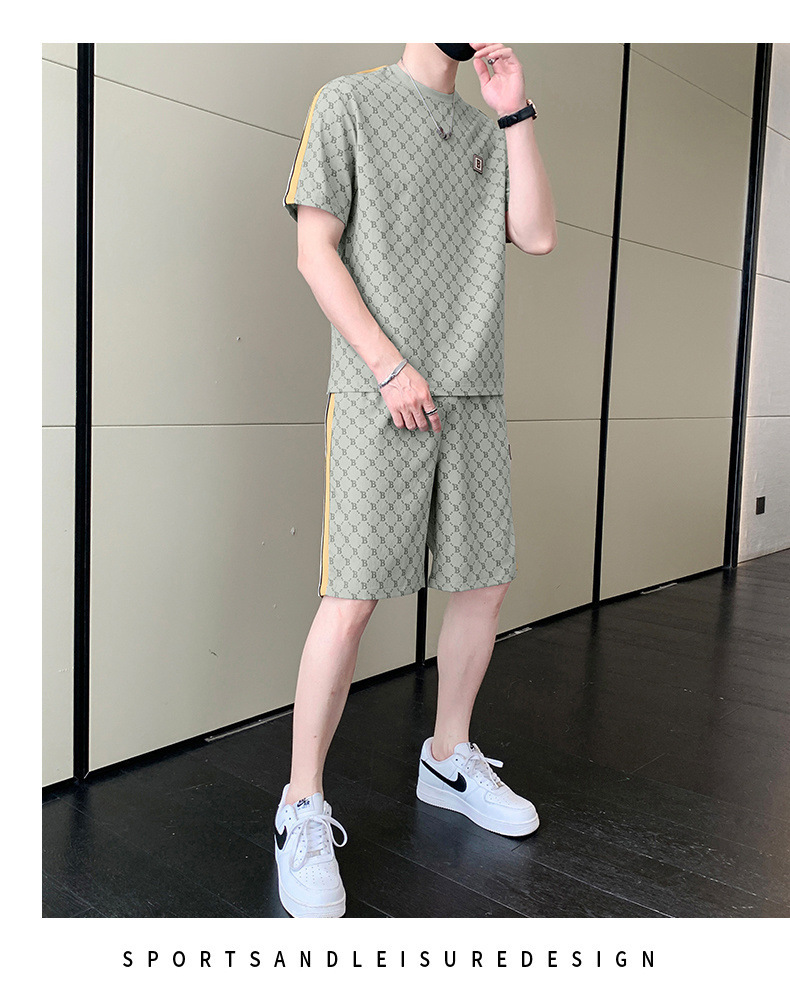 2025 verano nuevo estilo traje de seda de hielo casual para hombres tendencia hermosa camiseta pantalones cortos deportivos de dos piezas