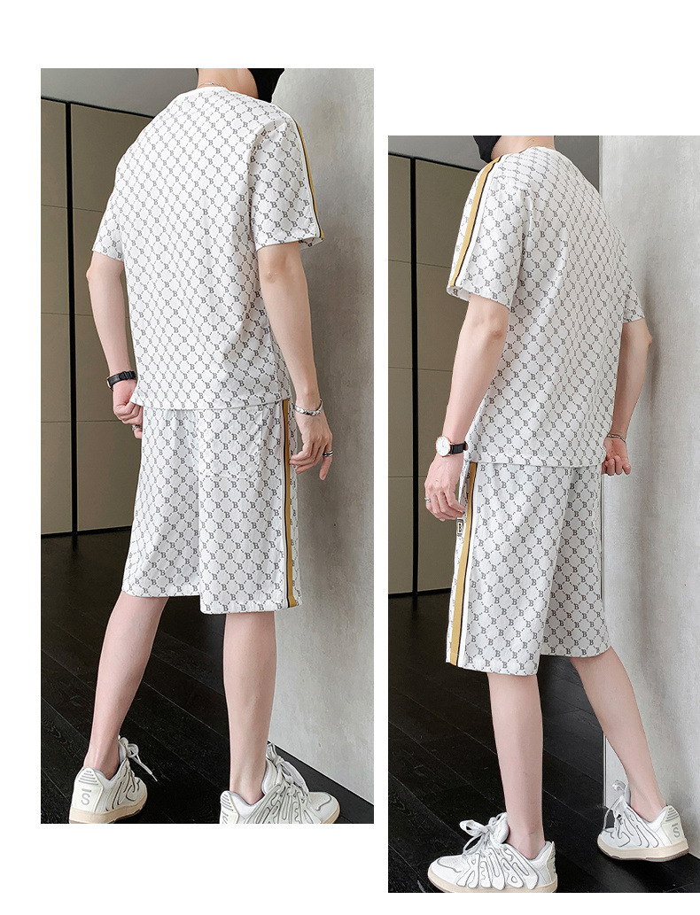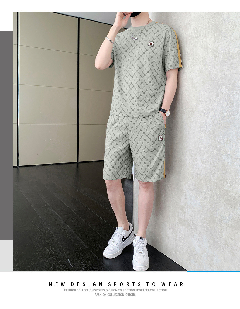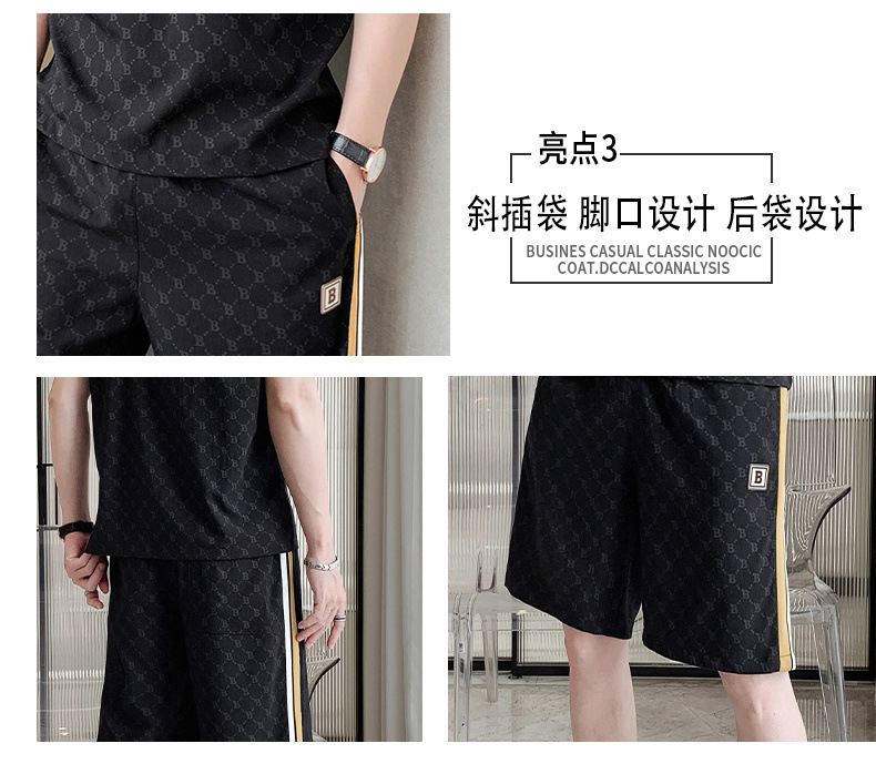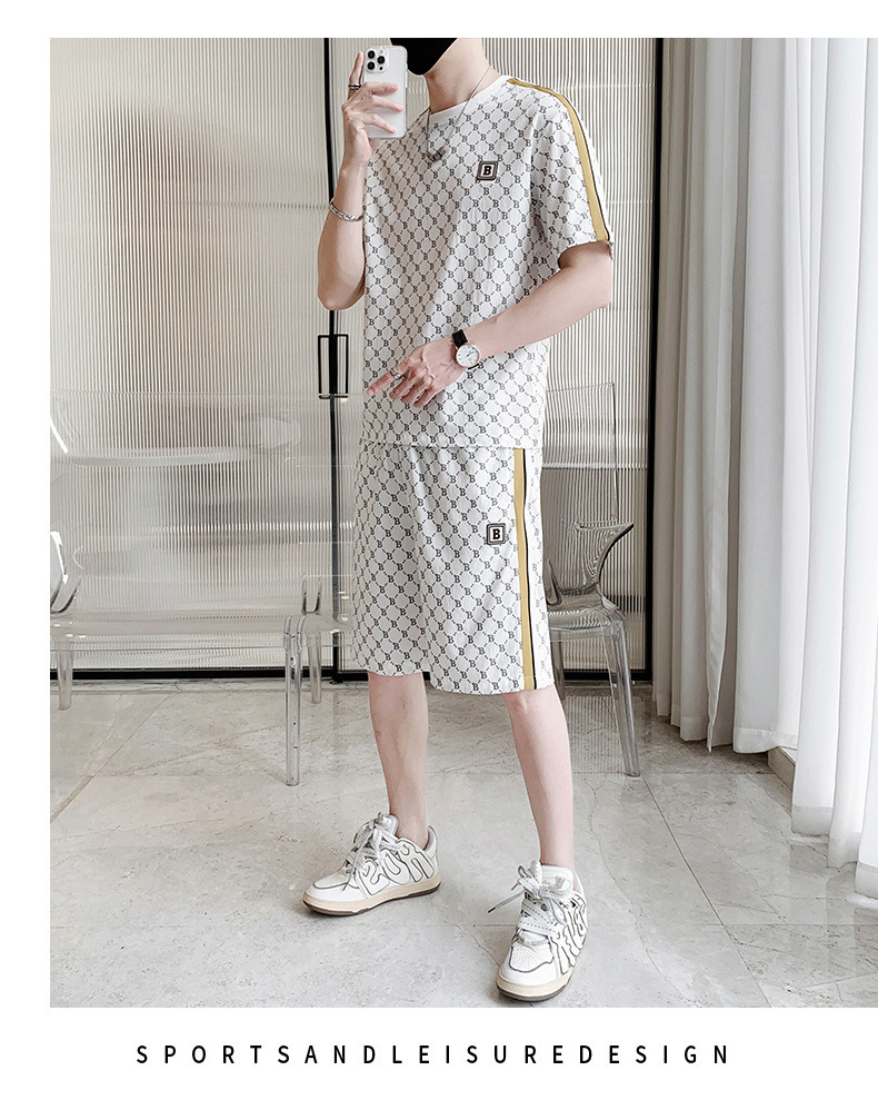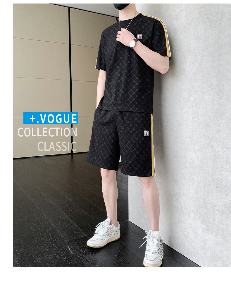 2025 verano nuevo estilo traje de seda de hielo casual para hombres tendencia hermosa camiseta pantalones cortos deportivos de dos piezas