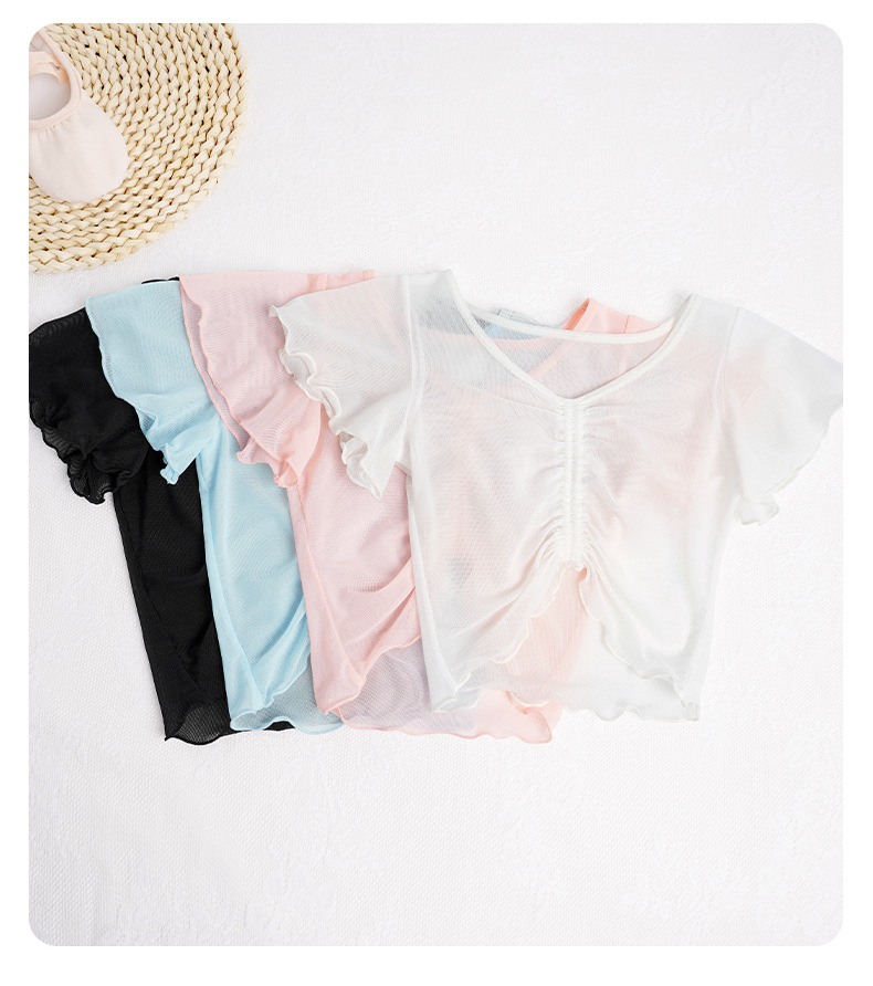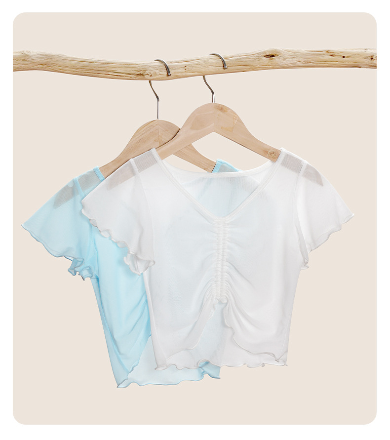Ropa de baile para niños en verano, blusa, chal de malla, chaleco fino blanco, jersey, ropa de práctica para niñas