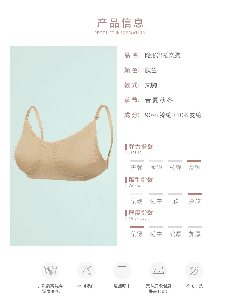 Sujetador invisible con honda para mujer deportiva de baile para adultos, parte superior de tubo, hombro, pecho pequeño, ropa interior sin anillo de acero