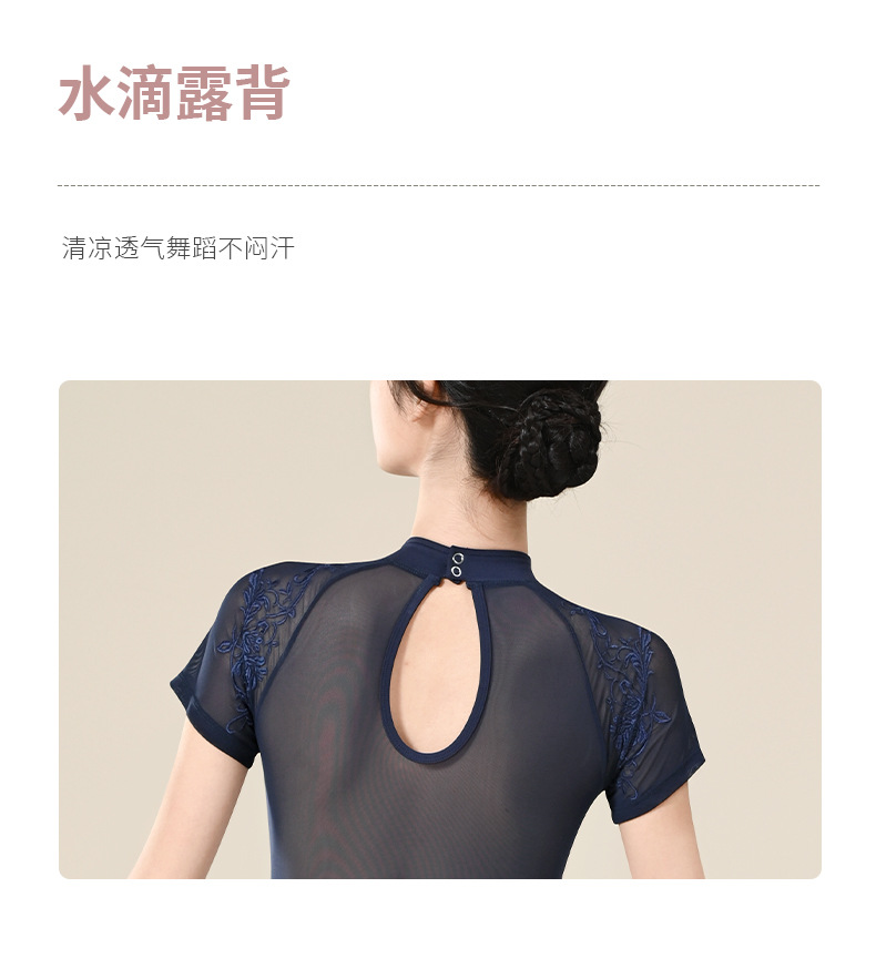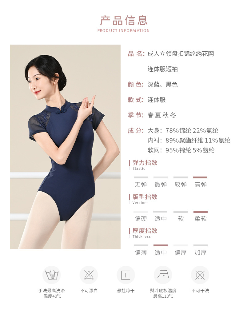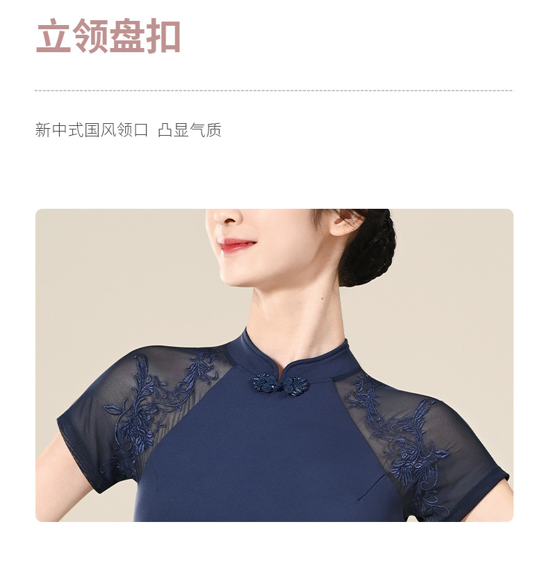 Traje de entrenamiento para adultos Traje de baile de nailon de alto elástico para mujer Nuevo estilo chino Traje de yoga elegante de temperamento clásico con cuello alto