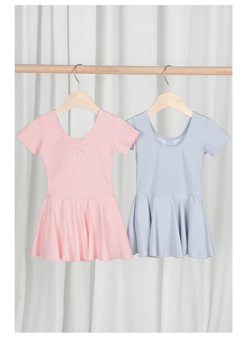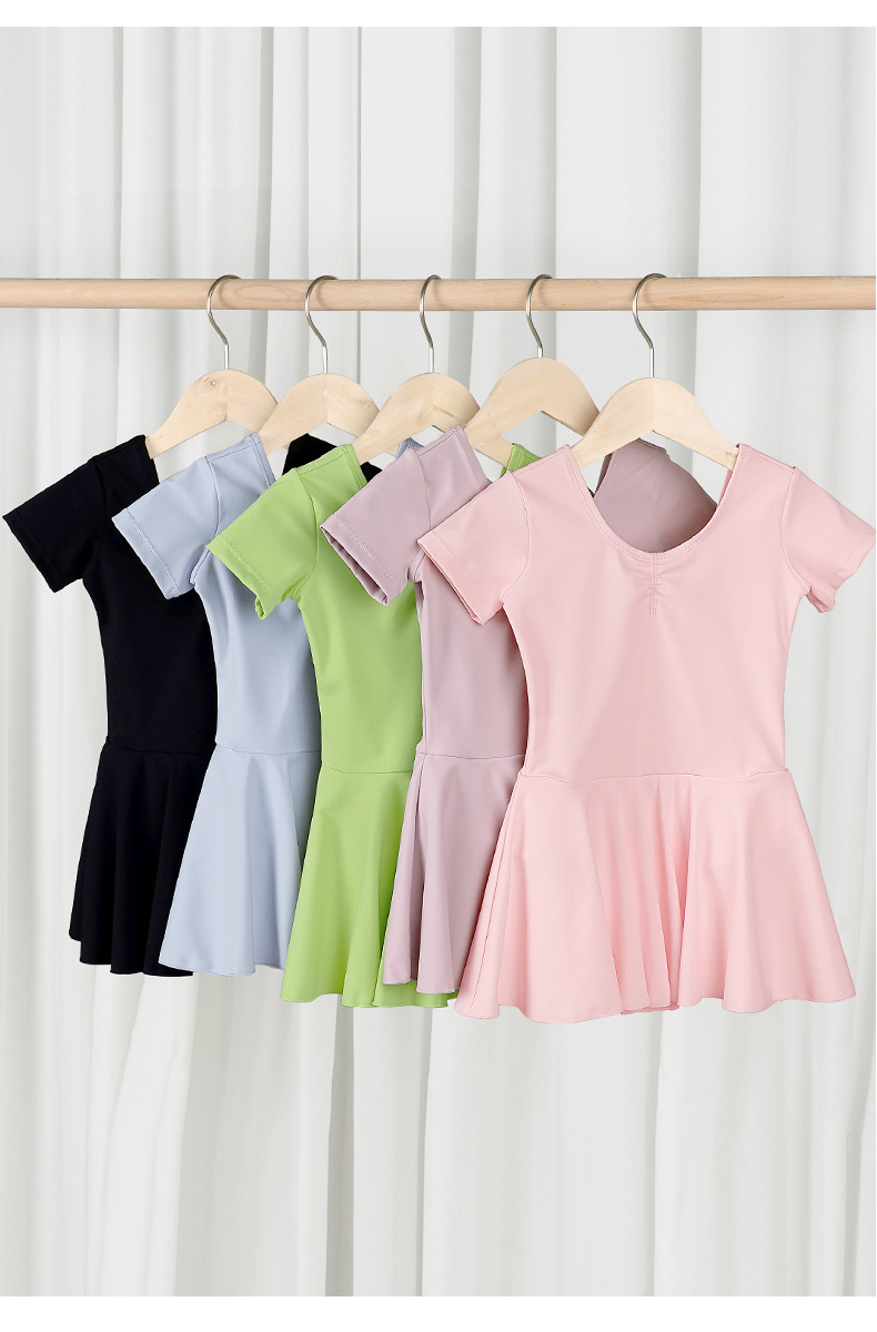 Ropa para niños, ropa de baile de manga corta para niñas de verano, ropa de entrenamiento de baile de todo fósforo de nailon, falda de una pieza de temperamento de alta elasticidad