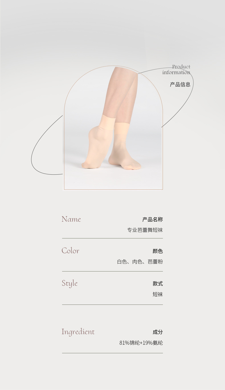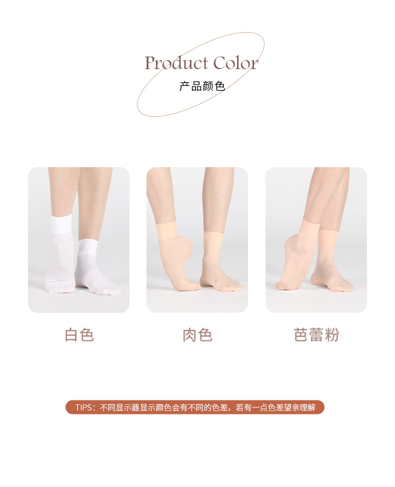 Calcetines de baile de ballet que absorben el sudor Calcetines de base de ballet de nailon blanco de color carne