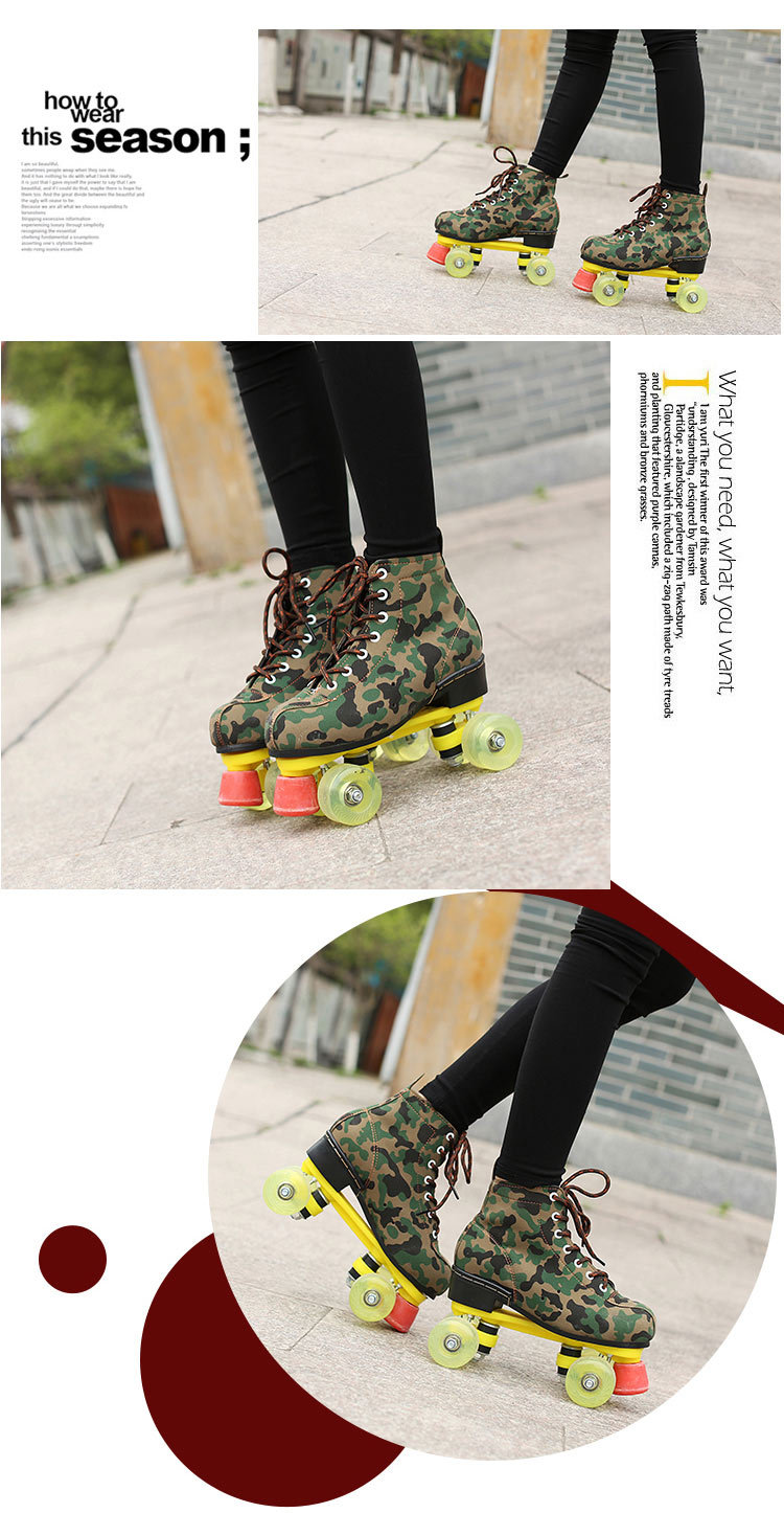 Nuevo camuflaje doble fila patines adultos hombres y mujeres flash patines de cuatro ruedas niños adultos patines transparente