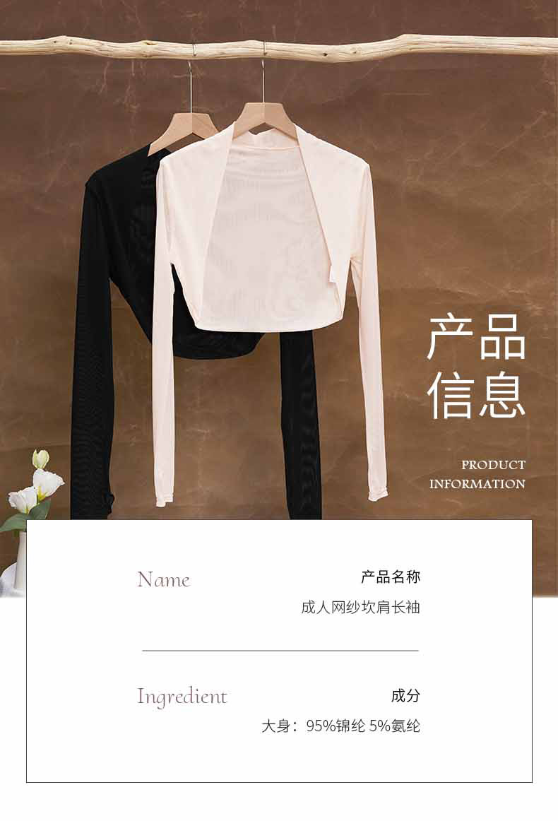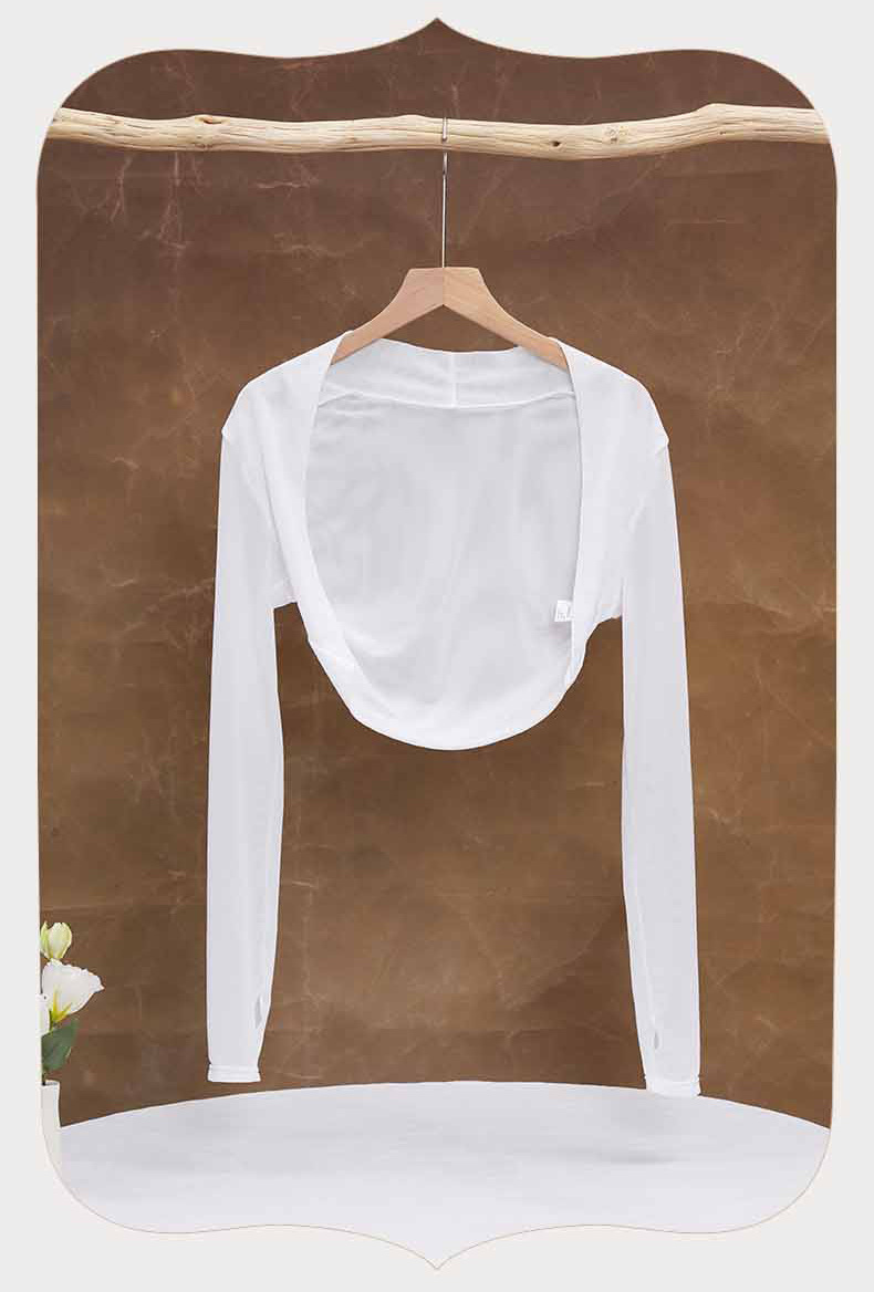 Ropa de baile, ropa de ejercicio, gasa de red femenina, chal de manga larga, tops, hombreras, ropa de ballet, ropa de ejercicio, ropa de yoga