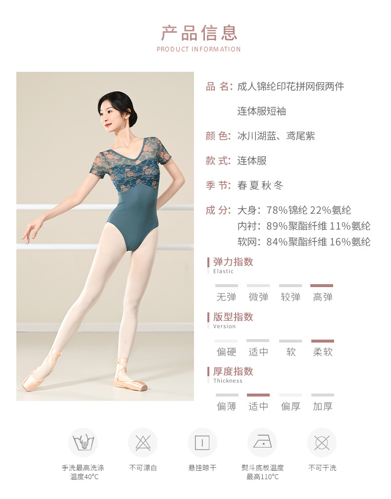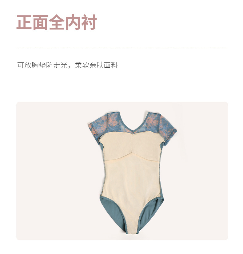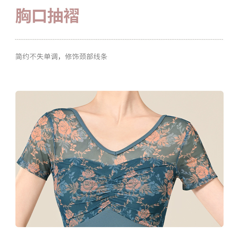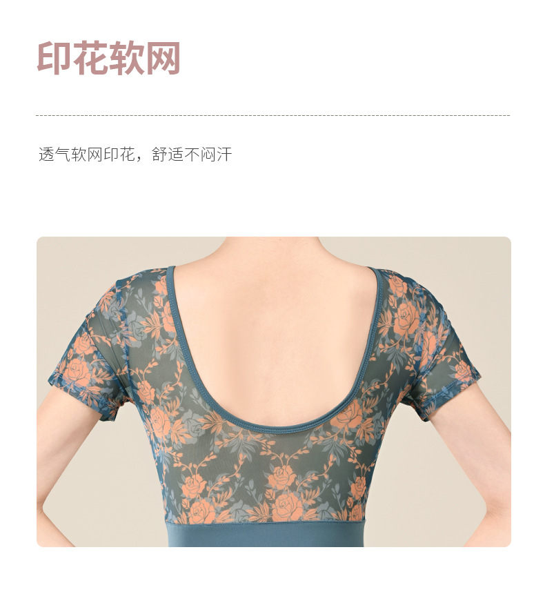 Ropa de yoga de alta gama, ropa de baile sin espalda estampada antilumínicos de manga corta para mujer de verano, ropa de entrenamiento de alta elasticidad floral