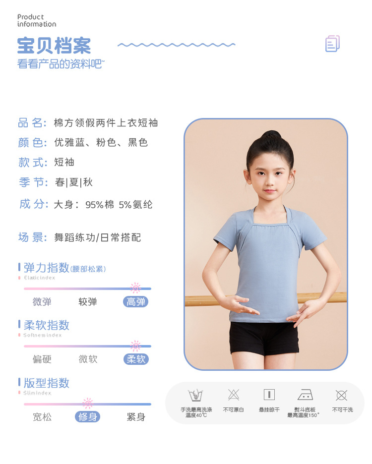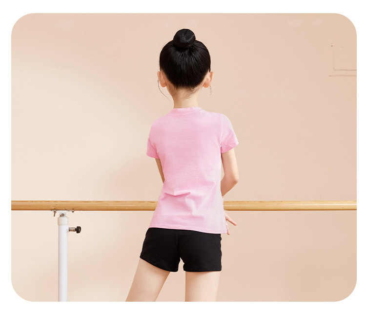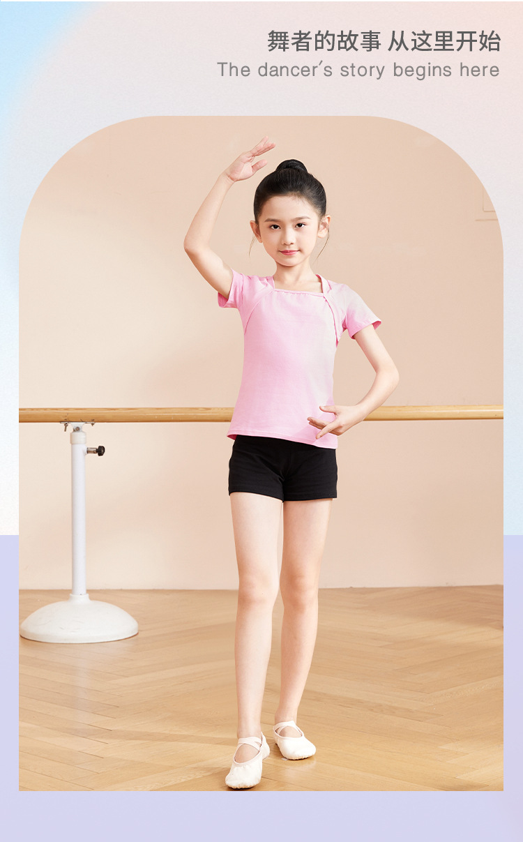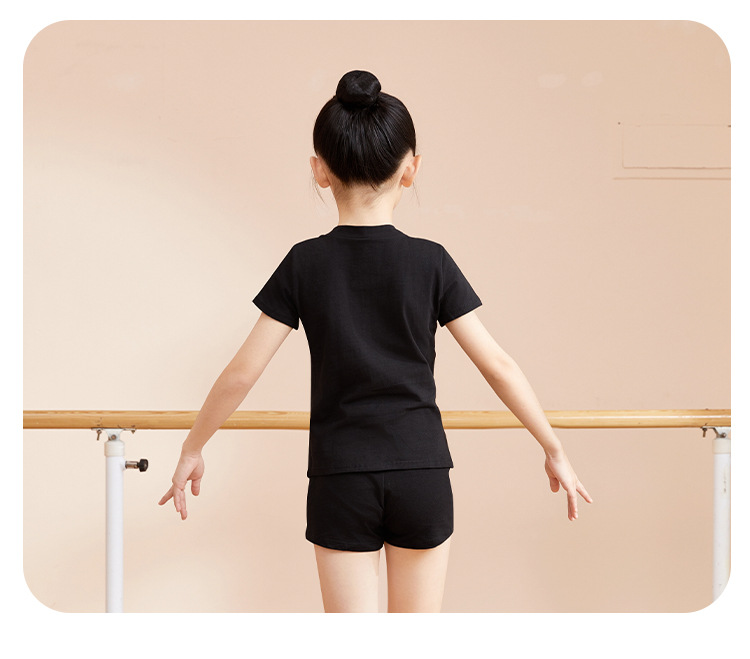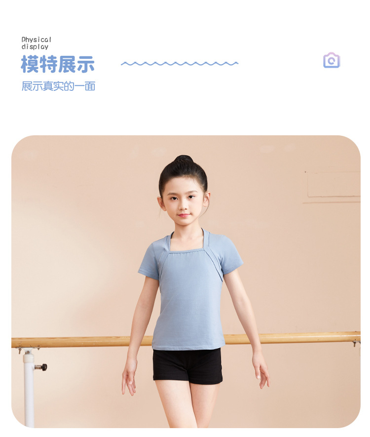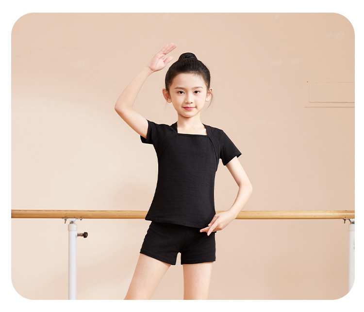Ropa de baile para niños Ropa de práctica de dos piezas para niñas de verano Cuello cuadrado de algodón de manga corta Top de dos piezas falso Ropa de baile chino para niños