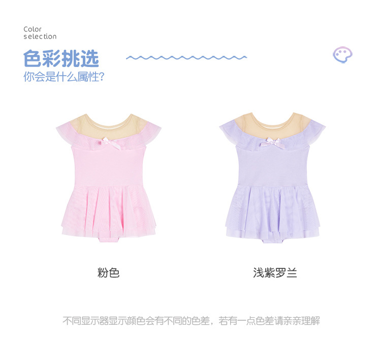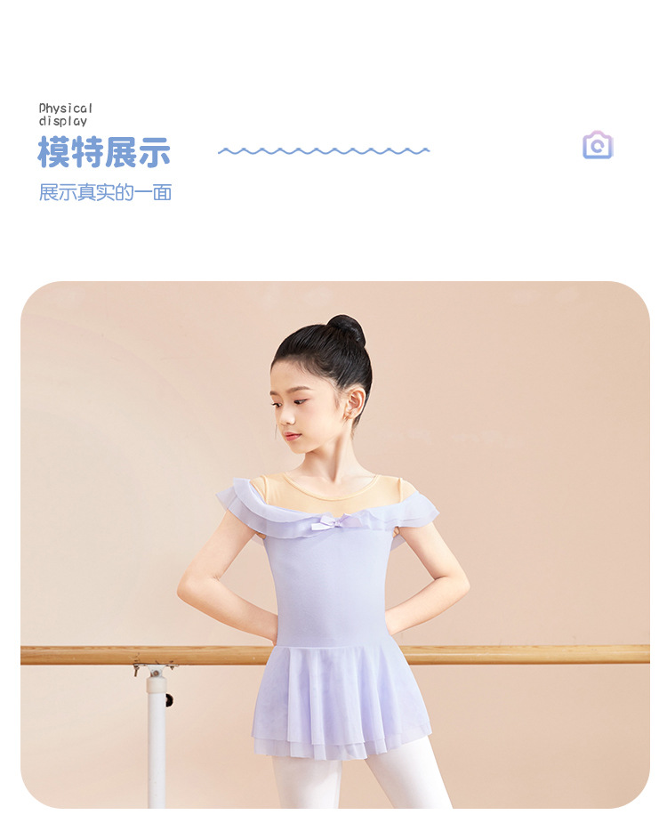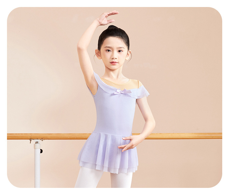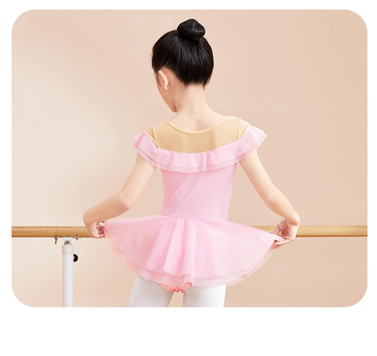 Ropa de baile para niños, vestido de una pieza de red con un hombro de verano, vestido de danza clásica de danza china, vestido de baile de práctica para niñas