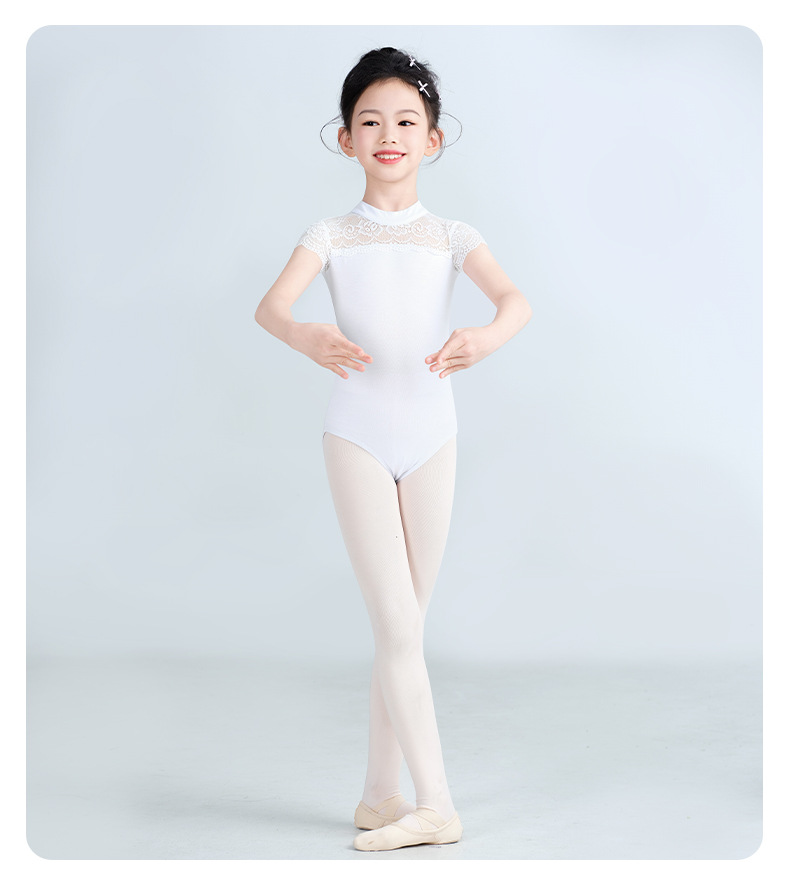 Ropa de baile para niños Ropa de baile de encaje de verano Ropa de baile de manga corta estilo francés retro delgado de cadera alta para mujeres