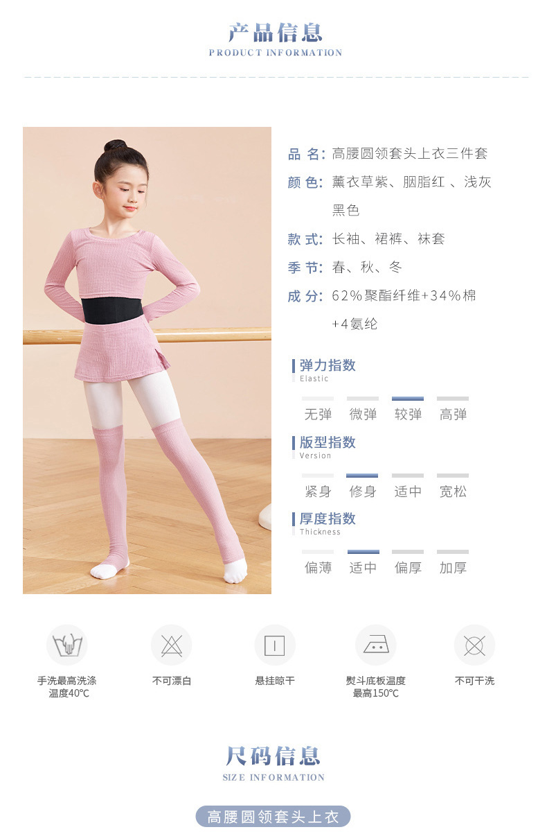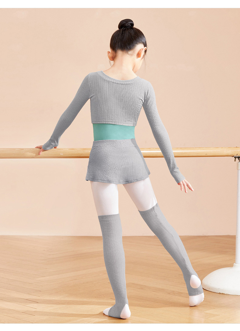 Ropa de baile para niños Otoño e Invierno ropa exterior de manga larga cintura alta cuello redondo jersey de dos piezas práctica de baile traje de entrenamiento
